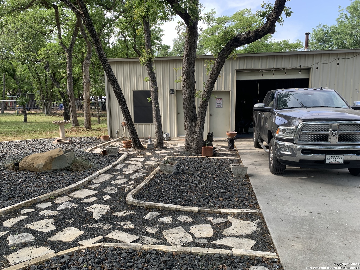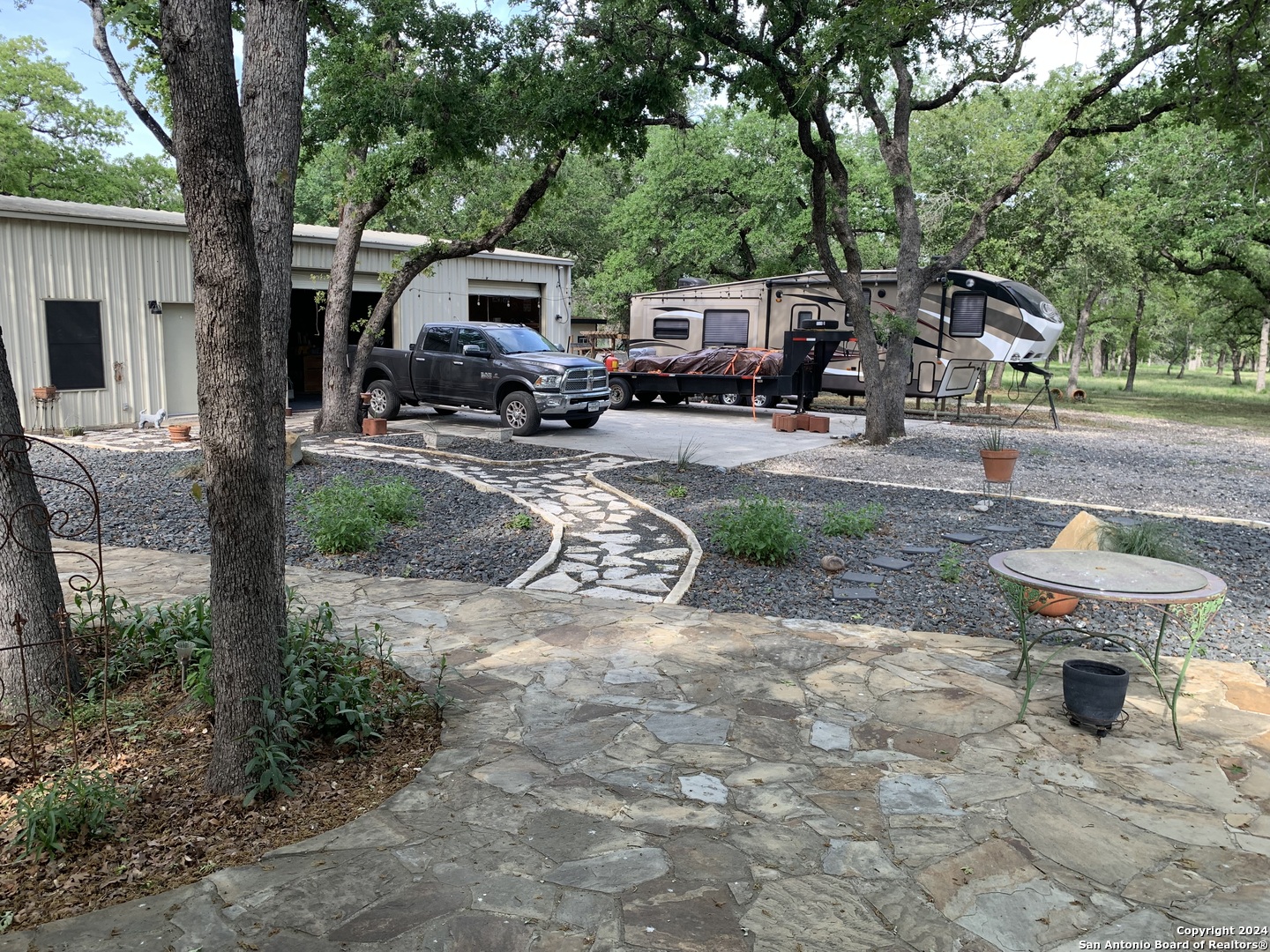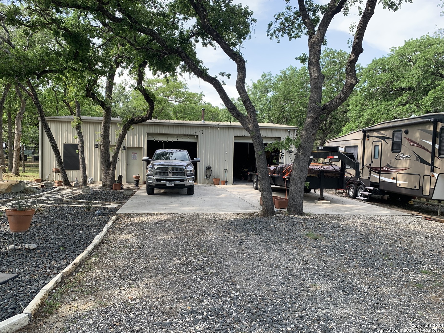 Located in The Estates at Eagle Creek Subdivision, a beautiful wooded 5-acre tract showcasing a 2,330 SF main house with 3 bedrooms, 2 bathrooms, remodeled kitchen, high ceilings and open spaces. The outdoor living space is a delightful blend of comfort and nature that includes several cozy areas to both relax and entertain from the covered patio area to the outdoor stone fireplace, or even under the pergola. Beautiful landscaping pathways lead to the additional residential space/apartment-suite and the large shop that is climate controlled via A/C and a fully functional wood stove. For the RV'ers, the property offers space for storage and both electrical and drain line access. Come see this gem and all the features it has to offer.