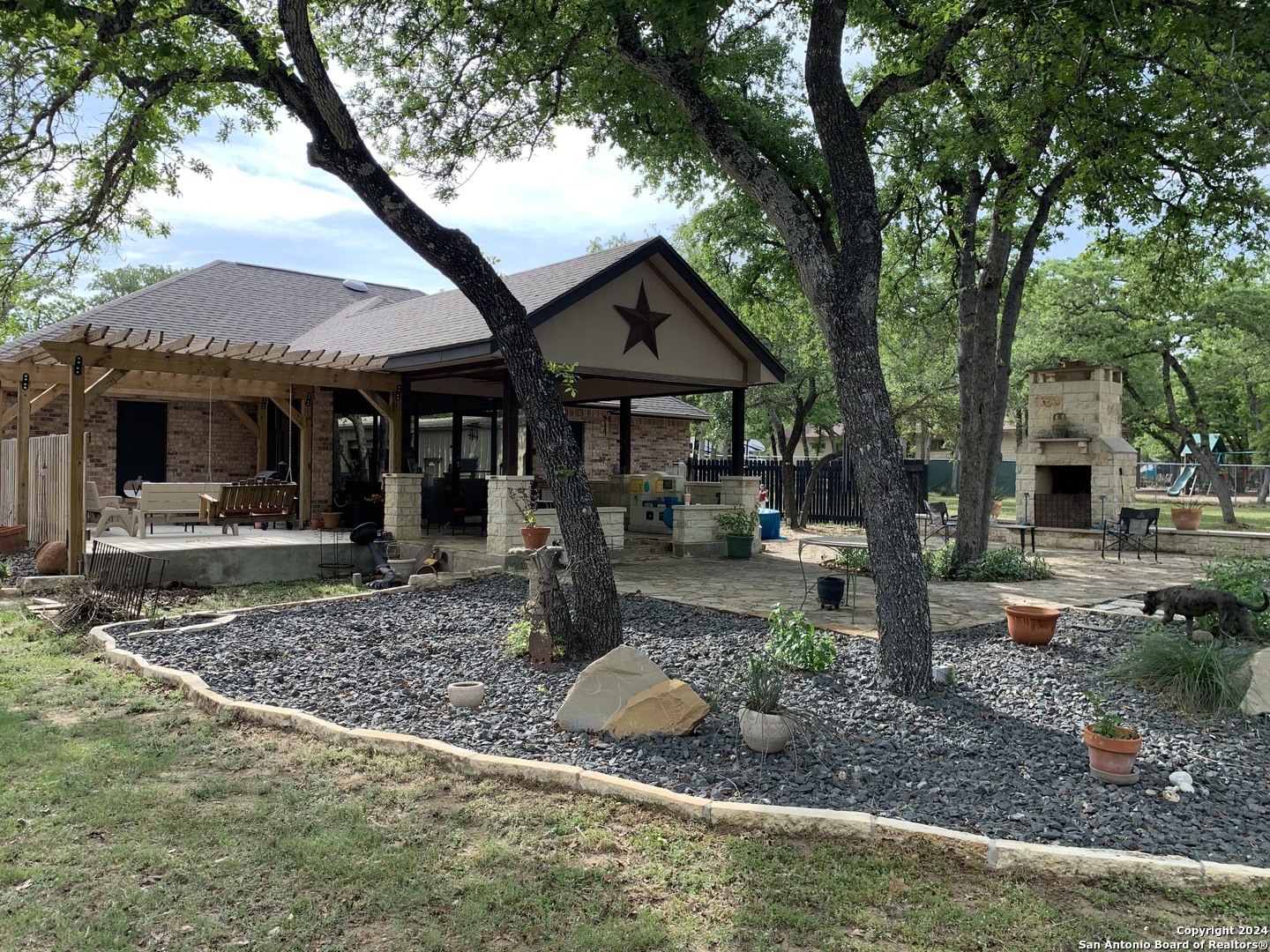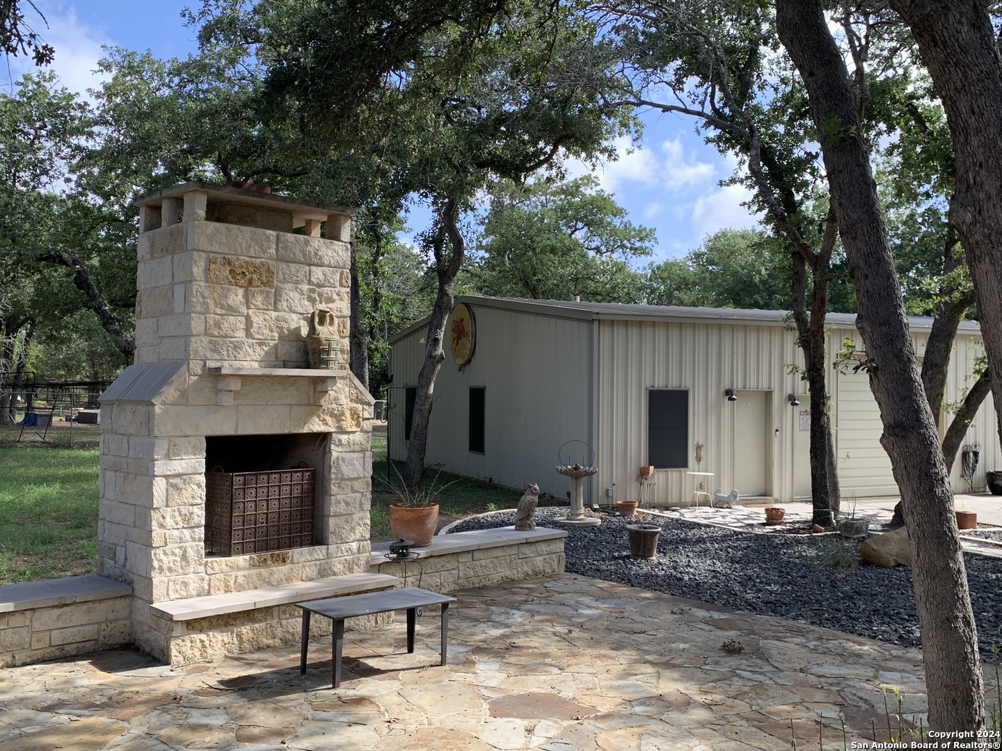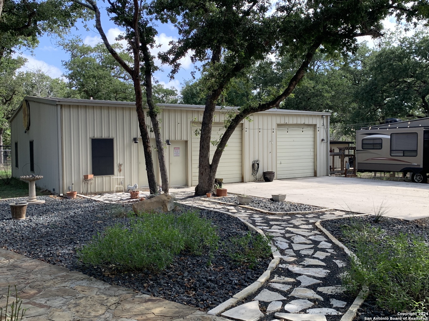 Located in The Estates at Eagle Creek Subdivision, a beautiful wooded 5-acre tract showcasing a 2,330 SF main house with 3 bedrooms, 2 bathrooms, remodeled kitchen, high ceilings and open spaces. The outdoor living space is a delightful blend of comfort and nature that includes several cozy areas to both relax and entertain from the covered patio area to the outdoor stone fireplace, or even under the pergola. Beautiful landscaping pathways lead to the additional residential space/apartment-suite and the large shop that is climate controlled via A/C and a fully functional wood stove. For the RV'ers, the property offers space for storage and both electrical and drain line access. Come see this gem and all the features it has to offer.