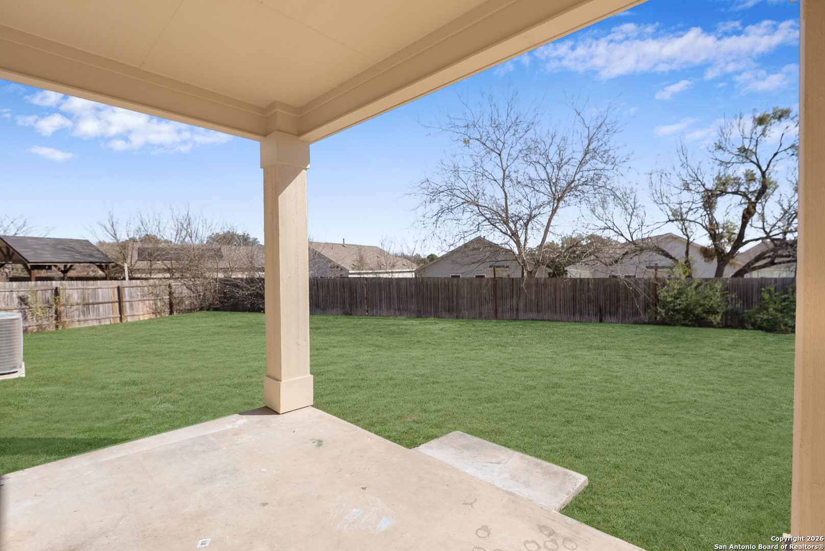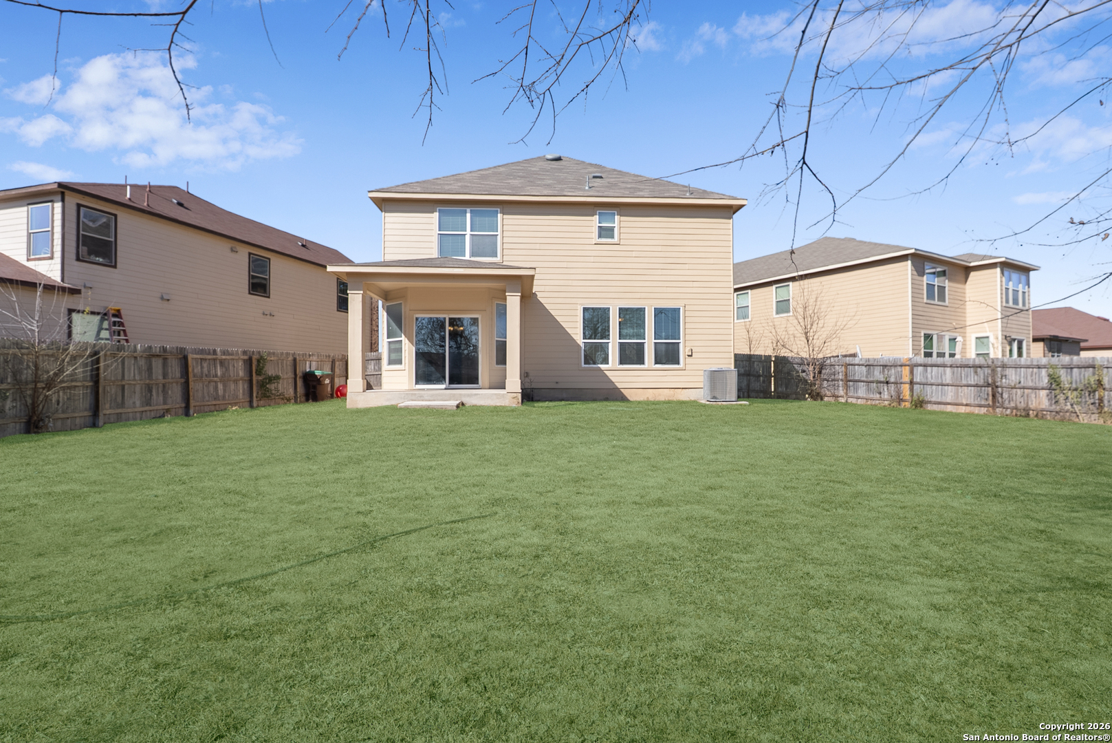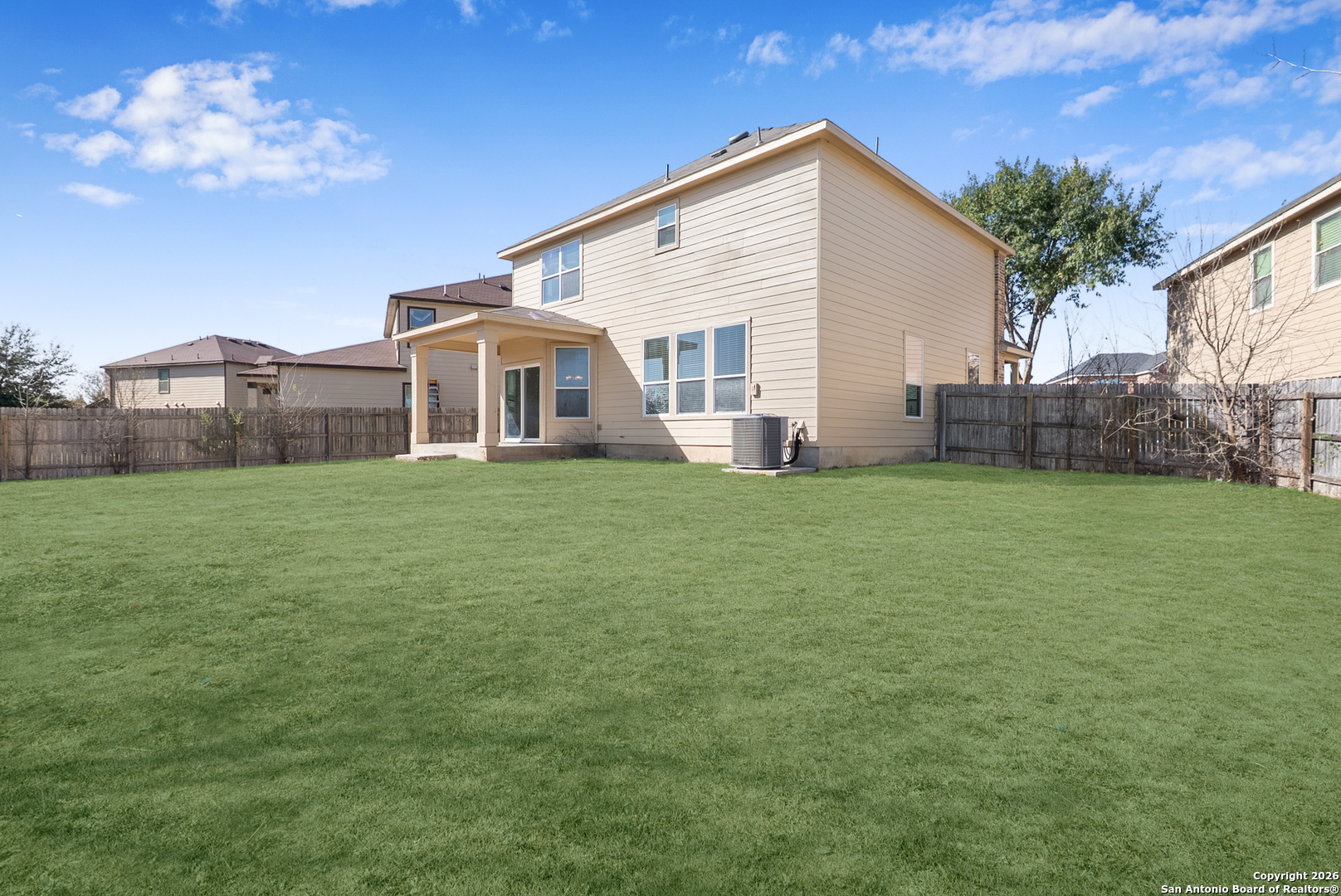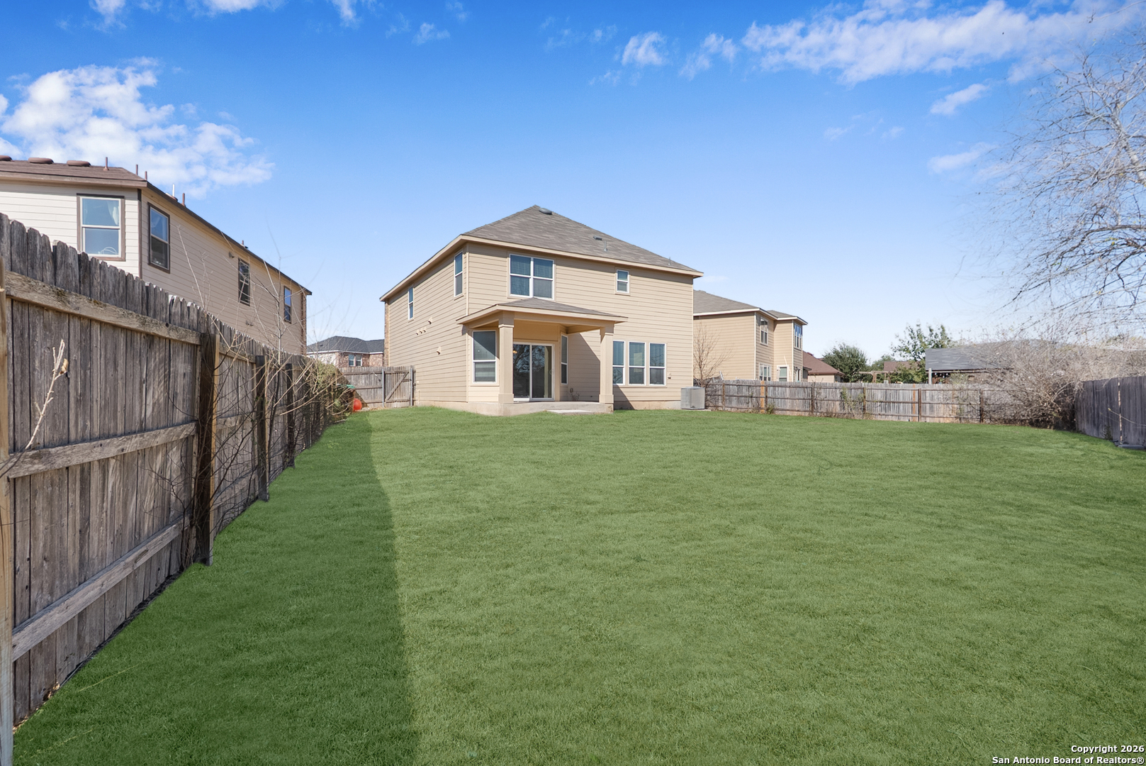 Step into this beautifully updated 4-bedroom, 2.5-bath home offering 2,169 square feet of comfortable living space and a 2-car garage, perfectly blending cozy charm with modern style. This move-in-ready home features brand-new flooring throughout, fresh interior and exterior paint, and a stunning kitchen upgrade with new quartz countertops and a stylish backsplash. The bright, open kitchen flows seamlessly into the living and dining areas, making it ideal for everyday living and entertaining. The open-concept layout adds a sense of space and modern elegance throughout the home. Enjoy peace of mind with a new roof and spend time outdoors under the covered patio overlooking a large backyard with a privacy fence, perfect for relaxing, entertaining, or pets. Conveniently located with easy access to 1604, 410, 151, and 90, and just minutes from shopping and Lackland Air Force Base. Plus, enjoy the benefit of lower taxes as the home is located outside city limits. This home checks all the boxes for comfort, updates, location, and value. Schedule your showing today.