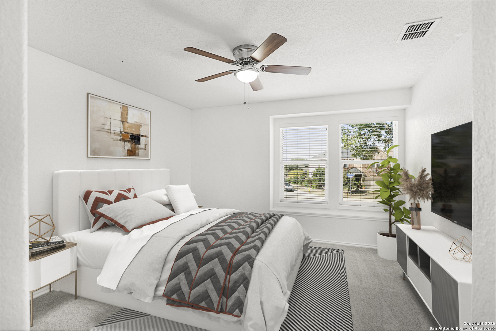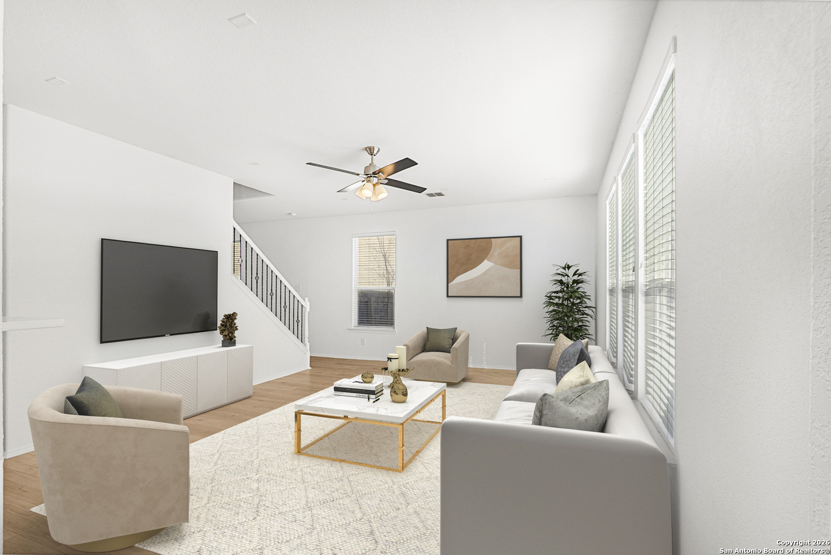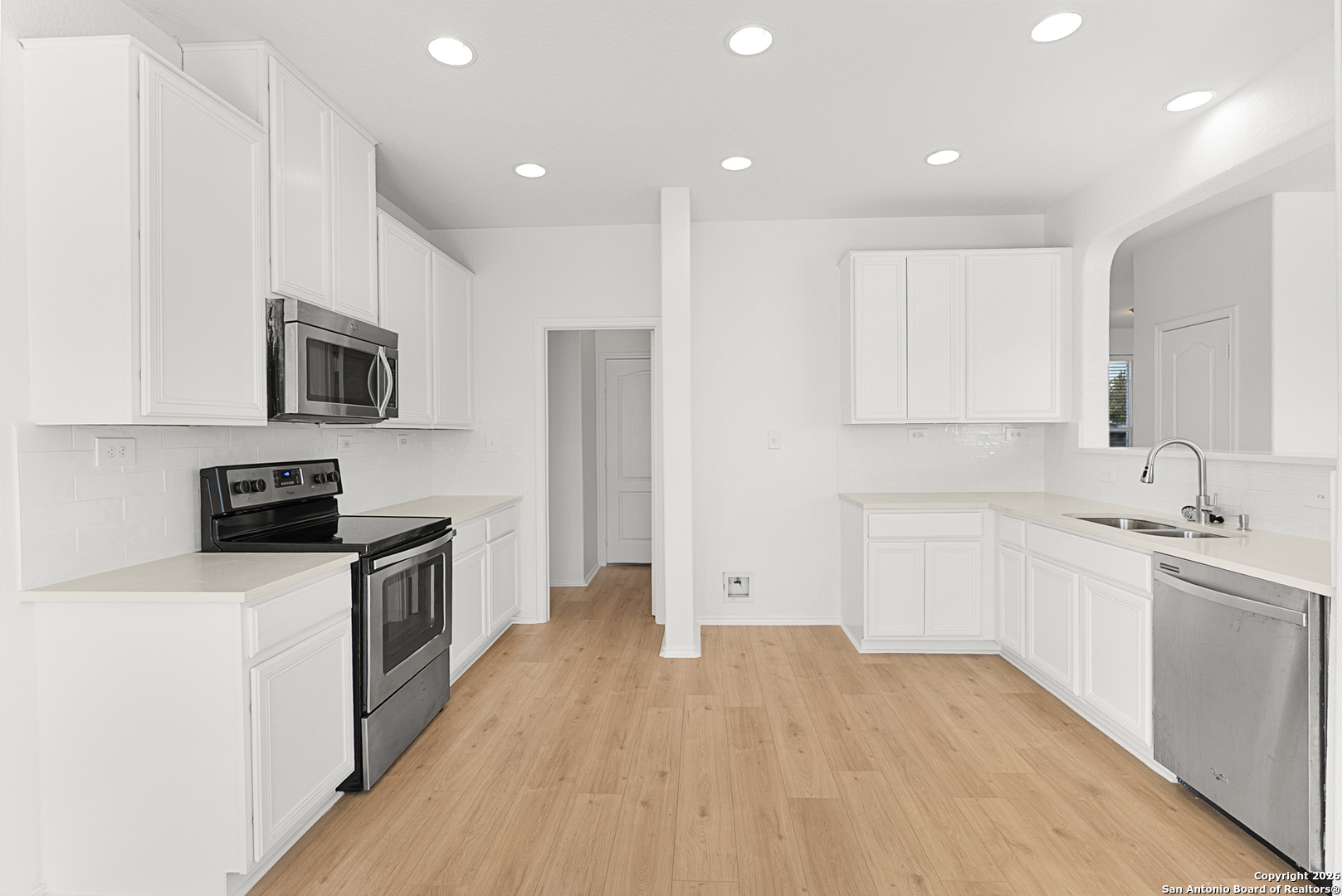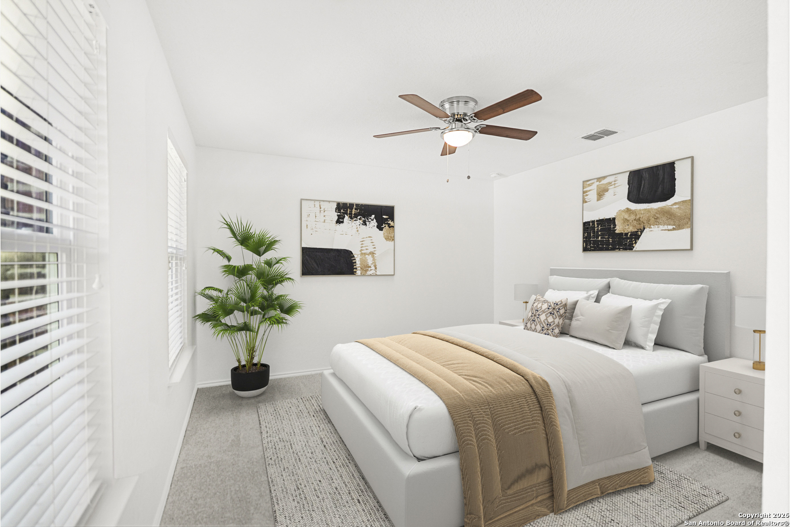 Step into this beautifully updated 4-bedroom, 2.5-bath home offering 2,169 square feet of comfortable living space and a 2-car garage, perfectly blending cozy charm with modern style. This move-in-ready home features brand-new flooring throughout, fresh interior and exterior paint, and a stunning kitchen upgrade with new quartz countertops and a stylish backsplash. The bright, open kitchen flows seamlessly into the living and dining areas, making it ideal for everyday living and entertaining. The open-concept layout adds a sense of space and modern elegance throughout the home. Enjoy peace of mind with a new roof and spend time outdoors under the covered patio overlooking a large backyard with a privacy fence, perfect for relaxing, entertaining, or pets. Conveniently located with easy access to 1604, 410, 151, and 90, and just minutes from shopping and Lackland Air Force Base. Plus, enjoy the benefit of lower taxes as the home is located outside city limits. This home checks all the boxes for comfort, updates, location, and value. Schedule your showing today.