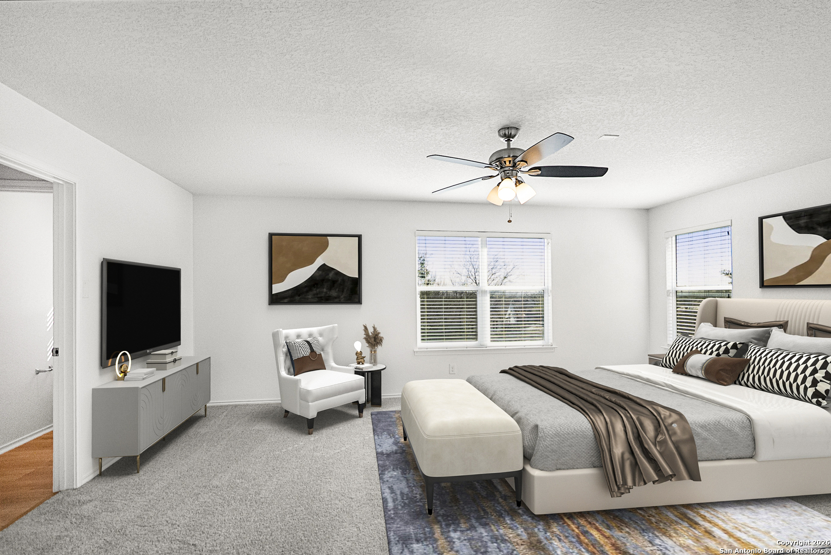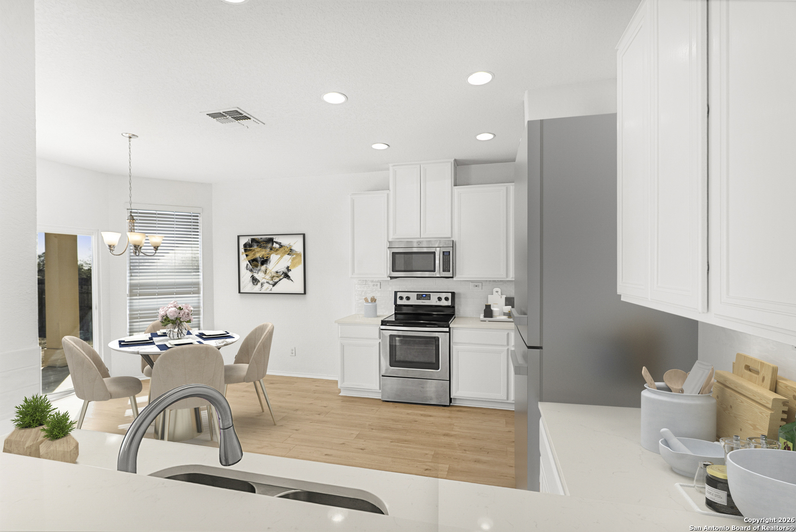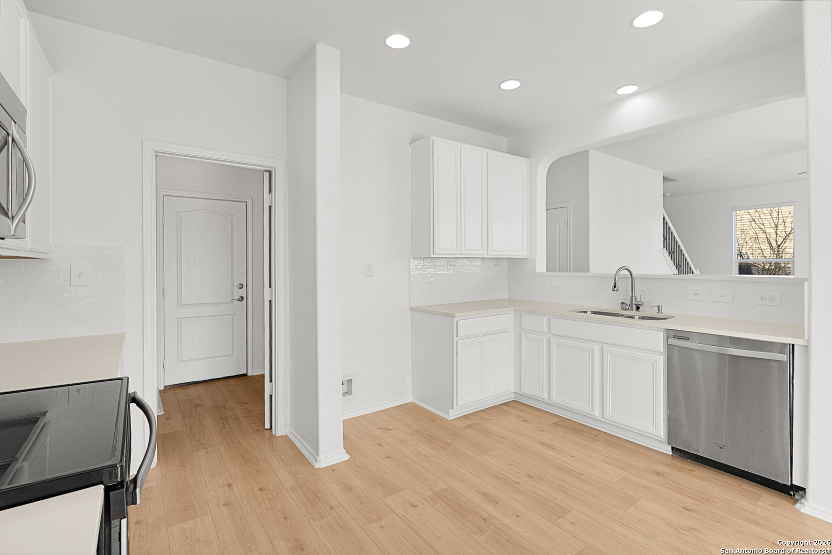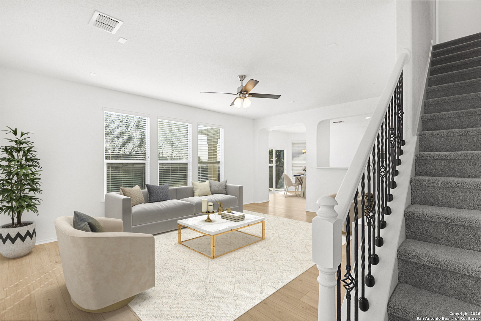 Step into this beautifully updated 4-bedroom, 2.5-bath home offering 2,169 square feet of comfortable living space and a 2-car garage, perfectly blending cozy charm with modern style. This move-in-ready home features brand-new flooring throughout, fresh interior and exterior paint, and a stunning kitchen upgrade with new quartz countertops and a stylish backsplash. The bright, open kitchen flows seamlessly into the living and dining areas, making it ideal for everyday living and entertaining. The open-concept layout adds a sense of space and modern elegance throughout the home. Enjoy peace of mind with a new roof and spend time outdoors under the covered patio overlooking a large backyard with a privacy fence, perfect for relaxing, entertaining, or pets. Conveniently located with easy access to 1604, 410, 151, and 90, and just minutes from shopping and Lackland Air Force Base. Plus, enjoy the benefit of lower taxes as the home is located outside city limits. This home checks all the boxes for comfort, updates, location, and value. Schedule your showing today.
