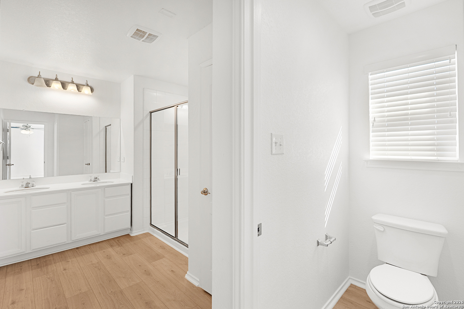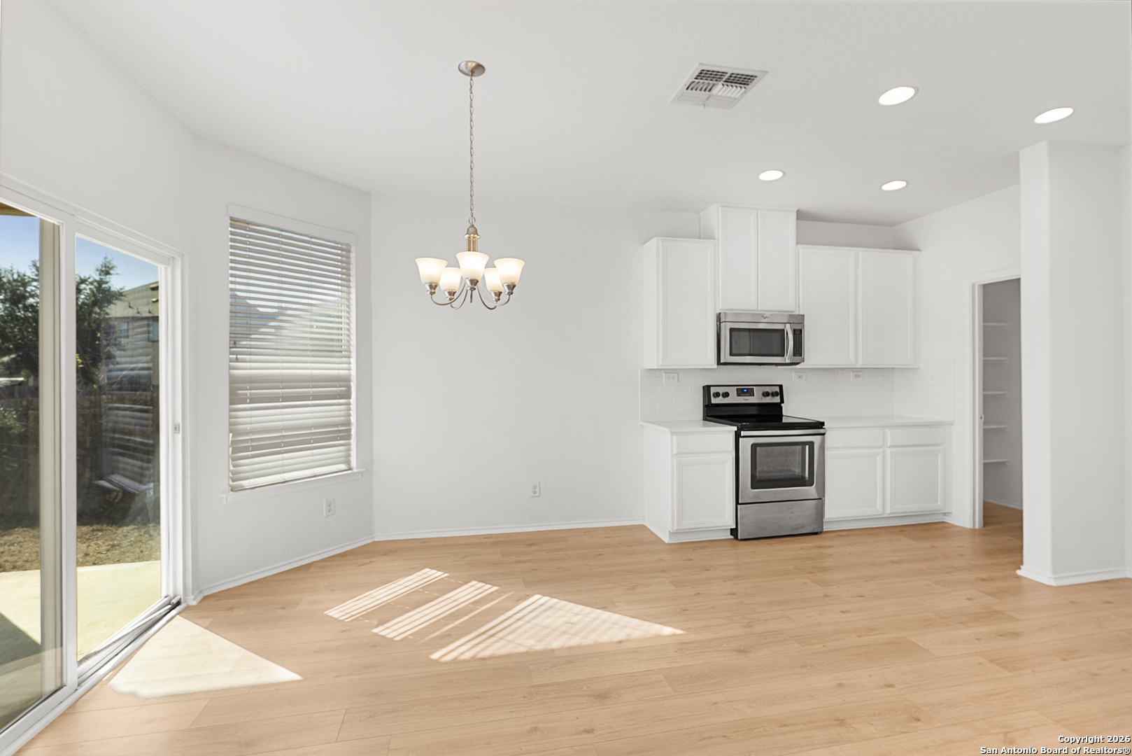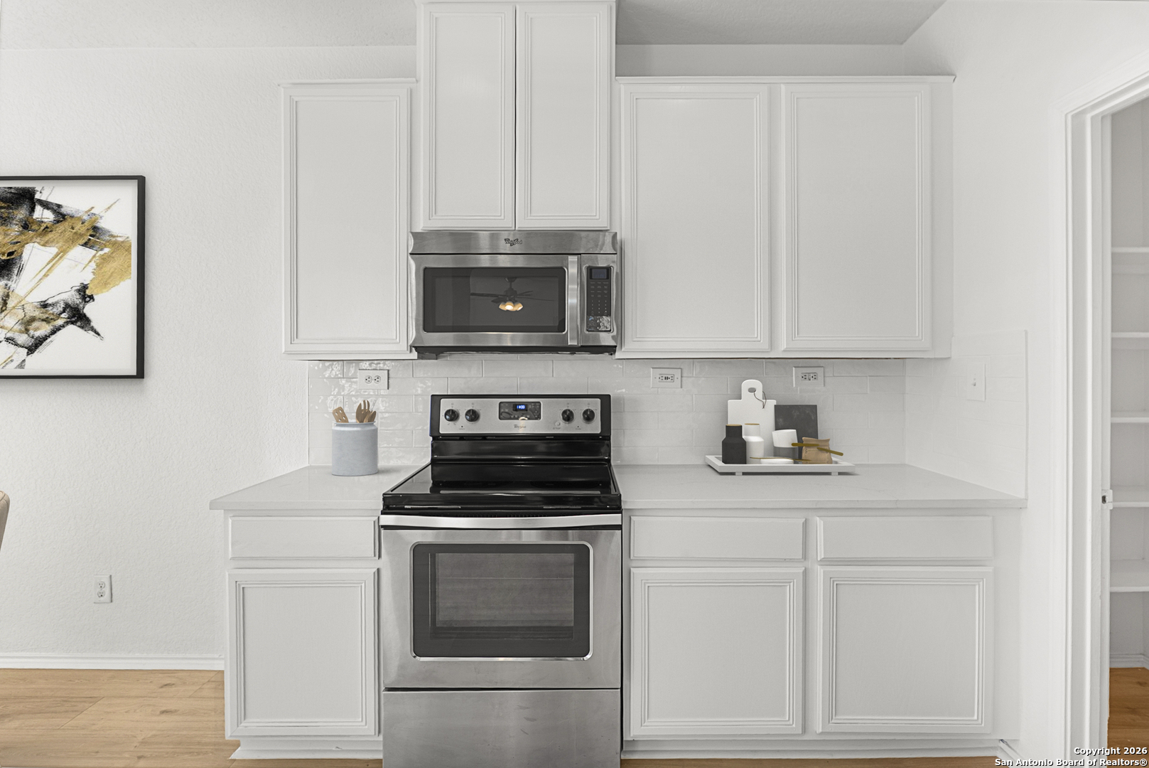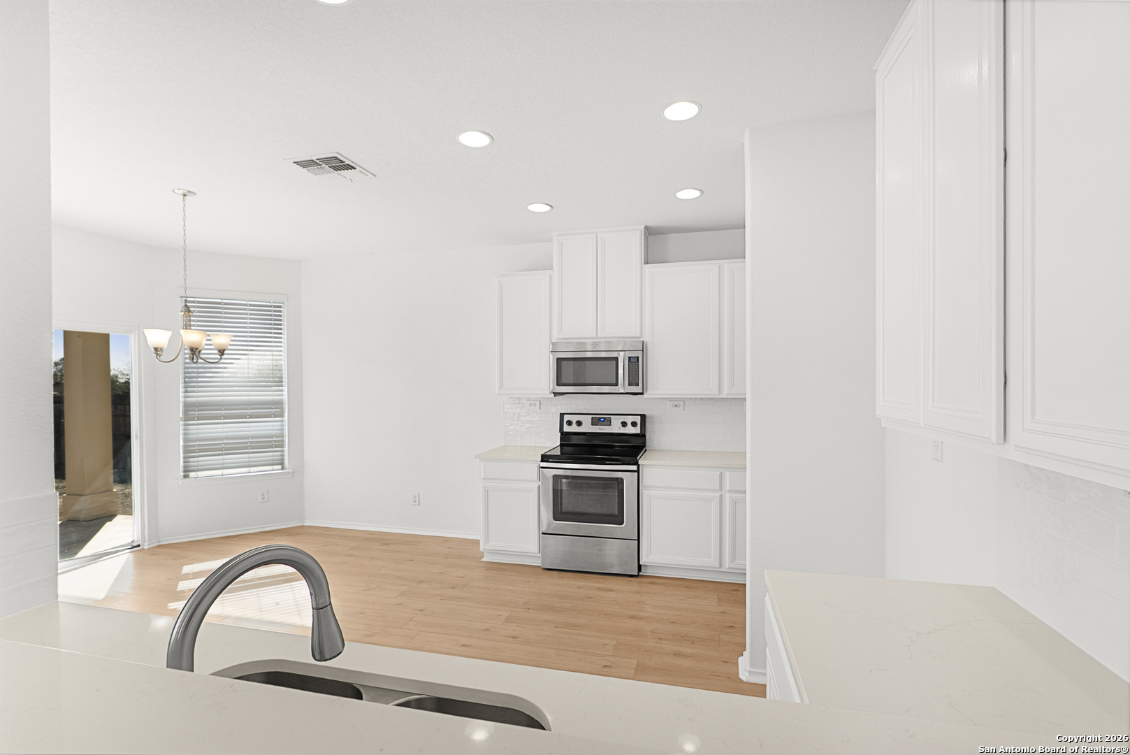 Step into this beautifully updated 4-bedroom, 2.5-bath home offering 2,169 square feet of comfortable living space and a 2-car garage, perfectly blending cozy charm with modern style. This move-in-ready home features brand-new flooring throughout, fresh interior and exterior paint, and a stunning kitchen upgrade with new quartz countertops and a stylish backsplash. The bright, open kitchen flows seamlessly into the living and dining areas, making it ideal for everyday living and entertaining. The open-concept layout adds a sense of space and modern elegance throughout the home. Enjoy peace of mind with a new roof and spend time outdoors under the covered patio overlooking a large backyard with a privacy fence, perfect for relaxing, entertaining, or pets. Conveniently located with easy access to 1604, 410, 151, and 90, and just minutes from shopping and Lackland Air Force Base. Plus, enjoy the benefit of lower taxes as the home is located outside city limits. This home checks all the boxes for comfort, updates, location, and value. Schedule your showing today.