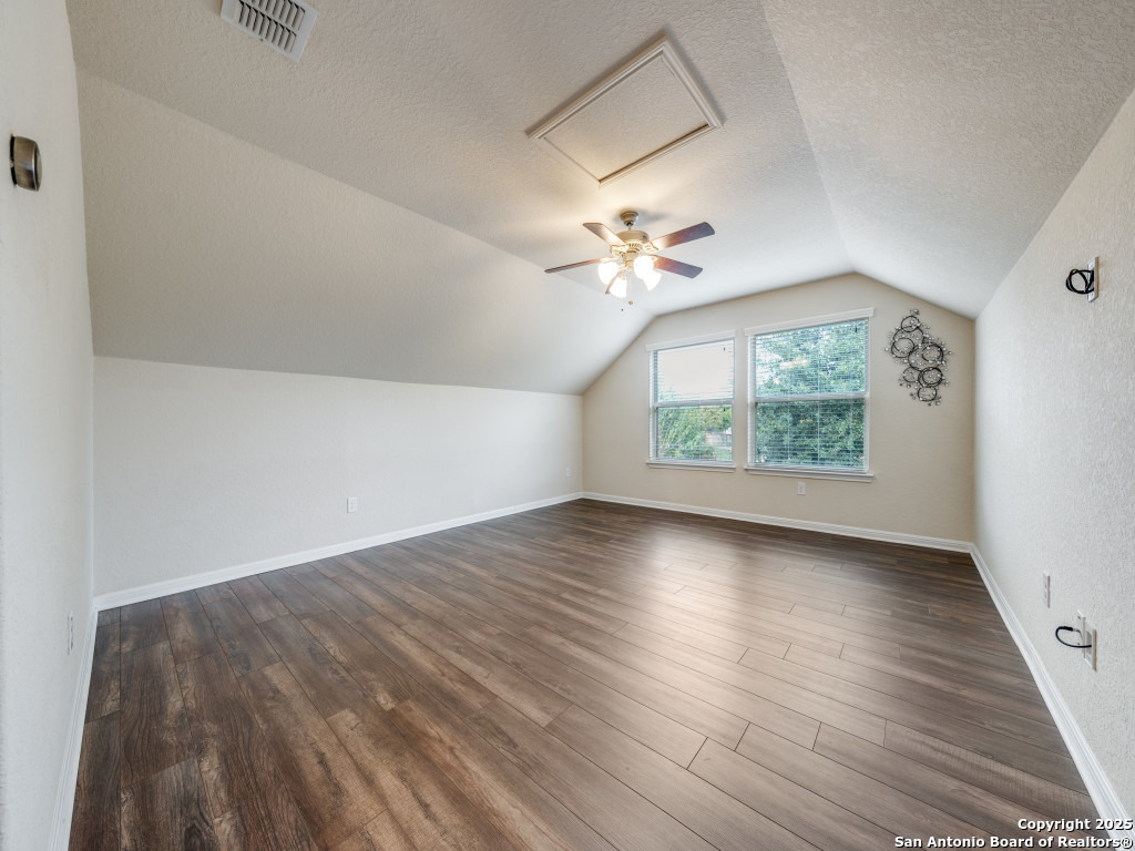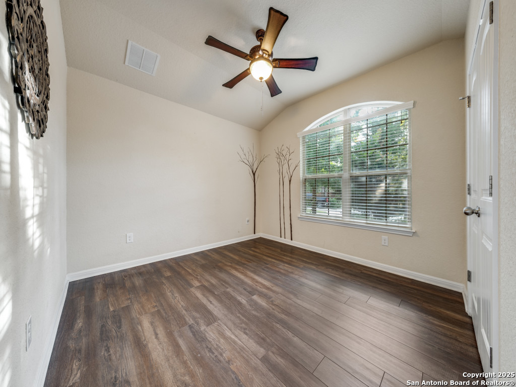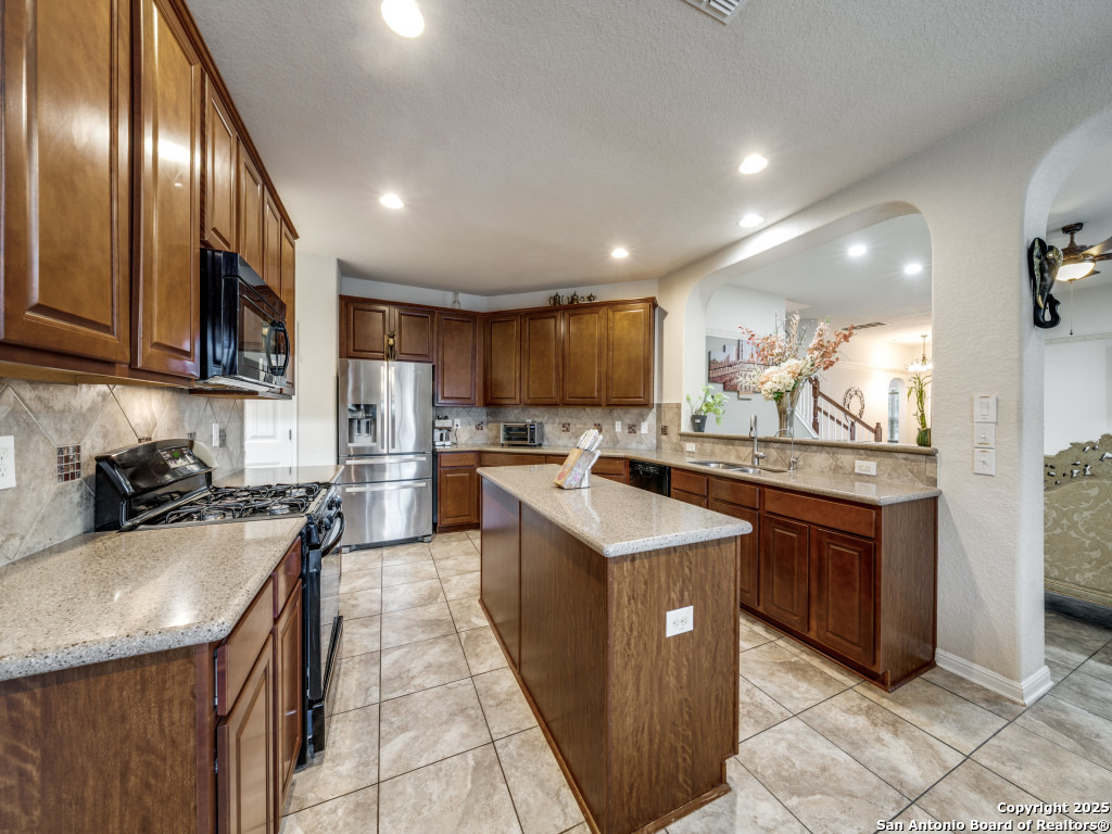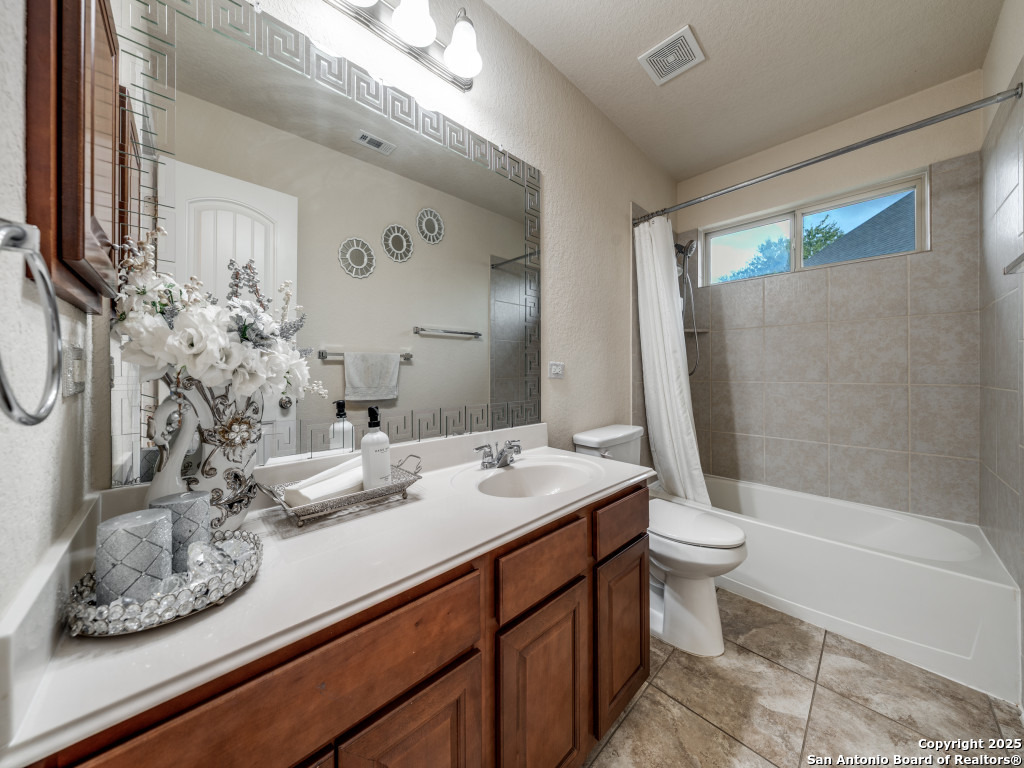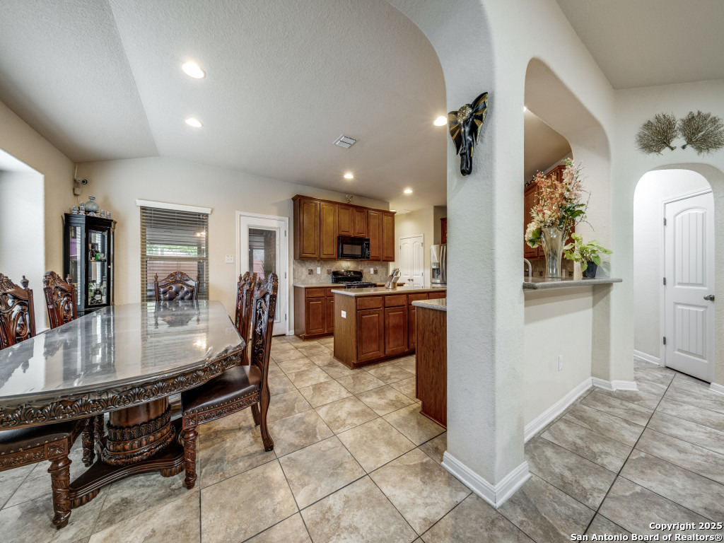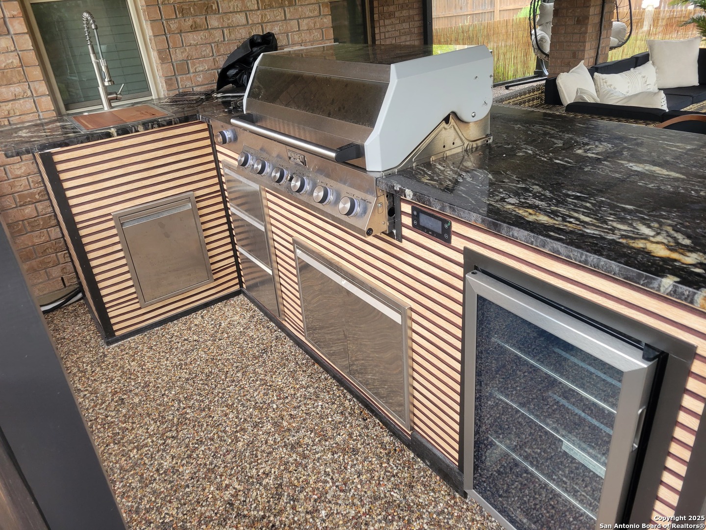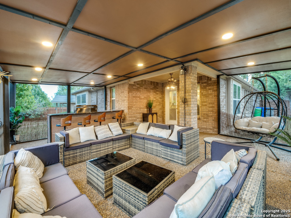 Welcome home to this charming brick residence nestled in the desirable Stillwater Ranch community of San Antonio. Designed for comfort and modern living, this beautifully maintained single-story offers a spacious open floor plan filled with natural light, high ceilings, elegant arched entryways, and stylish stone tile flooring throughout. The inviting island kitchen is perfect for both everyday living and entertaining, featuring granite countertops, 42-inch cabinetry, gas cooking, and seamless access to both covered and open-air patios - ideal for dining al fresco or relaxing outdoors. Unwind in the private owner's suite complete with a large, spa-like shower, while two additional bedrooms and a dedicated home office provide space and flexibility for today's lifestyle. An upstairs bonus room with half bath adds even more versatility - perfect for a media room, game room, or guest retreat. Step outside to enjoy an expansive backyard featuring a cozy fire pit and a spacious storage shed, ideal for a workshop, hobby space, or personalized "She Shed"/"Man Cave." This home also offers energy-efficient ** SOLAR Panels and smart home upgrades, providing comfort, convenience, and long-term savings. Experience the best of Stillwater Ranch - where community amenities, top-rated schools, and easy access to shopping, dining, and major highways come together for exceptional San Antonio living.