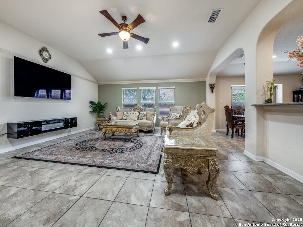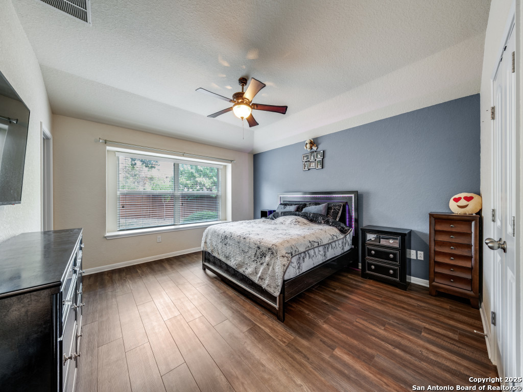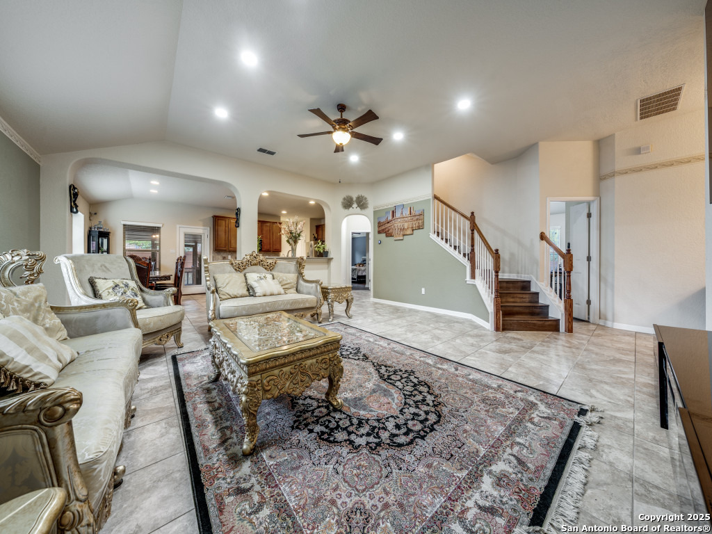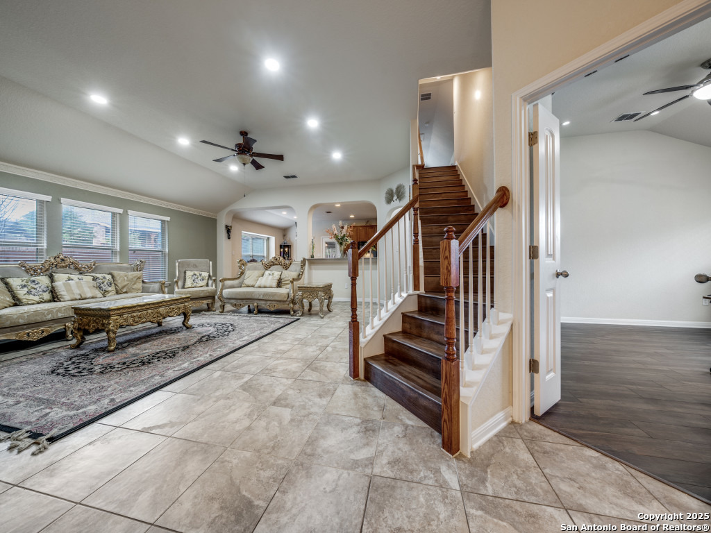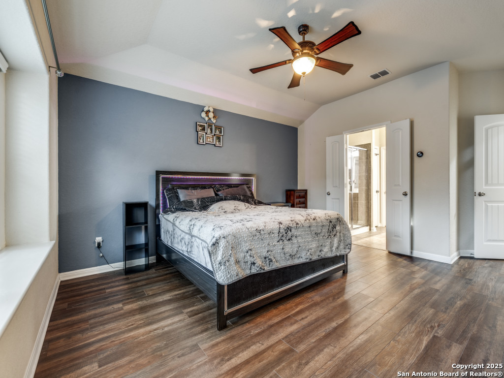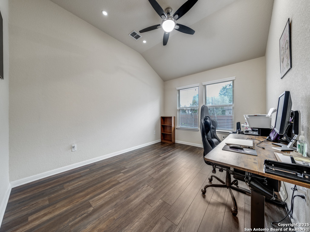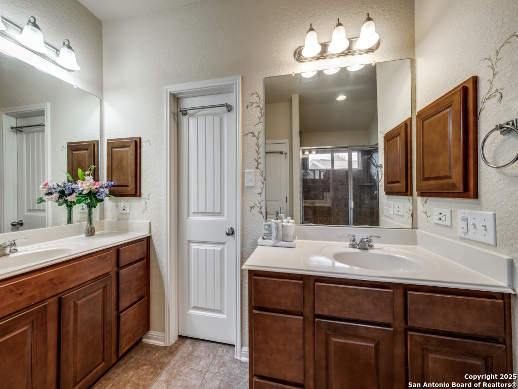 Welcome home to this charming brick residence nestled in the desirable Stillwater Ranch community of San Antonio. Designed for comfort and modern living, this beautifully maintained single-story offers a spacious open floor plan filled with natural light, high ceilings, elegant arched entryways, and stylish stone tile flooring throughout. The inviting island kitchen is perfect for both everyday living and entertaining, featuring granite countertops, 42-inch cabinetry, gas cooking, and seamless access to both covered and open-air patios - ideal for dining al fresco or relaxing outdoors. Unwind in the private owner's suite complete with a large, spa-like shower, while two additional bedrooms and a dedicated home office provide space and flexibility for today's lifestyle. An upstairs bonus room with half bath adds even more versatility - perfect for a media room, game room, or guest retreat. Step outside to enjoy an expansive backyard featuring a cozy fire pit and a spacious storage shed, ideal for a workshop, hobby space, or personalized "She Shed"/"Man Cave." This home also offers energy-efficient ** SOLAR Panels and smart home upgrades, providing comfort, convenience, and long-term savings. Experience the best of Stillwater Ranch - where community amenities, top-rated schools, and easy access to shopping, dining, and major highways come together for exceptional San Antonio living.