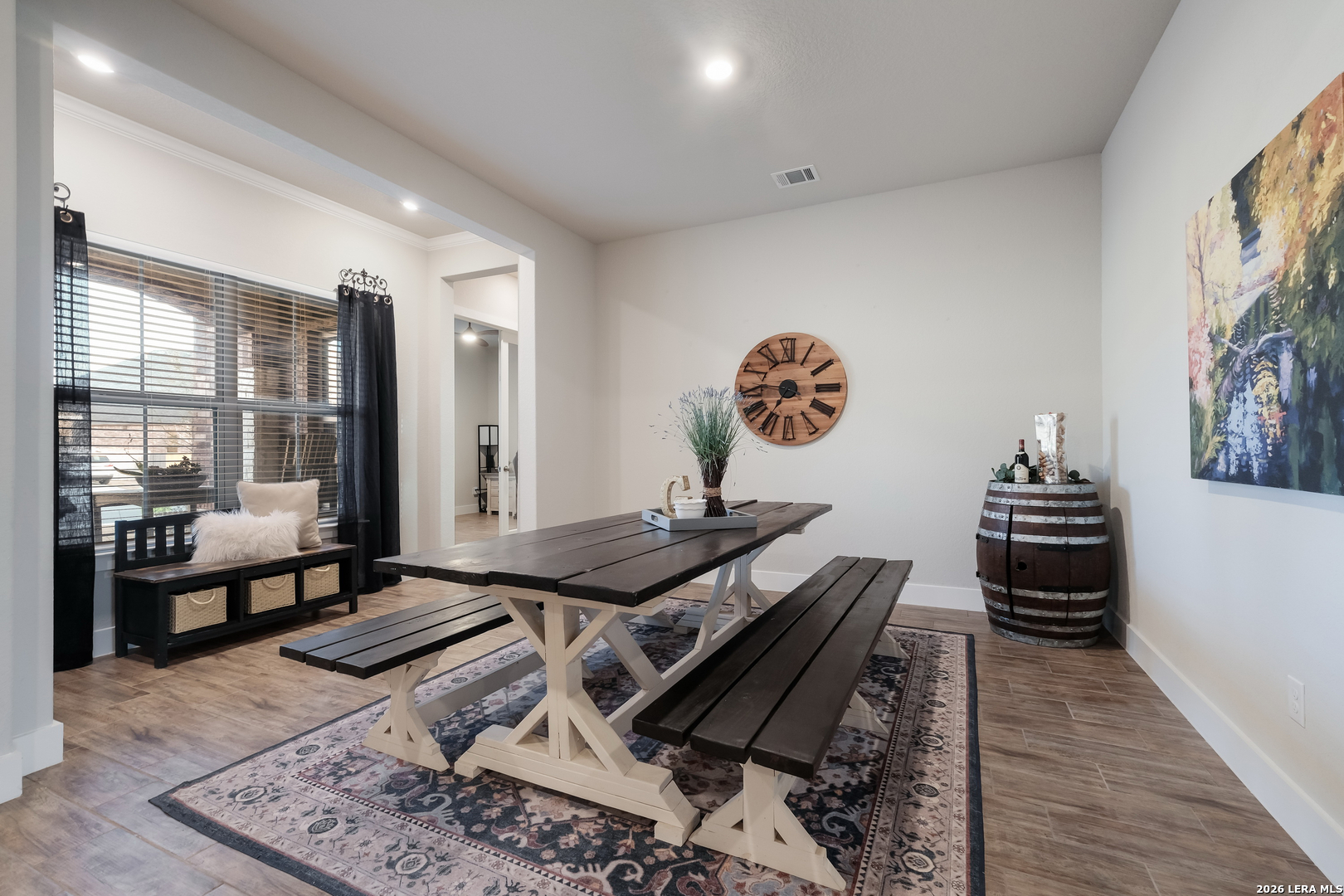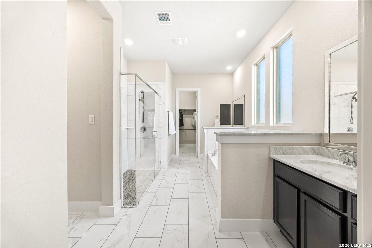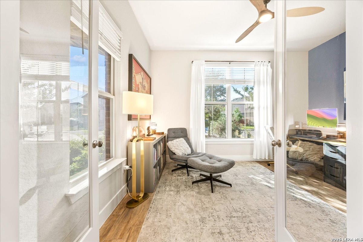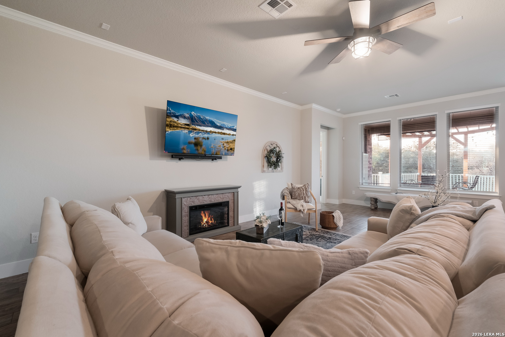 Step into the home of your dreams-a better-than-new, move-in-ready gem perfectly situated on a rare 70' greenbelt lot with NO CITY TAXES! Designed for both everyday living and unforgettable entertaining, this stunning one-story MI Homes Edinburgh floor plan offers an open-concept layout, soaring high ceilings, and abundant natural light throughout. At the heart of the home, the chef's kitchen impresses with an oversized granite island, bar seating, stainless steel appliances, gas cooking, pot filler, subway tile backsplash, and expansive counter space-ideal for hosting and gathering. The versatile open dining area easily doubles as a second living space for added flexibility. Enjoy seamless indoor-outdoor living with an expansive TREX deck (with storage below), covered patio, pergola, and a large, flat backyard backing to a peaceful greenbelt-perfect for entertaining, relaxing, or creating your own private oasis. Retreat to the luxurious primary suite, featuring a spa-like bathroom with dual vanities, quartz countertops, an oversized seamless glass shower, and a spacious walk-in closet. A private front office with glass French doors makes working from home effortless, while the guest suite with ensuite bath offers comfort and privacy. Additional flex space provides endless possibilities, including a home gym, media room, hobby area, or second office. This home is loaded with upgrades, including no carpet throughout, energy-saving 3M window film, surround sound wiring, a water softener, and a tankless water heater. The upgraded landscaping and masonry enhance curb appeal, while overhead garage storage racks add convenience and peace of mind. Why wait for new construction when you can own this practically new, upgraded home on a premium lot-at a fraction of the price? Schedule your showing today-this one won't last!
