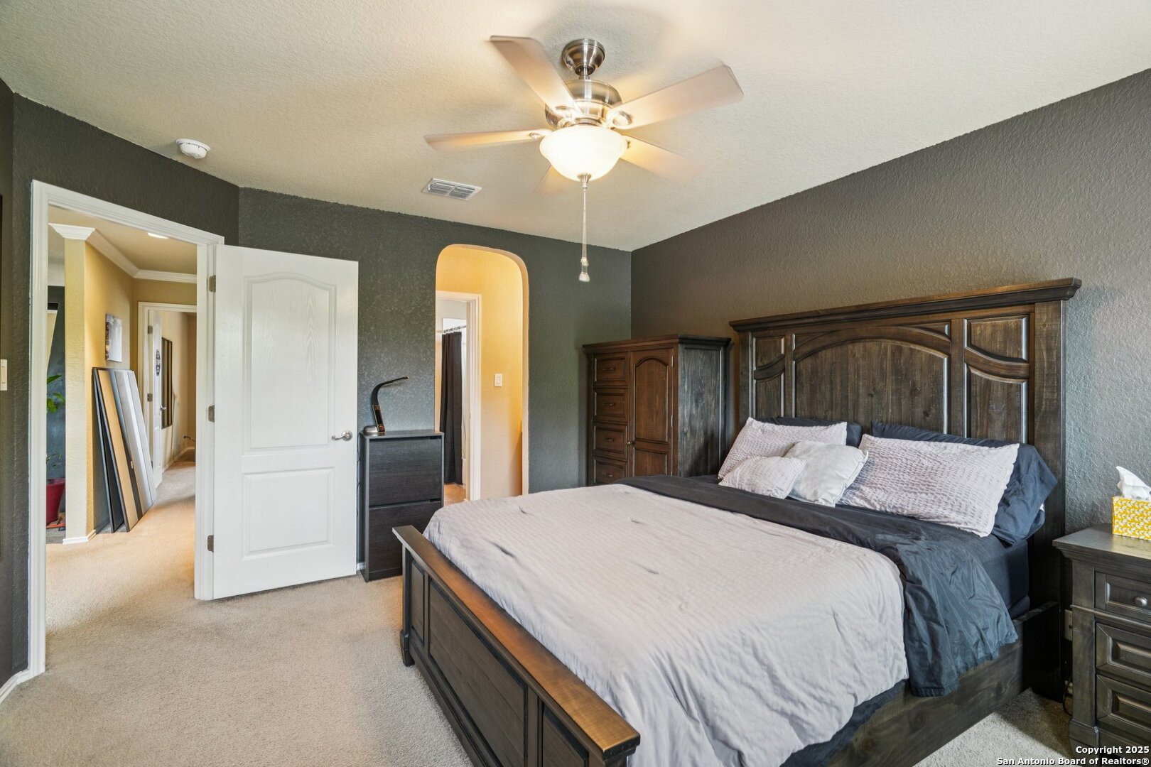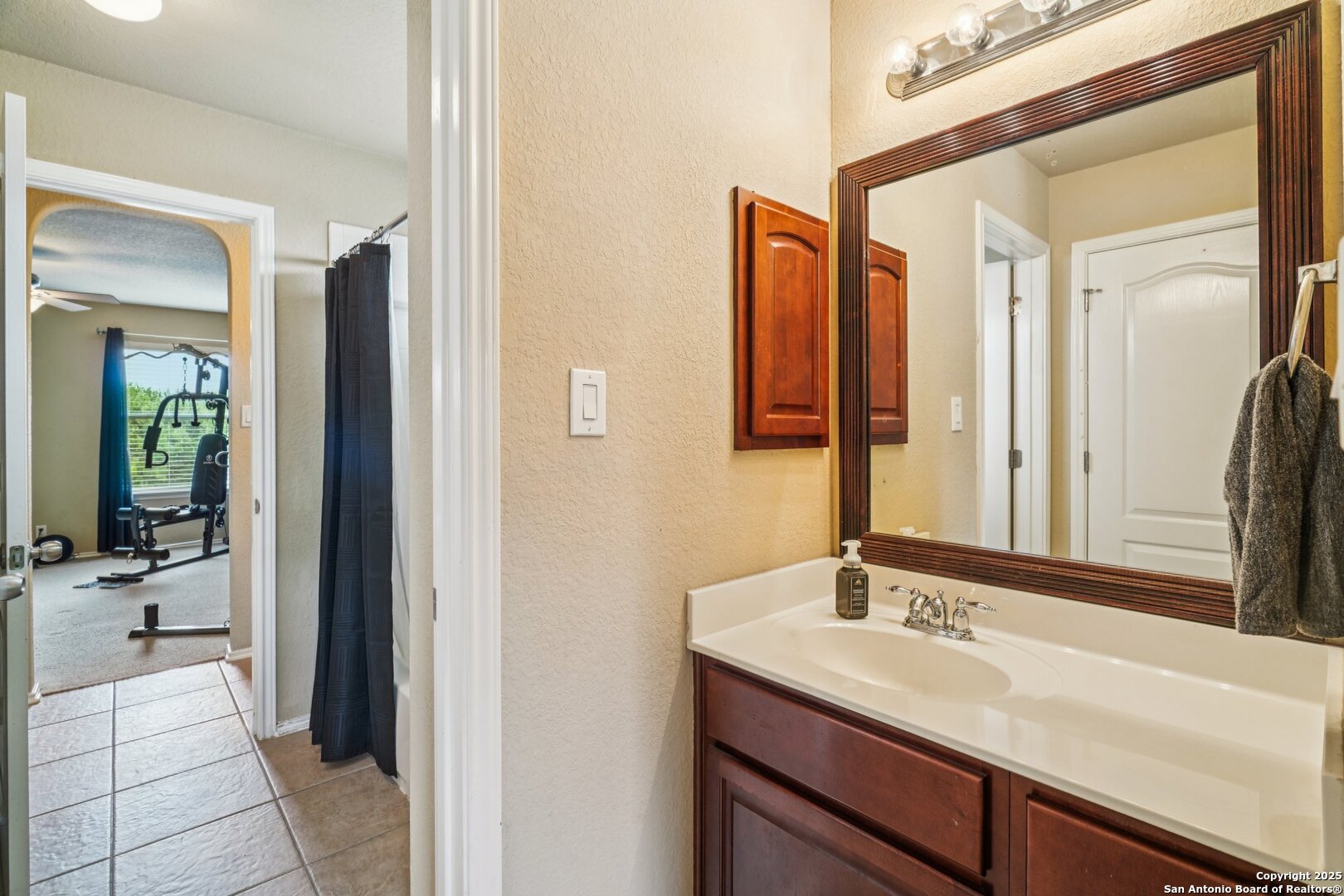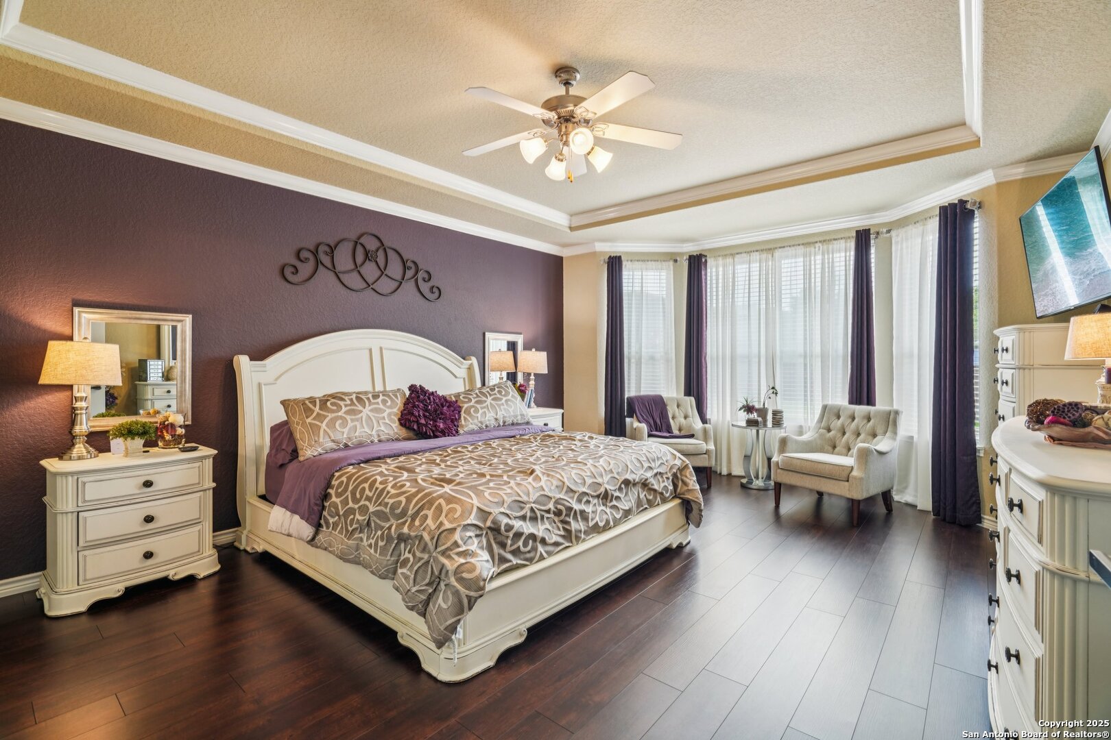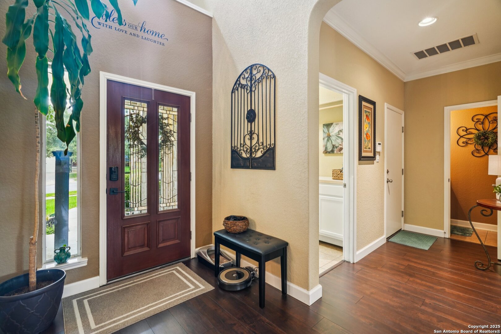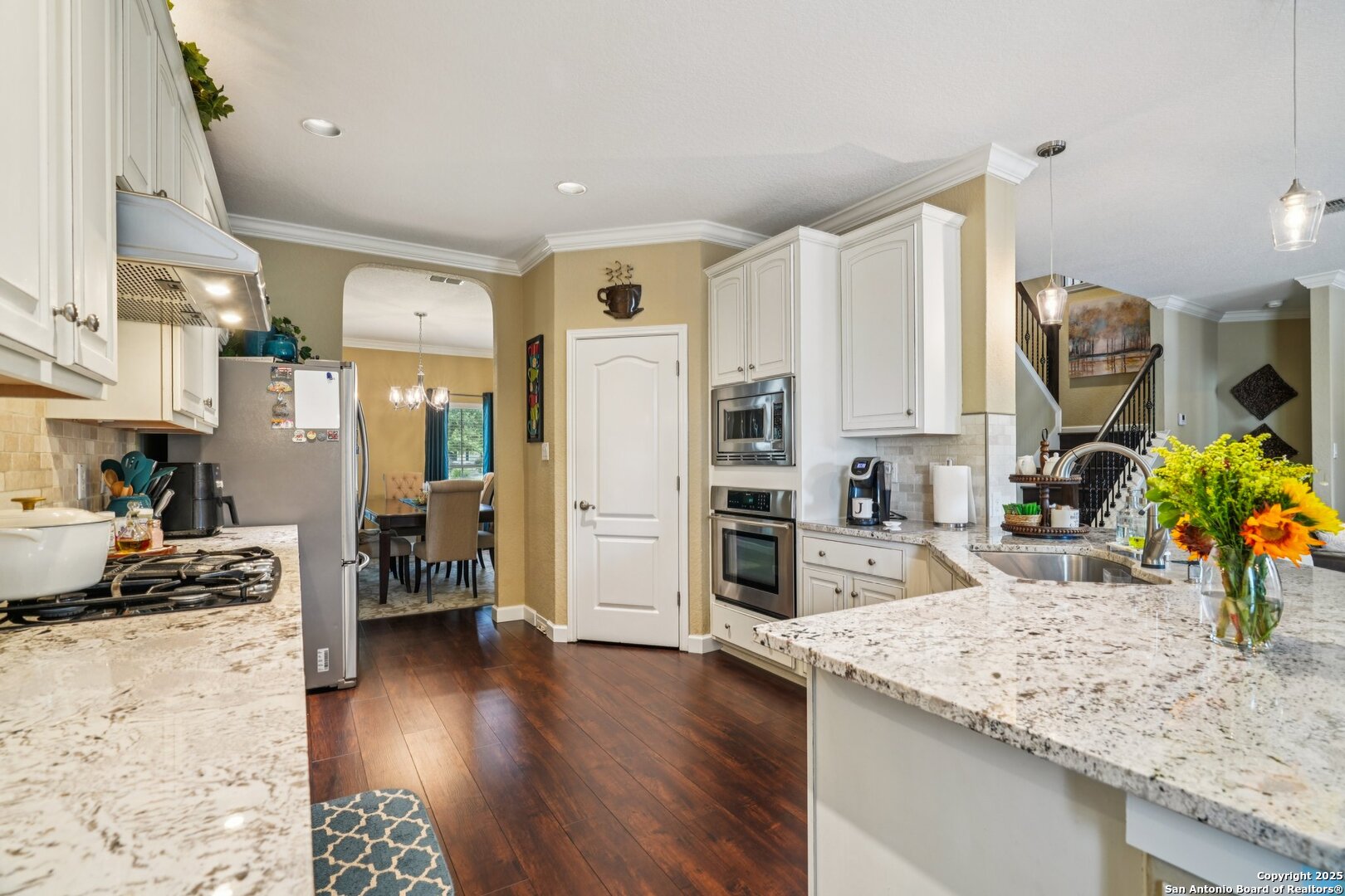 Beautifully appointed 4-bedroom, 4-bathroom residence located in the Alamo Ranch community, complete with a sparkling in-ground pool with tranquil waterfall feature. The expansive layout includes two generous living areas, a formal dining room, and a dedicated study ideal for remote work or quiet retreat. The gourmet kitchen features granite countertops, a gas cooktop, built-in oven and microwave, stainless steel appliances, and a reverse osmosis system. The downstairs primary suite offers a peaceful escape with large windows, a spacious walk-in closet, and a luxurious en-suite bath with dual vanities, a garden tub, and a walk-in shower. Upstairs, all secondary bedrooms provide ample space and include a Jack-and-Jill layout for added convenience. A four-seasons room adds year-round versatility for hobbies or a second office. Outside, enjoy your private oasis with a 22x14 pergola, curved flagstone bench, extended decking, and lush landscaping surrounding the pool-perfect for entertaining or quiet evenings. Additional upgrades include a central vacuum system, 2021 roof with radiant barrier decking, water softener, and a 3-car garage. Residents also enjoy access to the nearby community amenity center with a pool, clubhouse, sports court, and playground.
