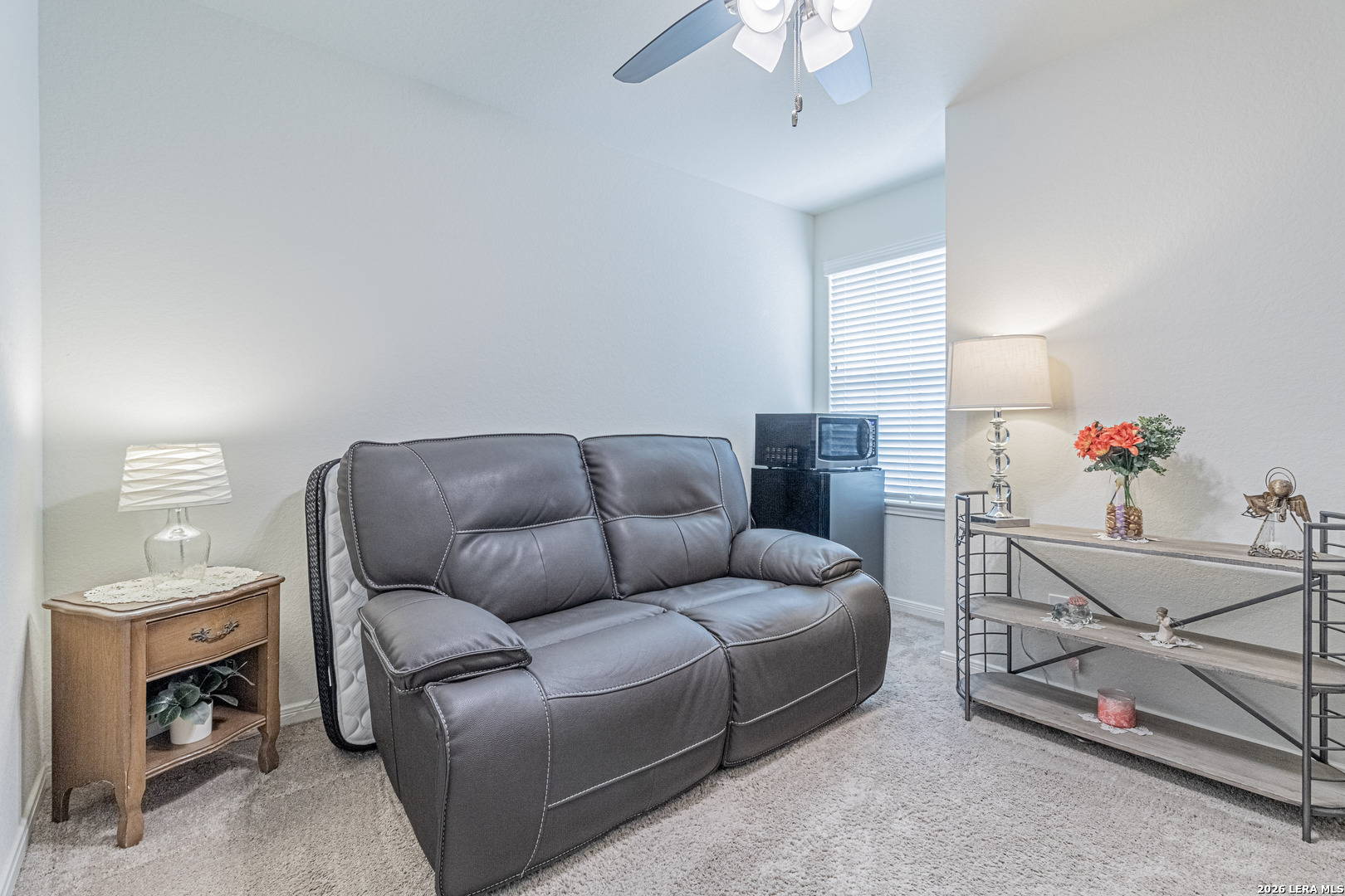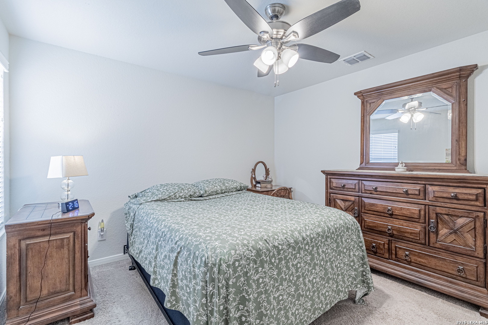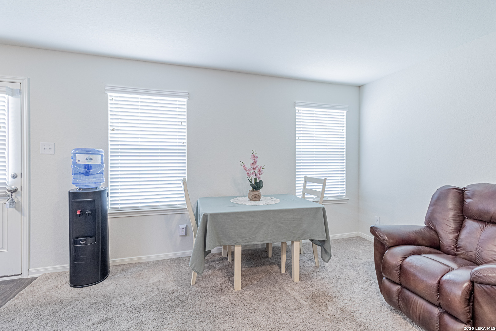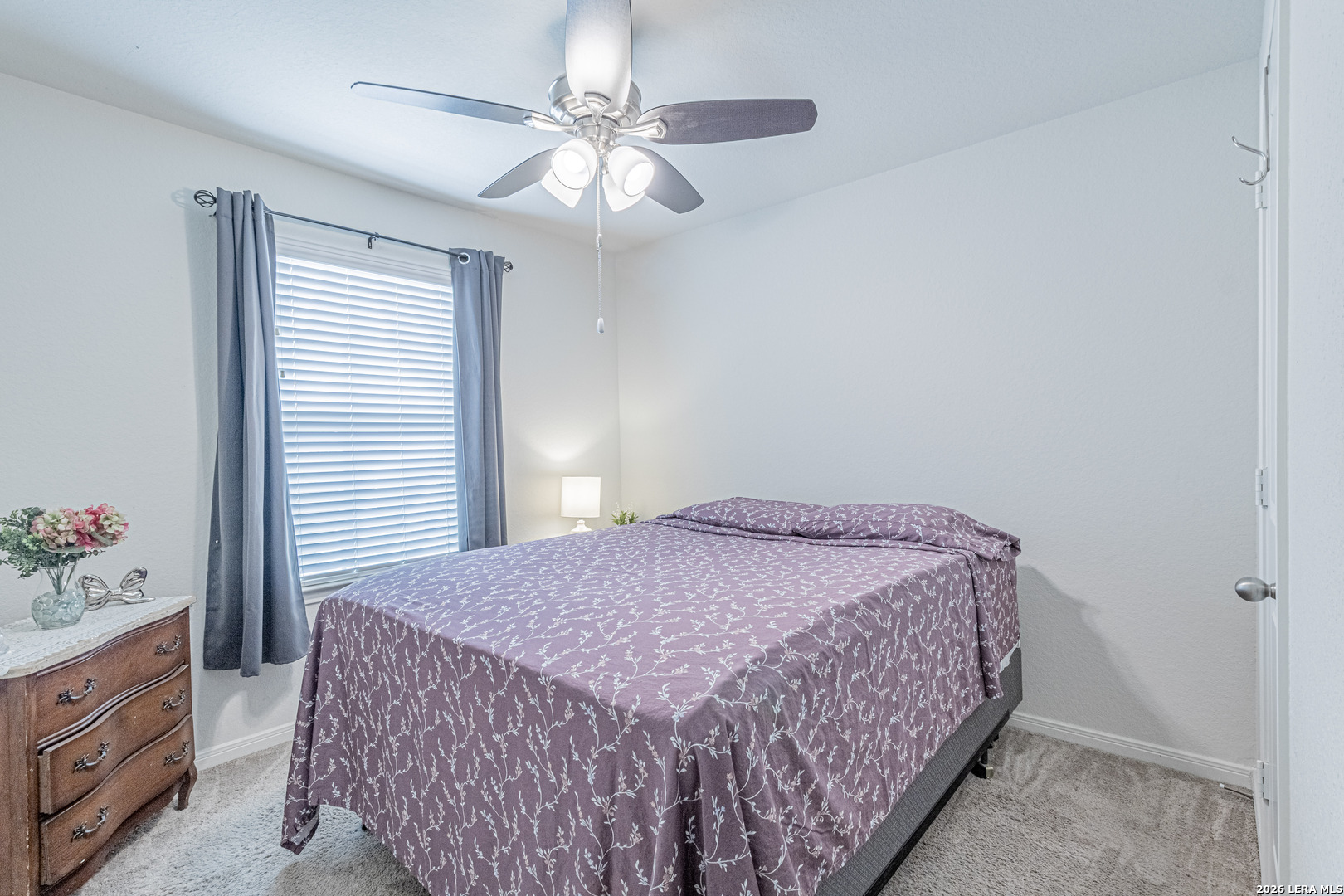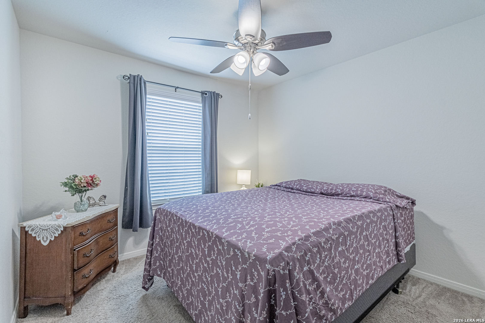 Situated in the sought-after master-planned community of Luckey Ranch, this well-maintained 3-bedroom, 2.5-bath, 1,290 sq ft two-story home offers an open-concept layout with a spacious living and dining area, plush carpet, and ceiling fans throughout. The kitchen impresses with rich dark cabinetry, granite countertops, and stainless steel appliances, all flowing seamlessly into the main living area - perfect for everyday living and entertaining. A convenient half bath is tucked on the main level for guests, while all three bedrooms are located upstairs, each with ceiling fans and ample closet space. The primary bathroom features granite countertops, dark cabinetry consistent with the home's finishes, and a tub/shower combo with single vanity. Out back, a fully fenced yard offers a great space for kids, pets, and weekend cookouts. Luckey Ranch is a premier, family-friendly master-planned community located just west of downtown San Antonio near Lackland AFB, off Highway 90 near Loop 1604. The community is home to an incredible sports park featuring two children's playgrounds, a splash pad, basketball court, sport fields, and a seven-acre fishing lake. The large amenity center also features jogging trails and an onsite elementary school right within the community. Nearby attractions include SeaWorld San Antonio, Six Flags Fiesta Texas, and Traders Village, and area employers include Lackland AFB and Toyota Manufacturing Center. With quick access to Highway 90 and Loop 1604, commuting throughout San Antonio is effortless.