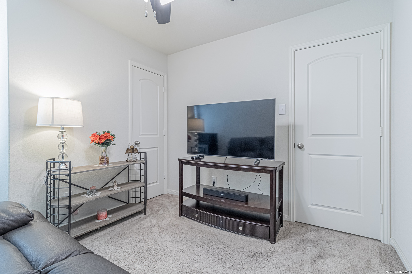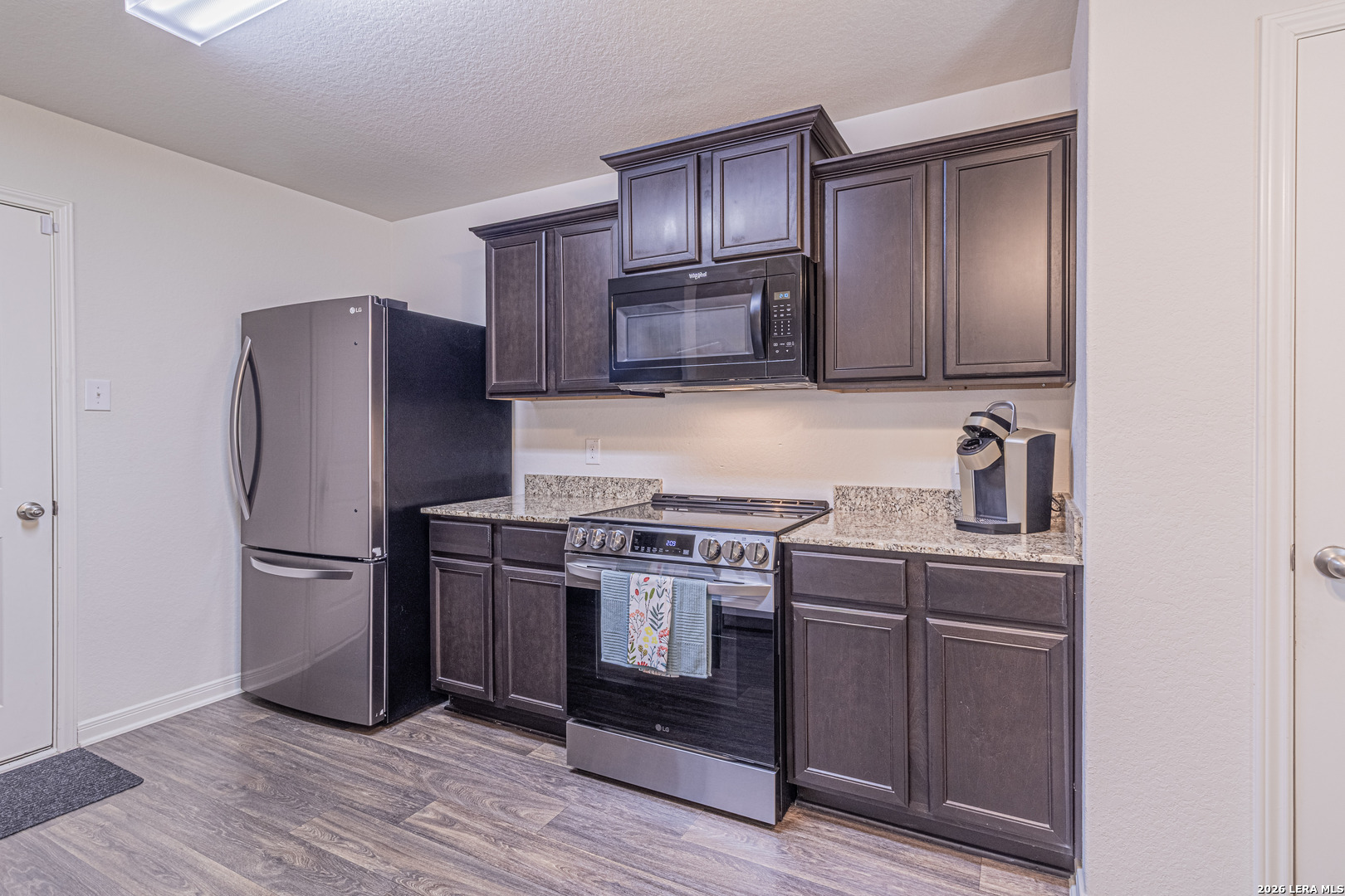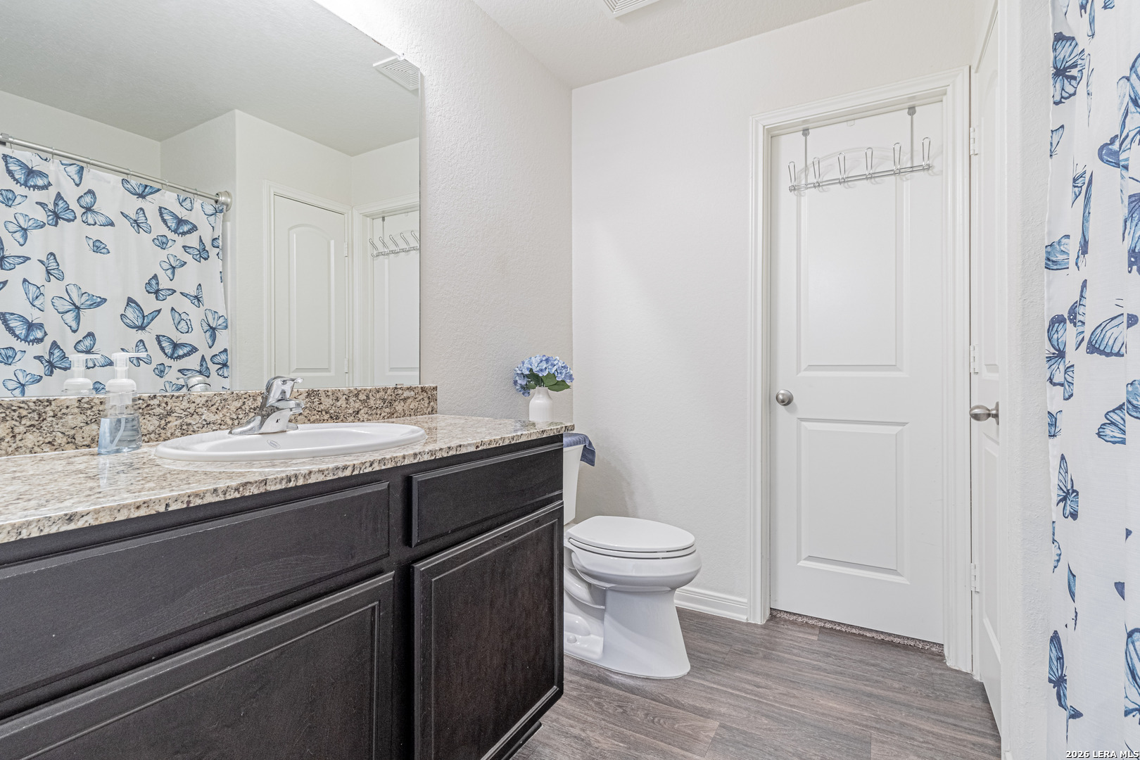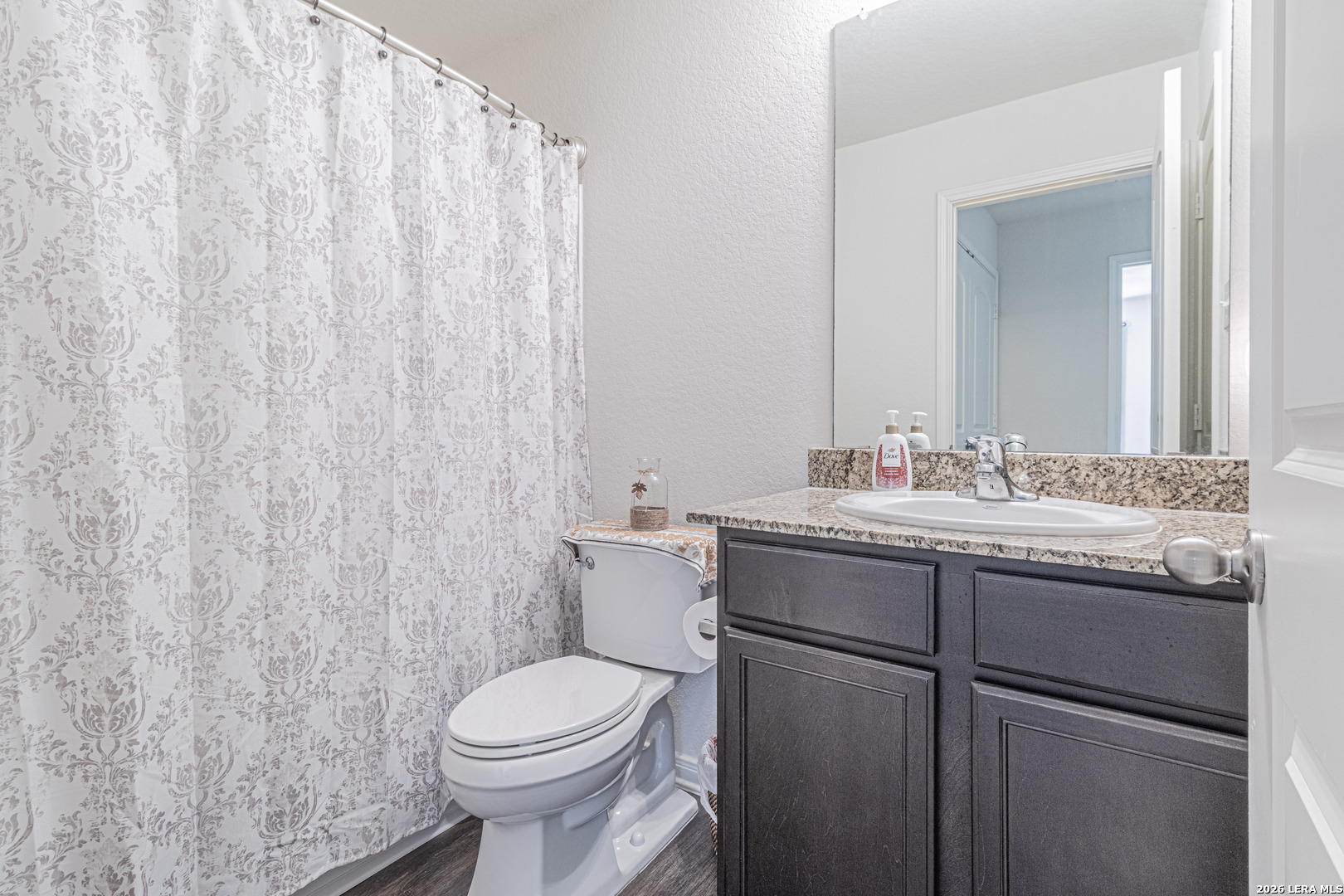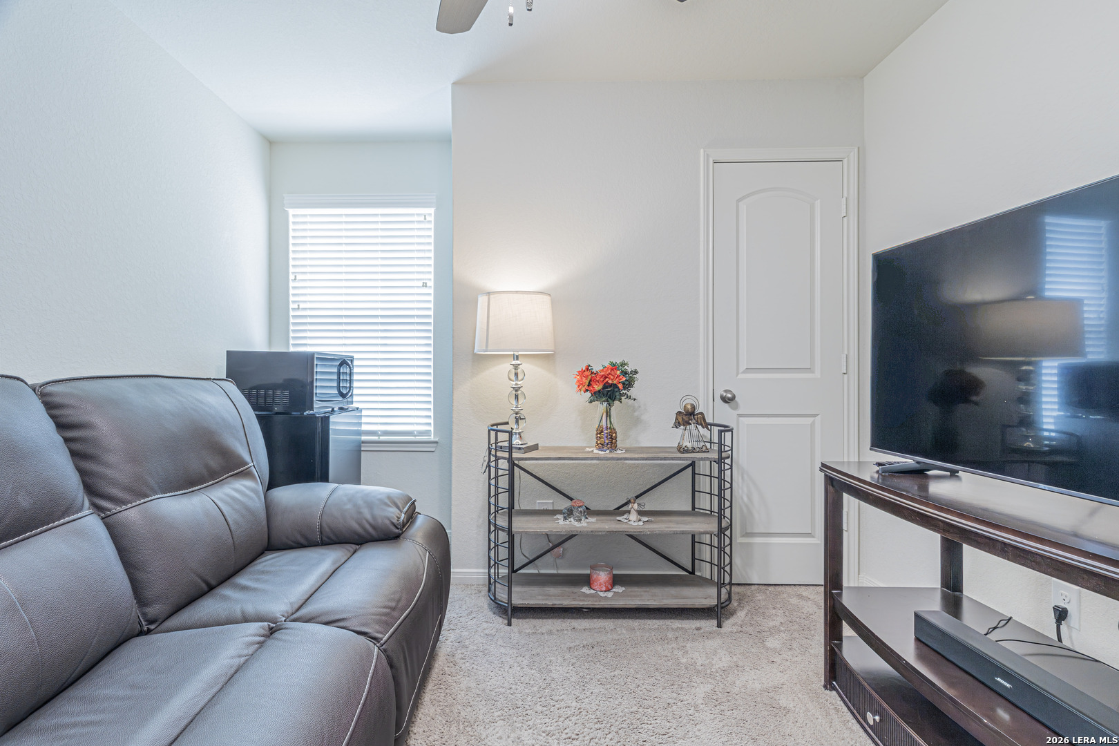 Situated in the sought-after master-planned community of Luckey Ranch, this well-maintained 3-bedroom, 2.5-bath, 1,290 sq ft two-story home offers an open-concept layout with a spacious living and dining area, plush carpet, and ceiling fans throughout. The kitchen impresses with rich dark cabinetry, granite countertops, and stainless steel appliances, all flowing seamlessly into the main living area - perfect for everyday living and entertaining. A convenient half bath is tucked on the main level for guests, while all three bedrooms are located upstairs, each with ceiling fans and ample closet space. The primary bathroom features granite countertops, dark cabinetry consistent with the home's finishes, and a tub/shower combo with single vanity. Out back, a fully fenced yard offers a great space for kids, pets, and weekend cookouts. Luckey Ranch is a premier, family-friendly master-planned community located just west of downtown San Antonio near Lackland AFB, off Highway 90 near Loop 1604. The community is home to an incredible sports park featuring two children's playgrounds, a splash pad, basketball court, sport fields, and a seven-acre fishing lake. The large amenity center also features jogging trails and an onsite elementary school right within the community. Nearby attractions include SeaWorld San Antonio, Six Flags Fiesta Texas, and Traders Village, and area employers include Lackland AFB and Toyota Manufacturing Center. With quick access to Highway 90 and Loop 1604, commuting throughout San Antonio is effortless.