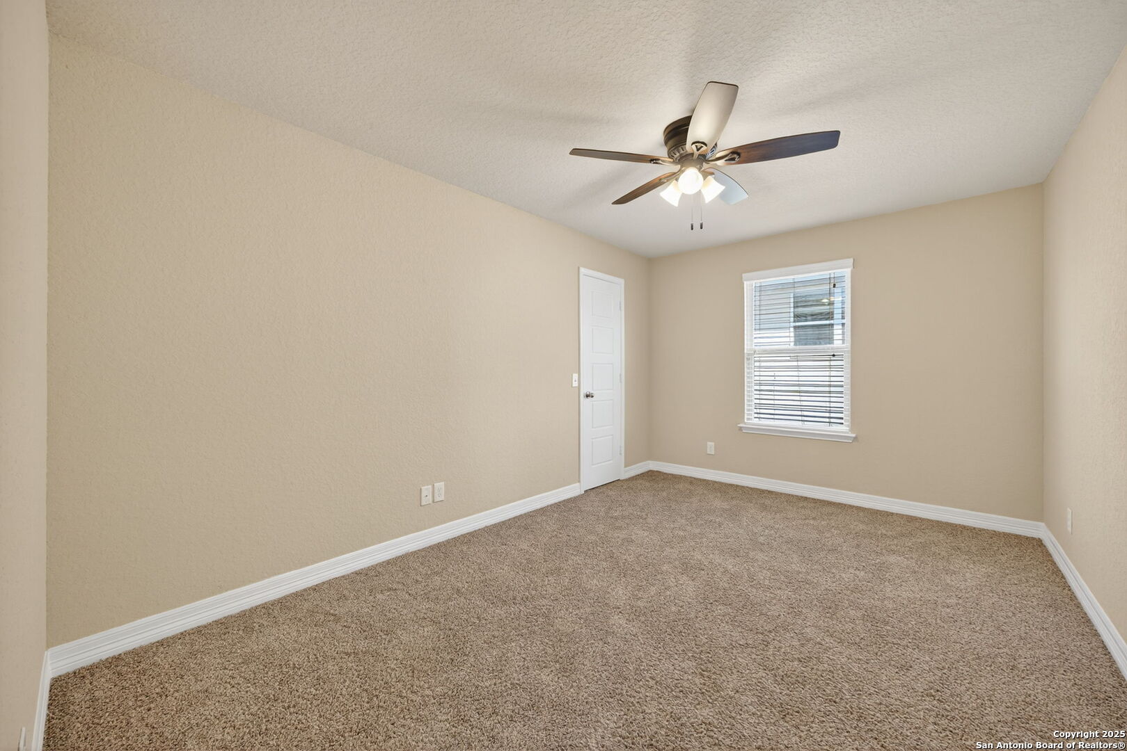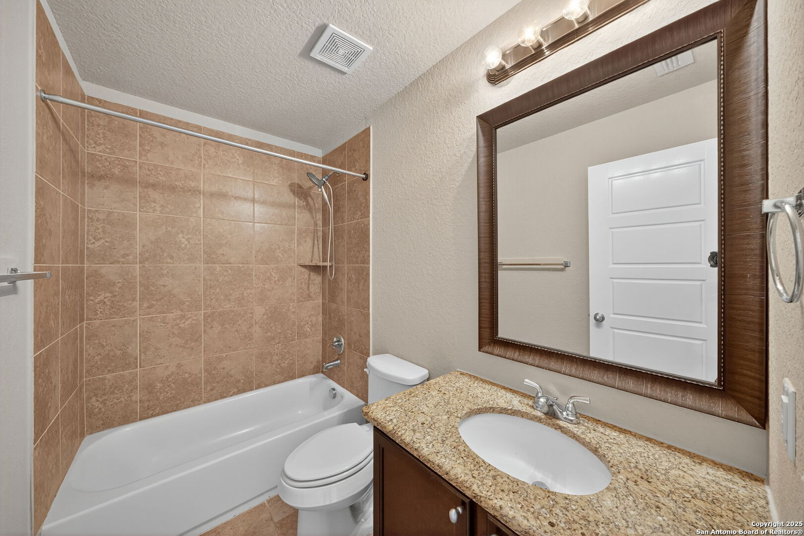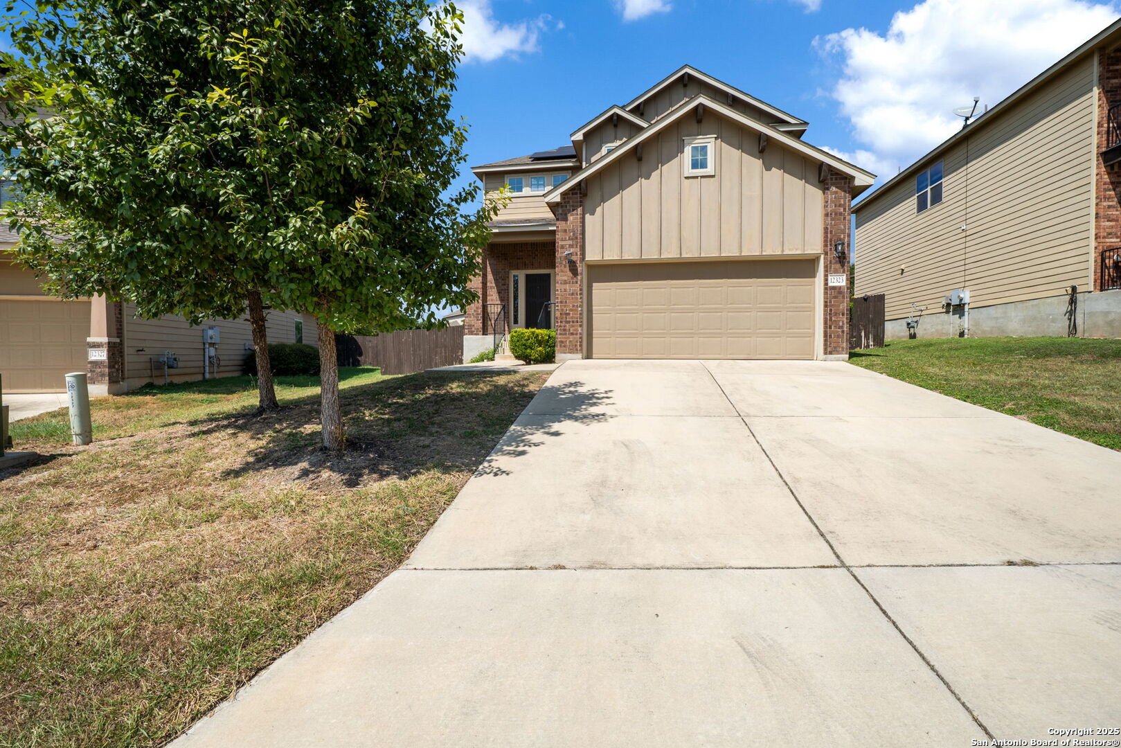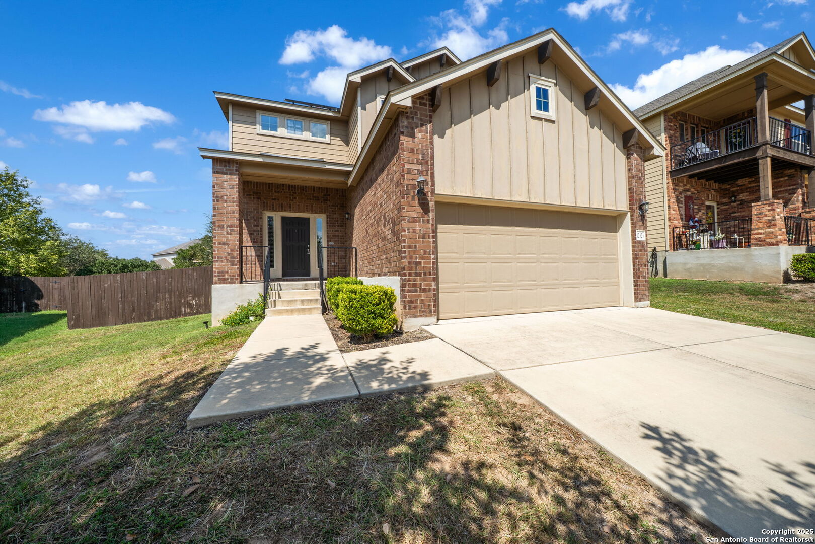 Beautiful two-story home located in the desirable Weston Oaks community. This 4-bedroom, 2-bath home features an open floor plan with tile flooring throughout the main areas and freshly painted interiors for a bright, welcoming feel. The kitchen is a chef's delight with stainless steel appliances, a spacious island, and gas cooking. Upstairs, you'll find a versatile loft that can serve as a second living area, game room, or office. The primary suite offers a walk-in closet, garden tub, separate walk-in shower, and dual vanities. The backyard includes a large patio, perfect for entertaining or relaxing outdoors. Conveniently located just a quick drive to Lackland AFB, shopping, dining, and major highways.