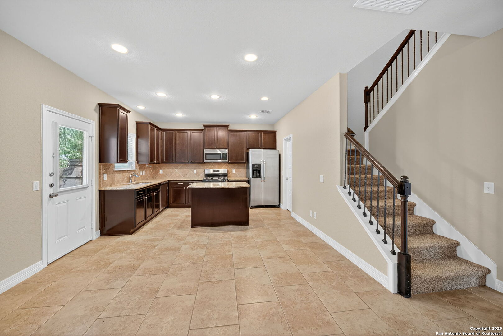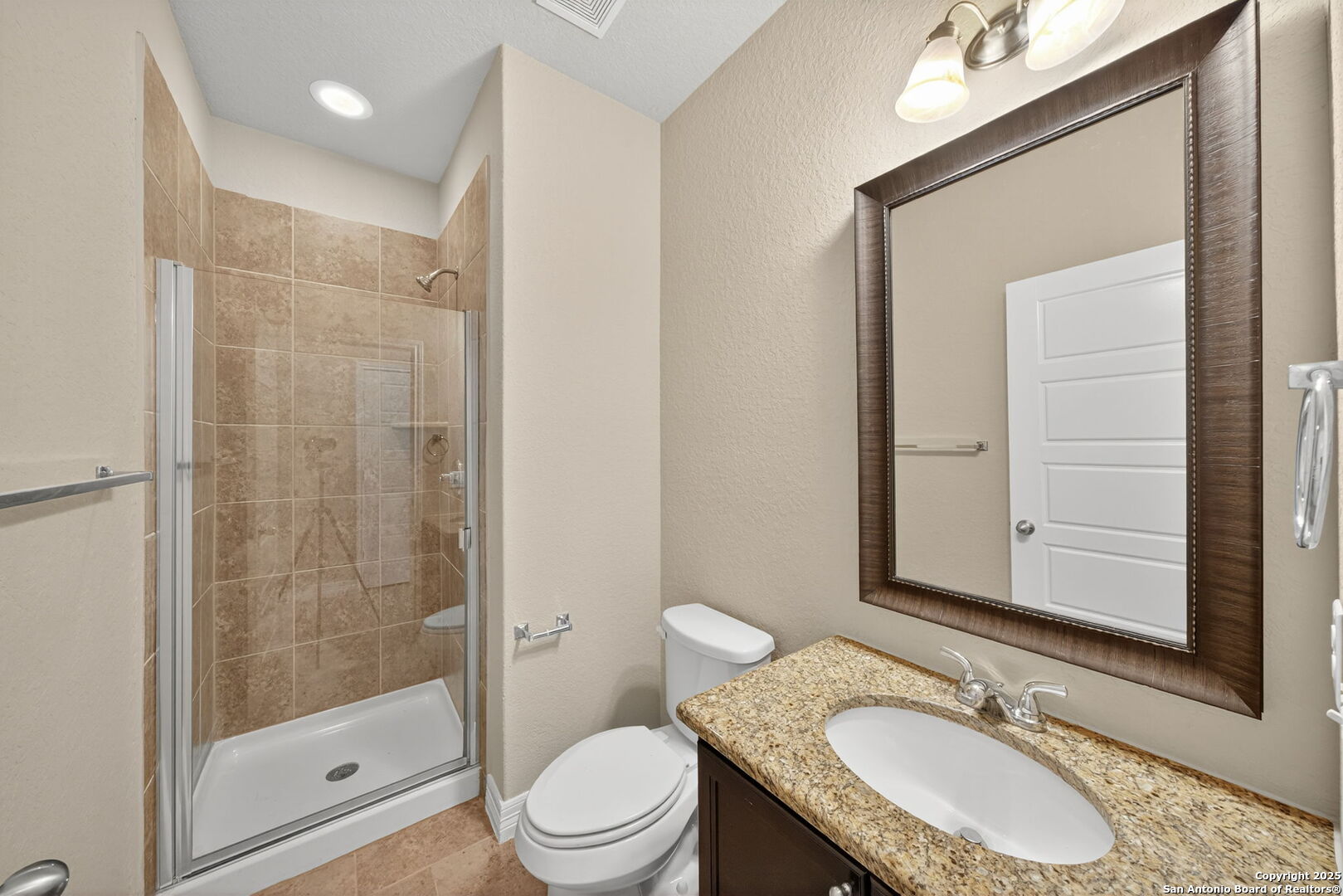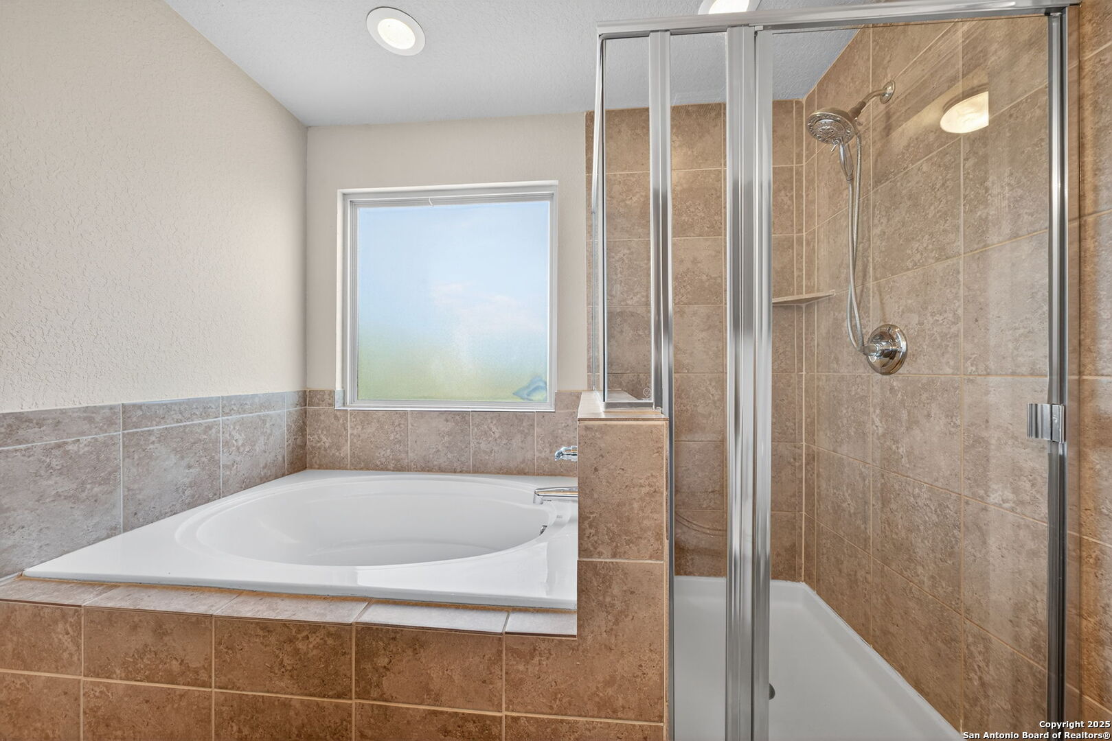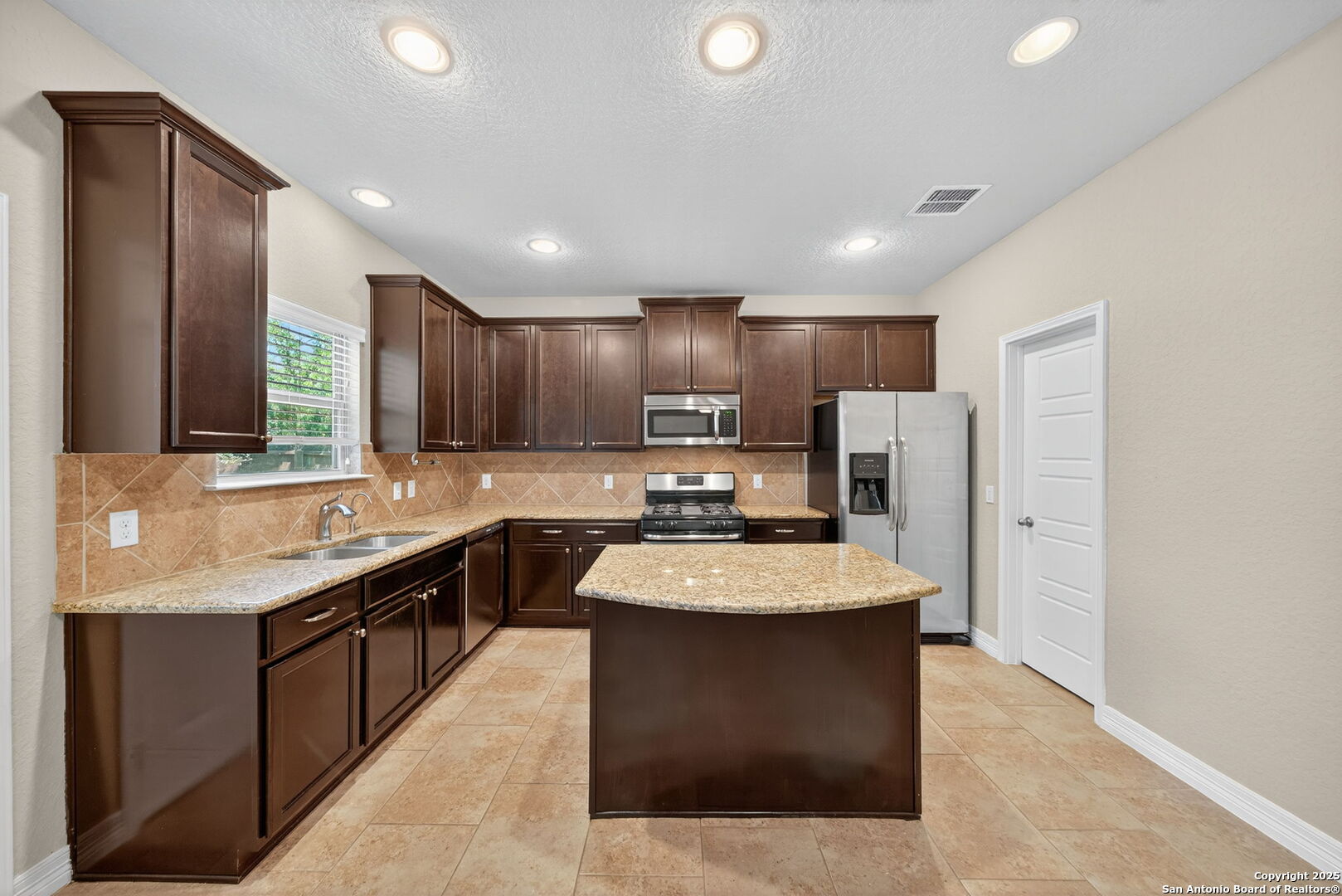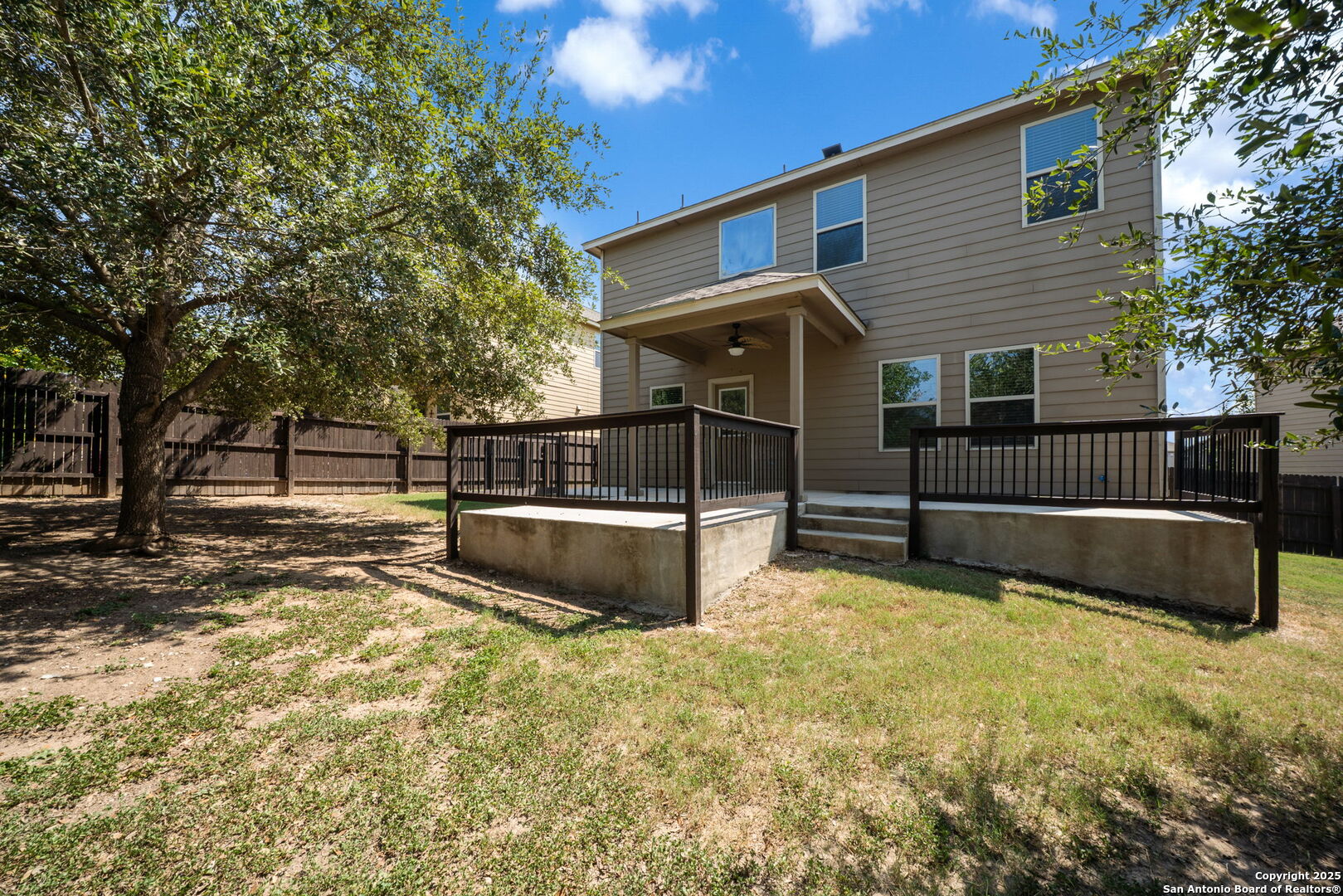 Beautiful two-story home located in the desirable Weston Oaks community. This 4-bedroom, 2-bath home features an open floor plan with tile flooring throughout the main areas and freshly painted interiors for a bright, welcoming feel. The kitchen is a chef's delight with stainless steel appliances, a spacious island, and gas cooking. Upstairs, you'll find a versatile loft that can serve as a second living area, game room, or office. The primary suite offers a walk-in closet, garden tub, separate walk-in shower, and dual vanities. The backyard includes a large patio, perfect for entertaining or relaxing outdoors. Conveniently located just a quick drive to Lackland AFB, shopping, dining, and major highways.