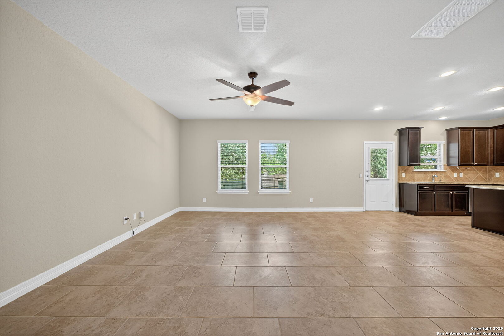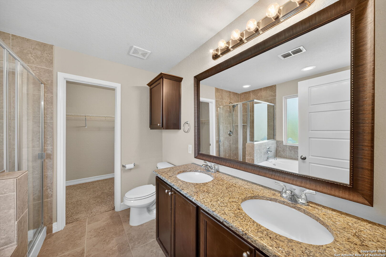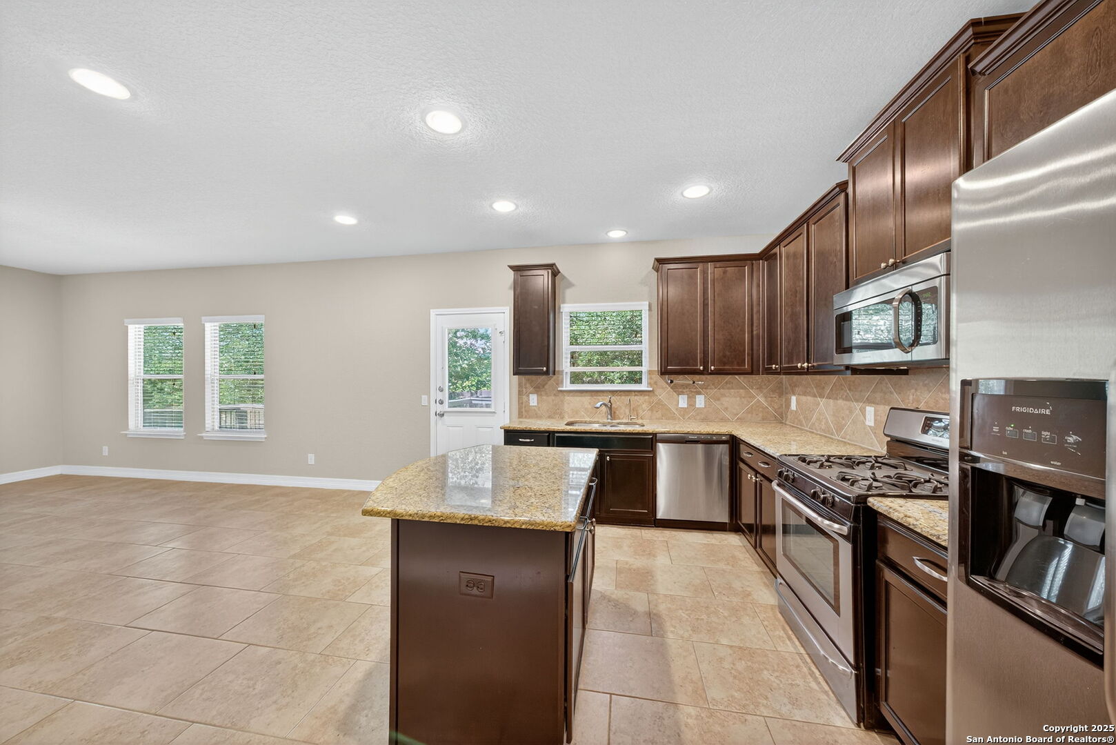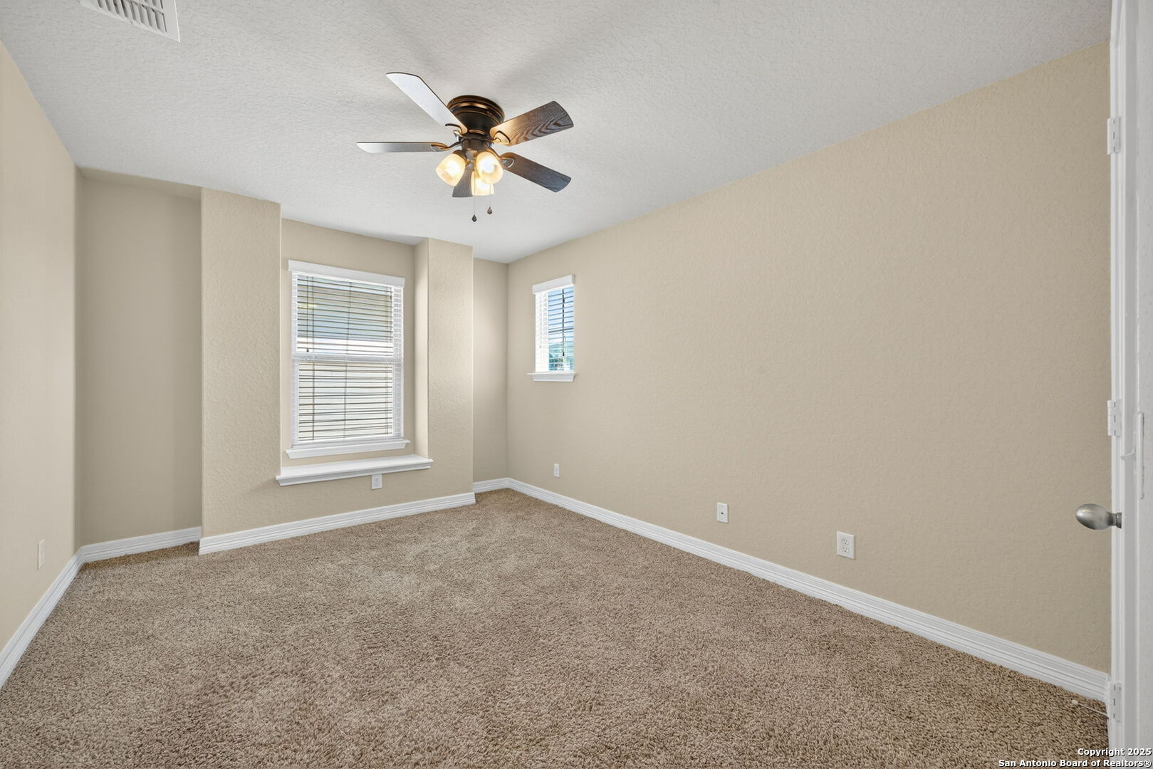 Beautiful two-story home located in the desirable Weston Oaks community. This 4-bedroom, 2-bath home features an open floor plan with tile flooring throughout the main areas and freshly painted interiors for a bright, welcoming feel. The kitchen is a chef's delight with stainless steel appliances, a spacious island, and gas cooking. Upstairs, you'll find a versatile loft that can serve as a second living area, game room, or office. The primary suite offers a walk-in closet, garden tub, separate walk-in shower, and dual vanities. The backyard includes a large patio, perfect for entertaining or relaxing outdoors. Conveniently located just a quick drive to Lackland AFB, shopping, dining, and major highways.