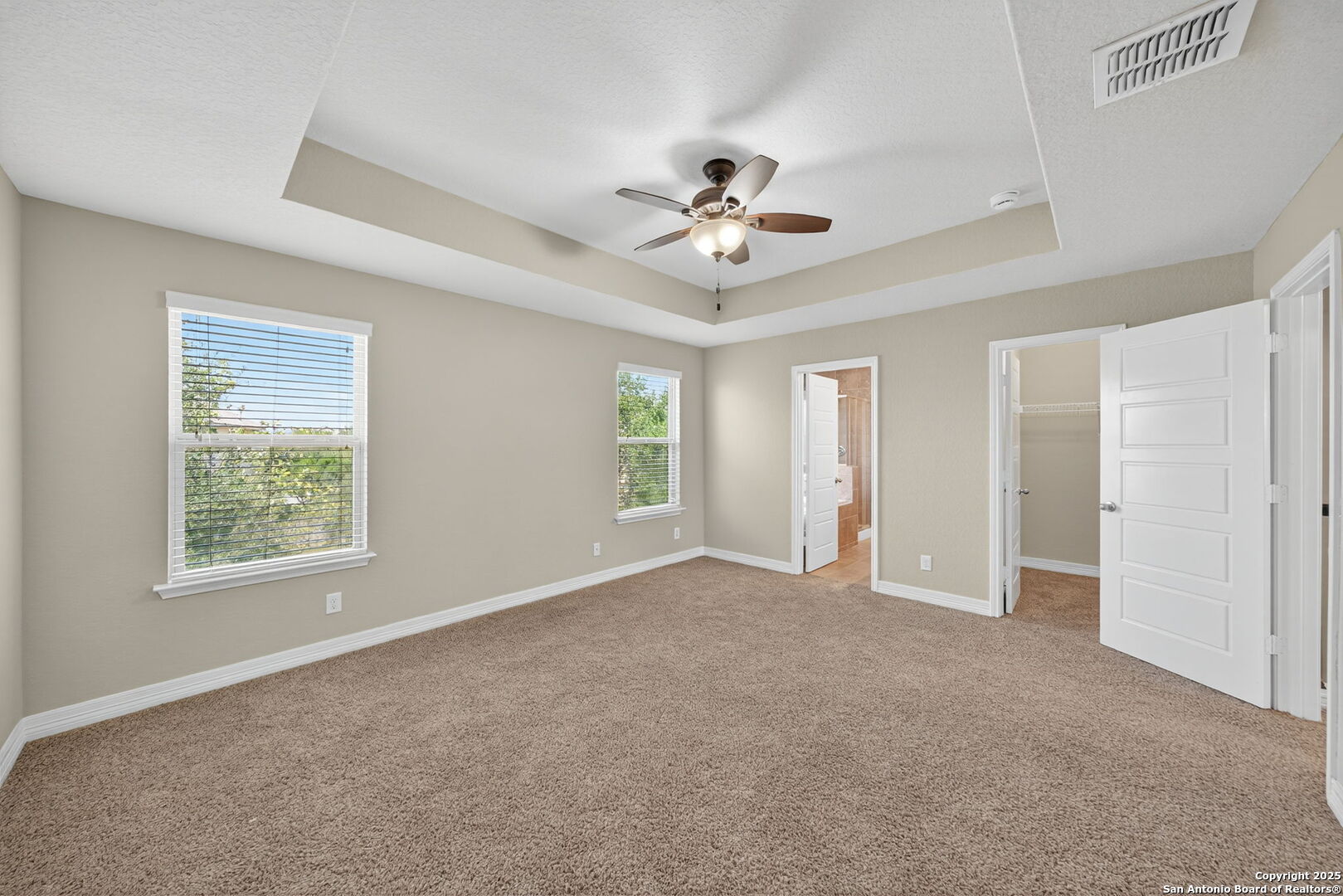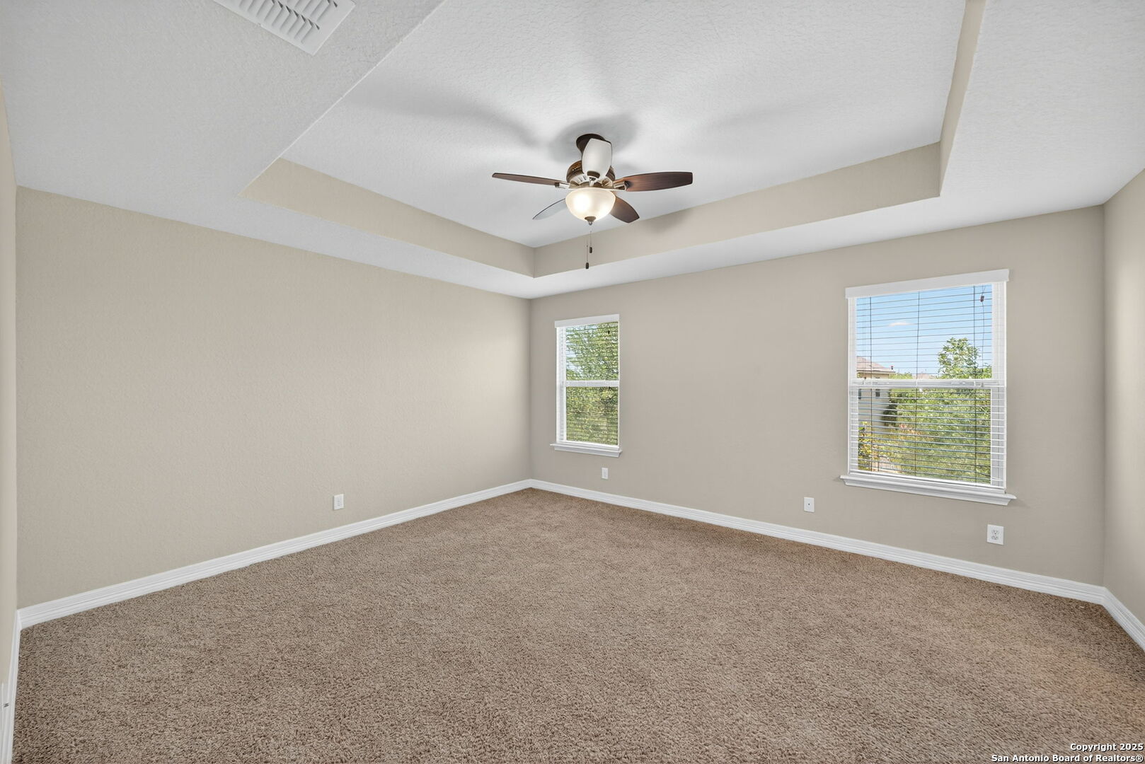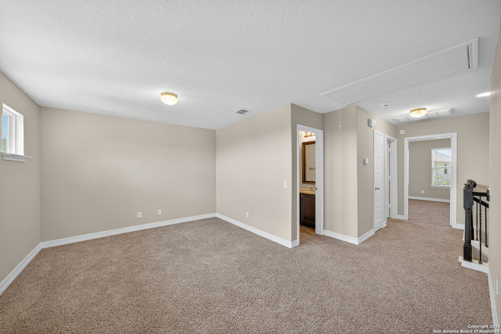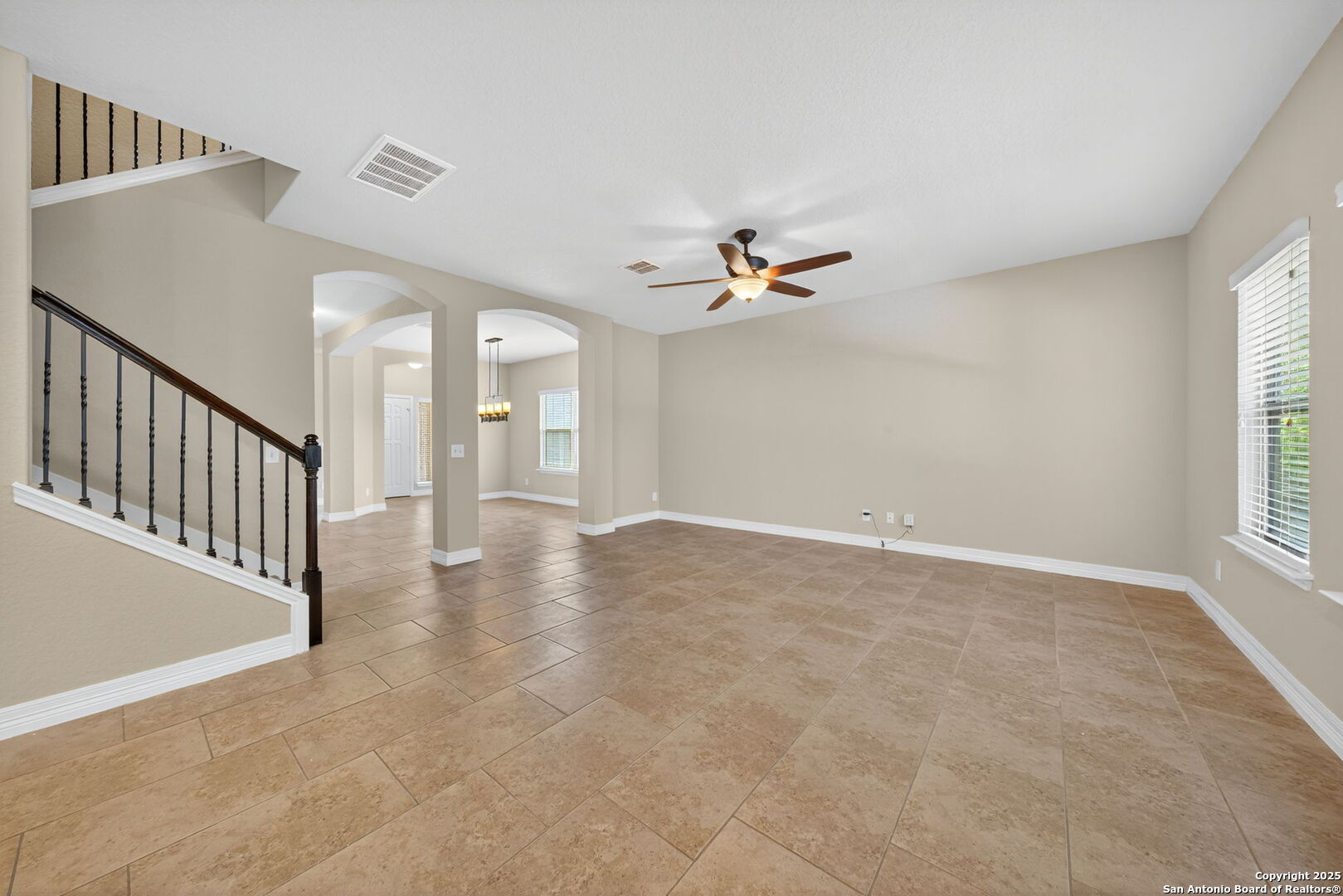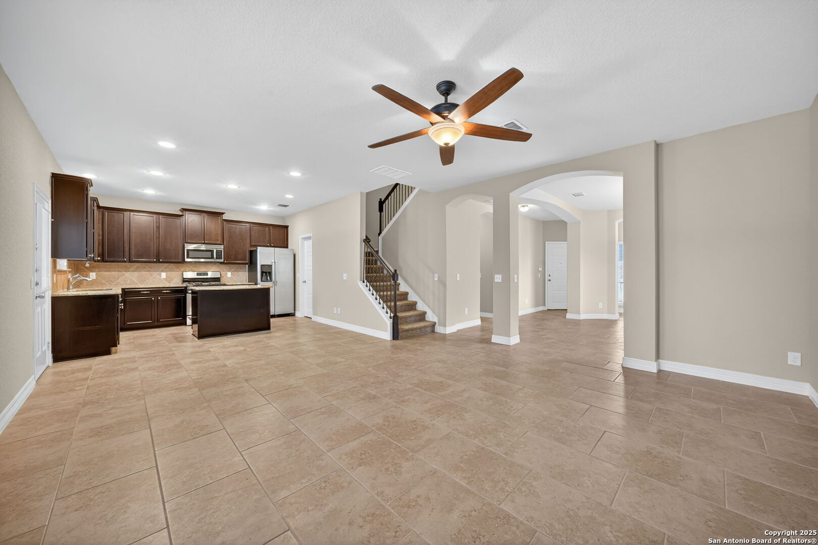 Beautiful two-story home located in the desirable Weston Oaks community. This 4-bedroom, 2-bath home features an open floor plan with tile flooring throughout the main areas and freshly painted interiors for a bright, welcoming feel. The kitchen is a chef's delight with stainless steel appliances, a spacious island, and gas cooking. Upstairs, you'll find a versatile loft that can serve as a second living area, game room, or office. The primary suite offers a walk-in closet, garden tub, separate walk-in shower, and dual vanities. The backyard includes a large patio, perfect for entertaining or relaxing outdoors. Conveniently located just a quick drive to Lackland AFB, shopping, dining, and major highways.