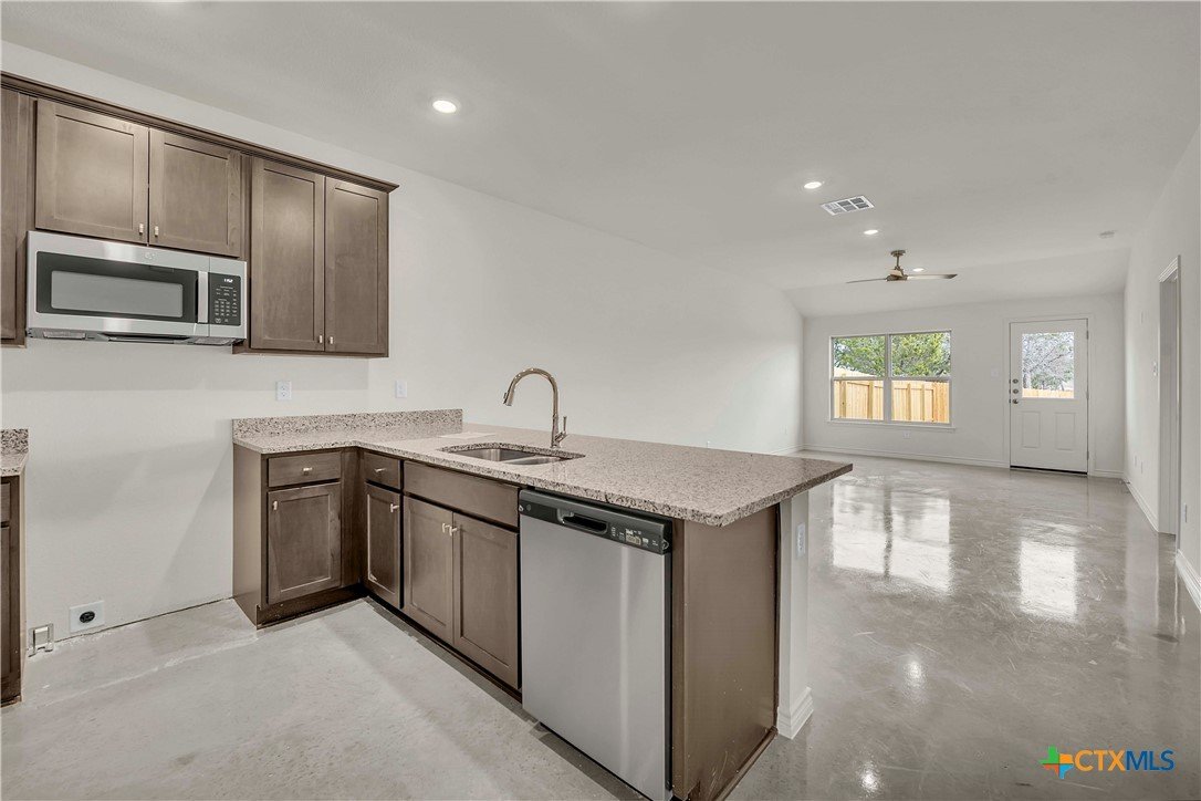 This duplex in the Freedom Ranch community of Copperas Cove offers a modern and low maintenance living experience. With a total of 2,348 square feet, each side (1,174 per side) of the duplex features 3 bedrooms and 2 bathrooms, providing comfortable accommodations for families or tenants. The sand & seal concrete floors are not only stylish but practical, ensuring easy cleaning & minimal upkeep. The kitchen and bathrooms showcase granite countertops throughout, adding a touch of elegance & durability. Equipped with stainless steel appliances, the kitchens are designed for both function and style. Outside, the property is fully landscaped with full sod and an irrigation system, making yard maintenance a breeze. This duplex is an excellent choice for those seeking a combination of modern amenities, durability, and convenience in a thriving community.