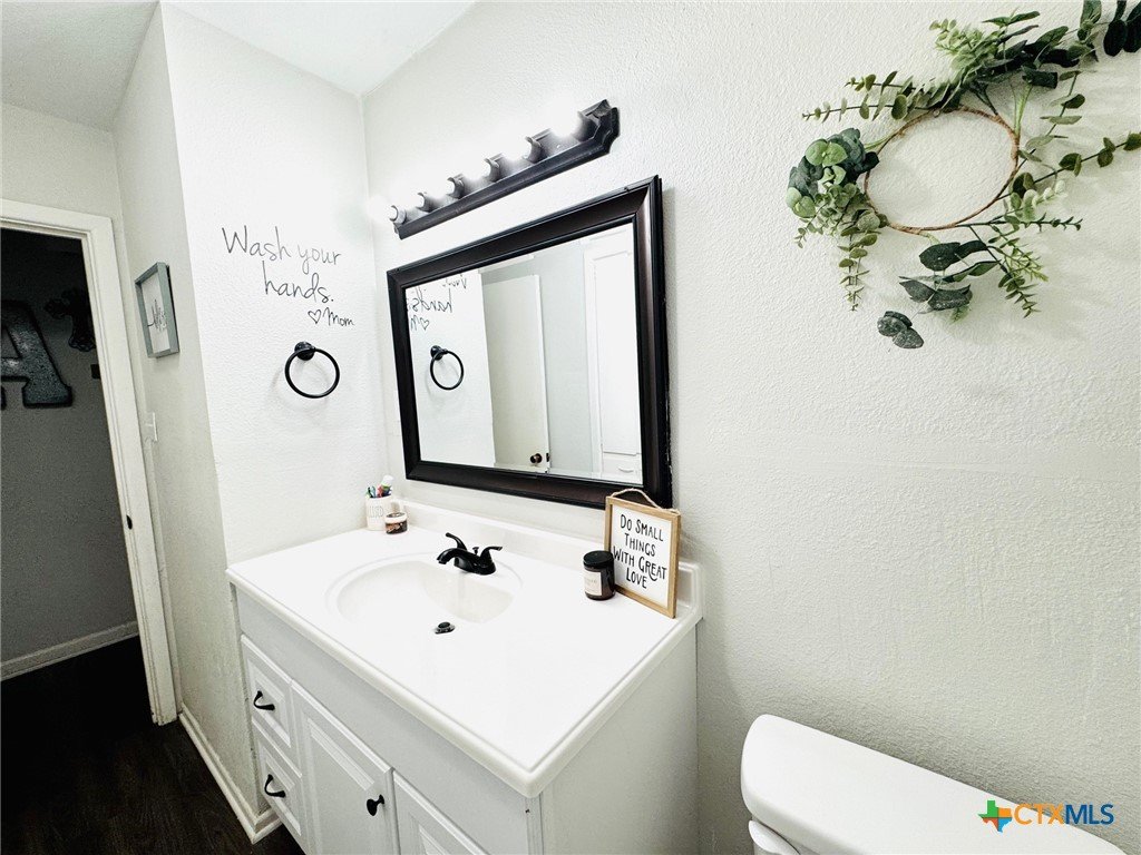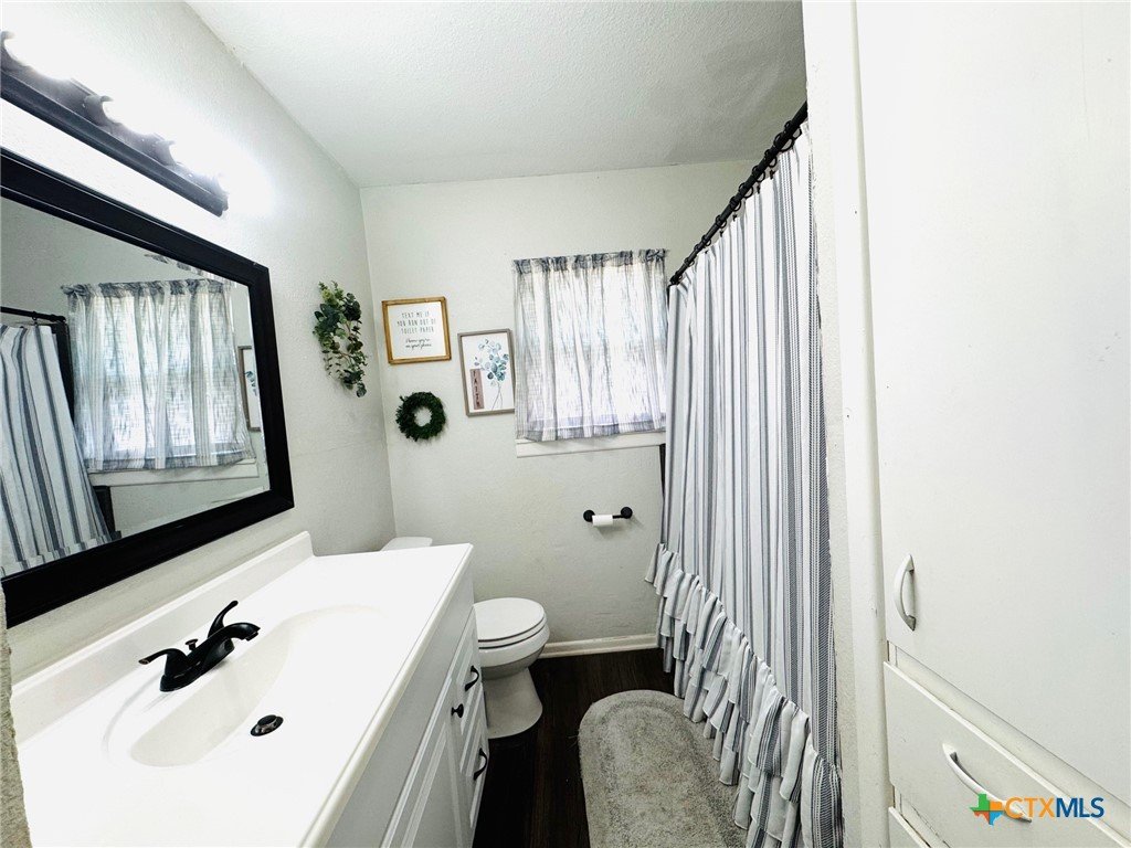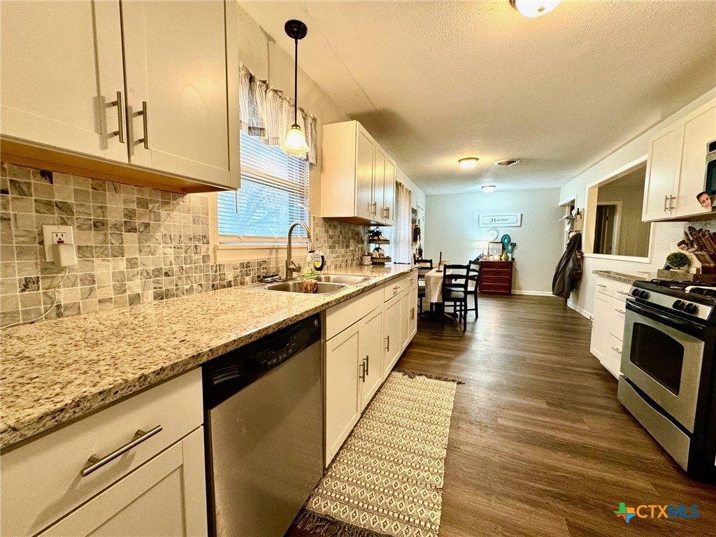 Welcome to this delightful 3-bedroom, 2-bath home situated on a picturesque corner lot. This property boasts a spacious den, perfect for relaxation or entertaining. The well-equipped kitchen features ample space, a gas stove, and a convenient dishwasher, making meal prep a breeze. The Primary suite is spacious. Primary bath with a single sink and a stand-up shower, while the additional bathroom offers a tub/shower combo with a single vanity, ideal for guests or family. The home is equipped with a gas heater and water heater for efficient living. Step outside to the beautiful backyard, where you might even catch a glimpse of deer stopping by for an occasional visit. The double car garage provides plenty of parking and leads to a versatile room, perfect for a man cave, craft room, or additional storage. Located conveniently close to the Gatesville Country Club and local schools, this home offers both comfort and convenience. Don’t miss your chance to make it your own!