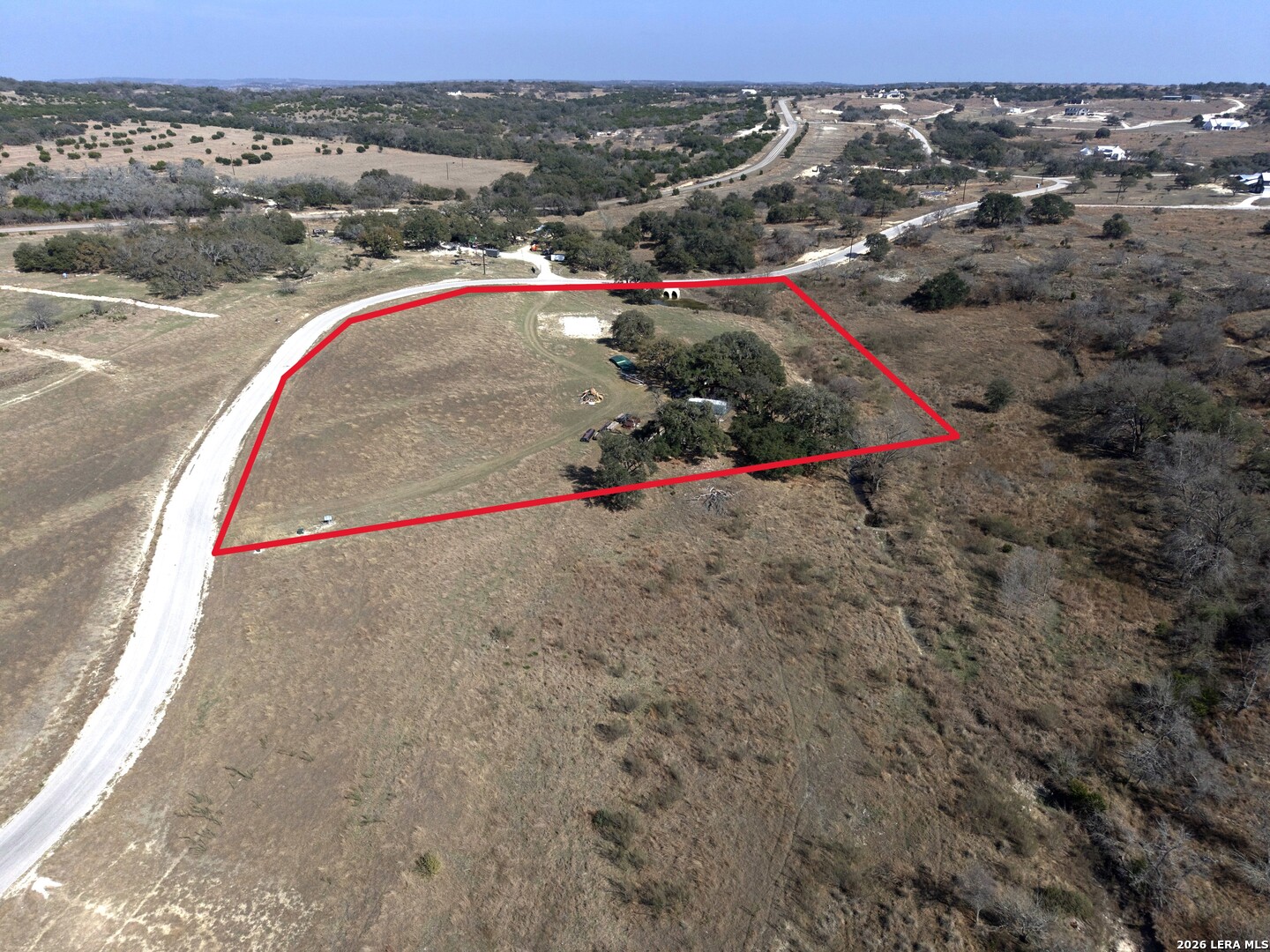 5.56-acre Hill Country homesite featuring multiple heritage oak trees, a seasonal creek, and a seasonal pond that is currently holding water despite ongoing drought conditions. The mostly level and cleared property offers excellent building sites with beautiful Hill Country views and abundant wildlife. Improvements include existing 400-amp PEC electric service, a 30x60 slab poured in 2025 for a future barn or workshop, and an original barn/cabin structure that could be restored or removed depending on the buyer's plans. Located just inside the gated entrance of the Albert 303 community for convenient access while maintaining privacy. The property is currently agricultural exempt through the community longhorn herd. Ideally situated with quick access to Albert, Stonewall, Blanco, and the Hill Country Wine Corridor. Enjoy nearby social gatherings, live music, and community events at the historic Albert Dance Hall. A rare opportunity to own acreage with mature oaks and existing infrastructure ready for your custom home and additional improvements.