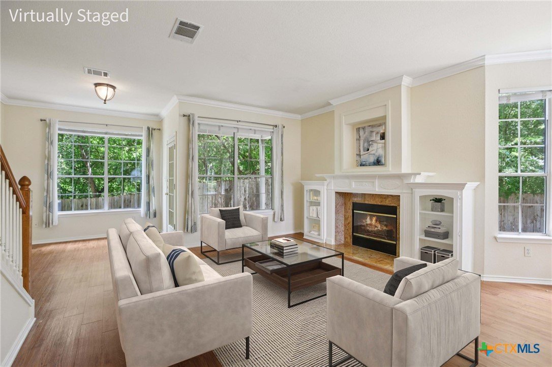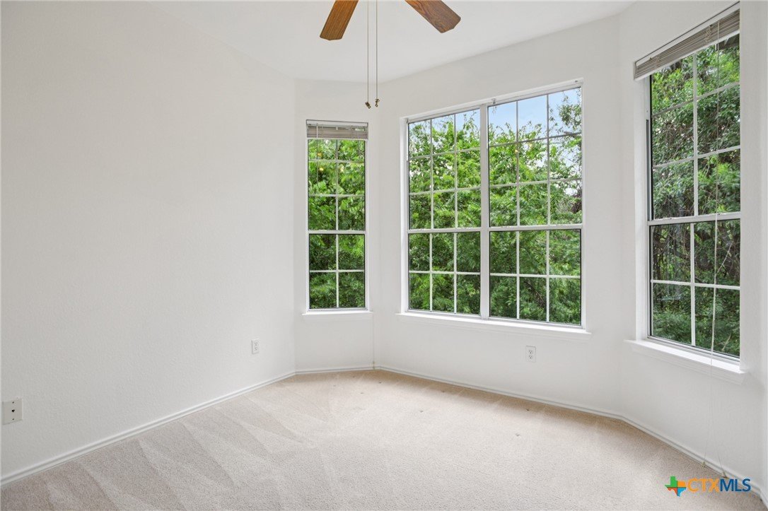 Private corner-unit condo in a quiet gated community! Enjoy the low-maintenance lifestyle of a condo without the hustle of a large, crowded complex. Tucked inside a residential neighborhood, this quiet gated community of just 60 units offers a peaceful, private feel. This premium corner unit is surrounded by HOA-maintained green space, offering added privacy and beautiful tree-lined views from nearly every window. Inside, the home is filled with natural light, thanks to bay windows in the kitchen, dining area, and two bedrooms. Some of the many updates include custom-built cabinetry around the fireplace, crown molding, hard flooring everywhere but in two bedrooms, a new HVAC in 2024, and new roofs on buildings and carports in the past four years. The community features a just refreshed pool and covered pool deck area - great for outdoor entertaining. Zoned to highly rated Round Rock ISD schools, with the elementary school just a short walk away. Located in Austin’s thriving tech corridor, you’re only about a mile from the new Apple campus and just 5 miles from The Domain’s extensive shopping, dining, and major employers!