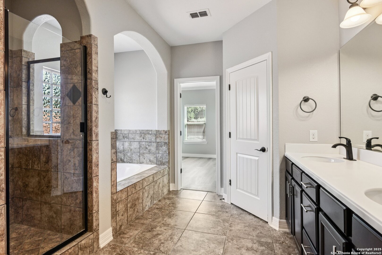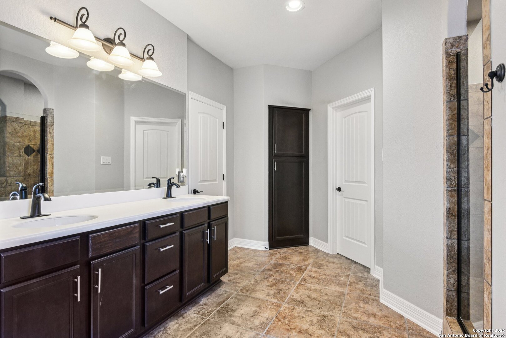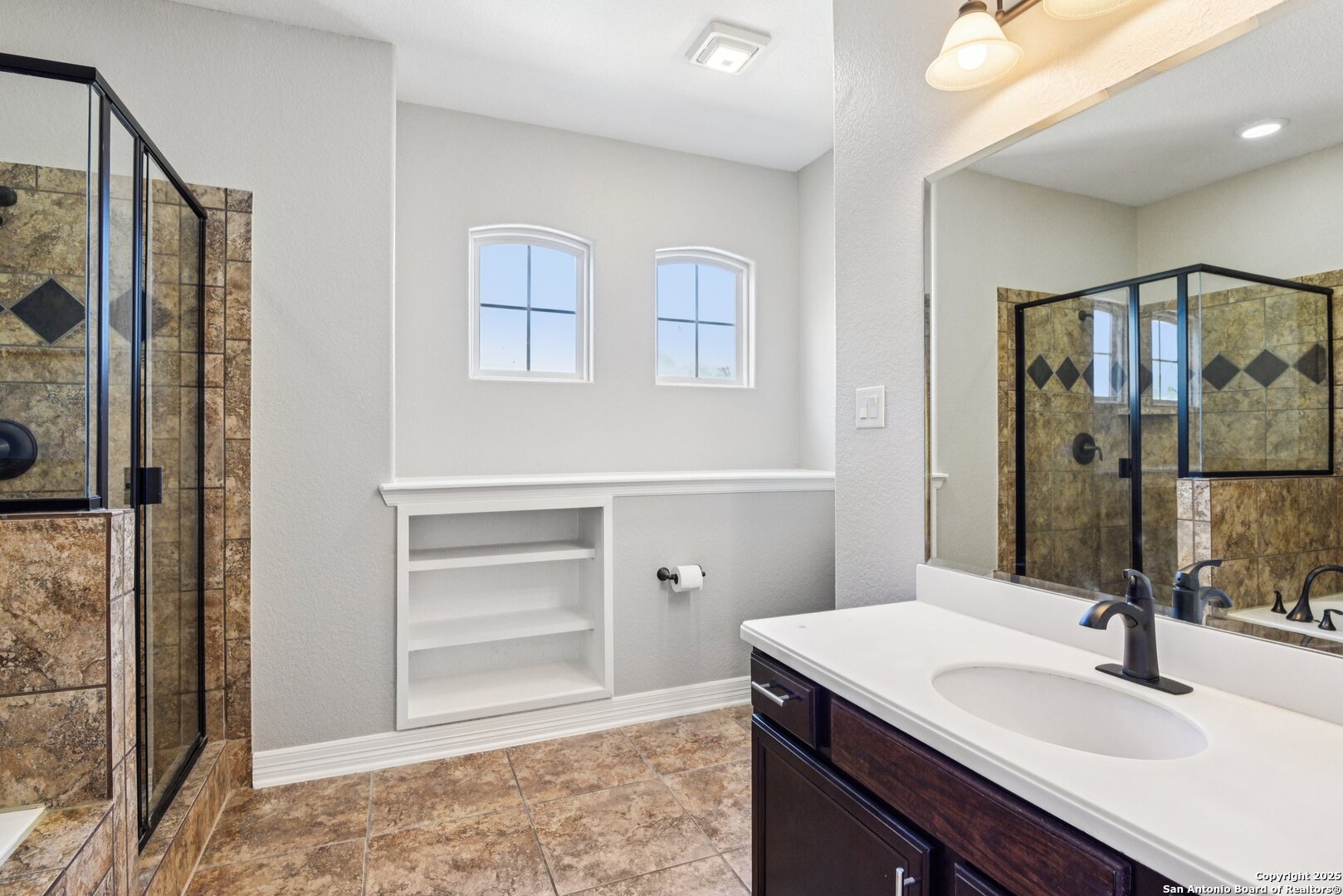 Welcome to your beautifully remodeled dream home in the highly sought-after Stillwater Ranch community! This stunning 4-bedroom, 3.5-bathroom residence offers the perfect blend of modern elegance and comfortable living. Conveniently located just minutes from premier shopping, dining, and entertainment options, with quick and easy access to both Loop 1604 and Highway 151. Step inside and be captivated by the fresh and inviting interior, featuring fresh paint throughout and stylish new plumbing and electrical fixtures. Brand-new vinyl plank flooring graces the main living areas, creating a seamless and sophisticated flow. The heart of this home is the spacious island kitchen, a true chef's delight. It comes fully equipped with new stainless steel appliances, gleaming granite countertops, and an abundance of cabinet and counter space. A unique and highly desirable feature of this home is the dual primary bedrooms, one conveniently located downstairs and the other upstairs. The main-level primary suite is a private oasis, boasting a luxurious full bathroom with a double vanity, a relaxing separate tub and shower, and a generously sized walk-in closet. The second-floor primary suite offers its own private retreat with a full ensuite bathroom, also featuring a double vanity and a separate tub and shower. The upstairs living space continues to impress with two spacious secondary bedrooms that share a full bathroom, perfect for family or guests. A large game room provides a versatile space that can be tailored to your needs, whether it's a playroom, media room, or home office. Step outside to your private, privacy-fenced backyard, where an oversized covered patio awaits. This fantastic outdoor living space is perfect for entertaining guests, enjoying a quiet morning coffee, or simply relaxing in the shade on a sunny day. Enjoy the beautiful community center only blocks away.