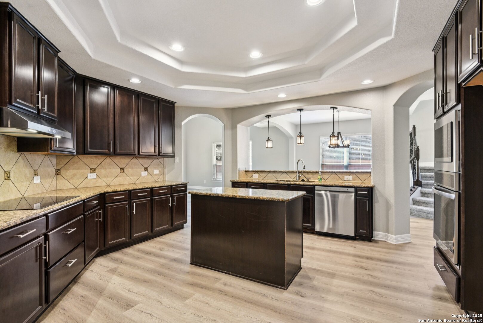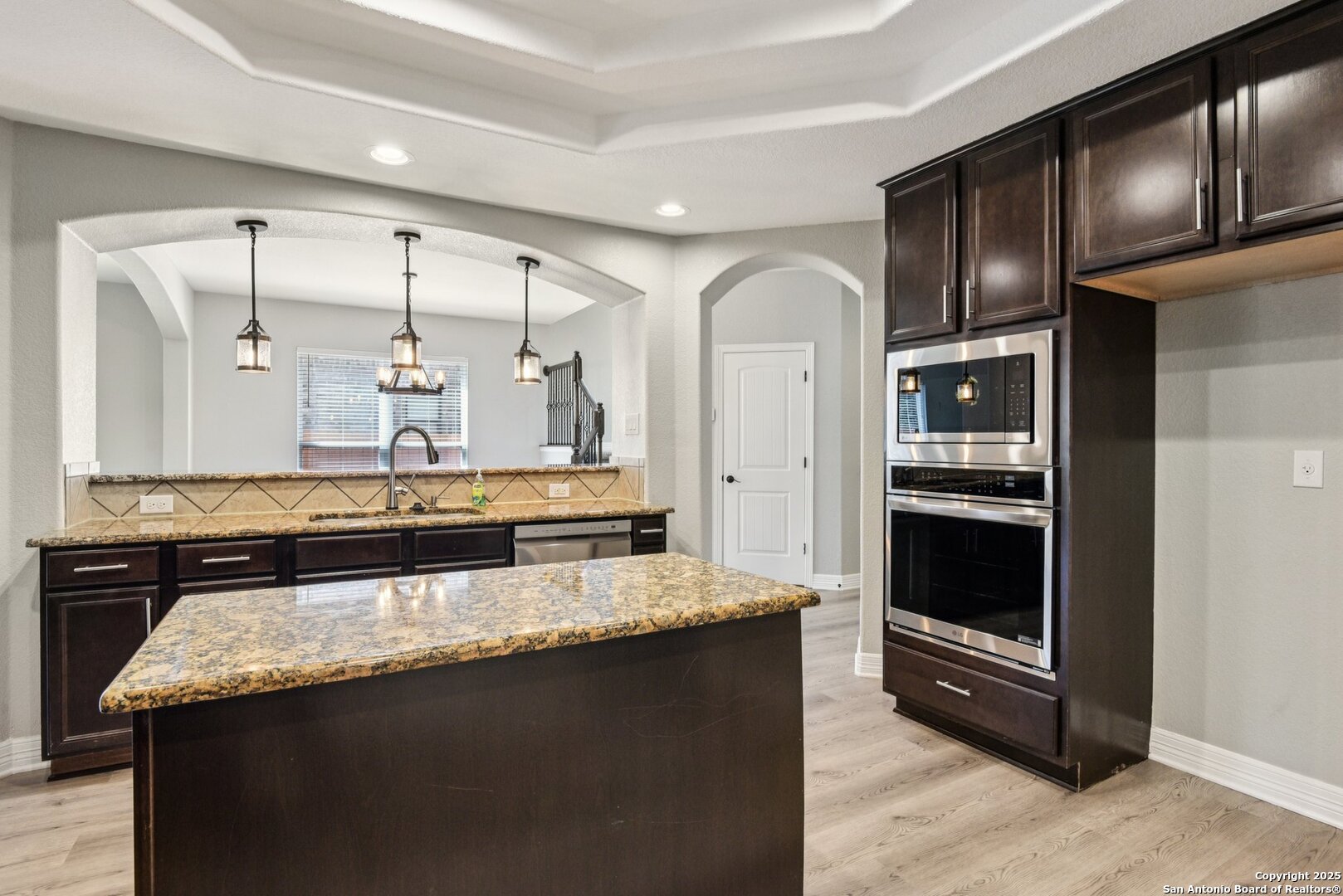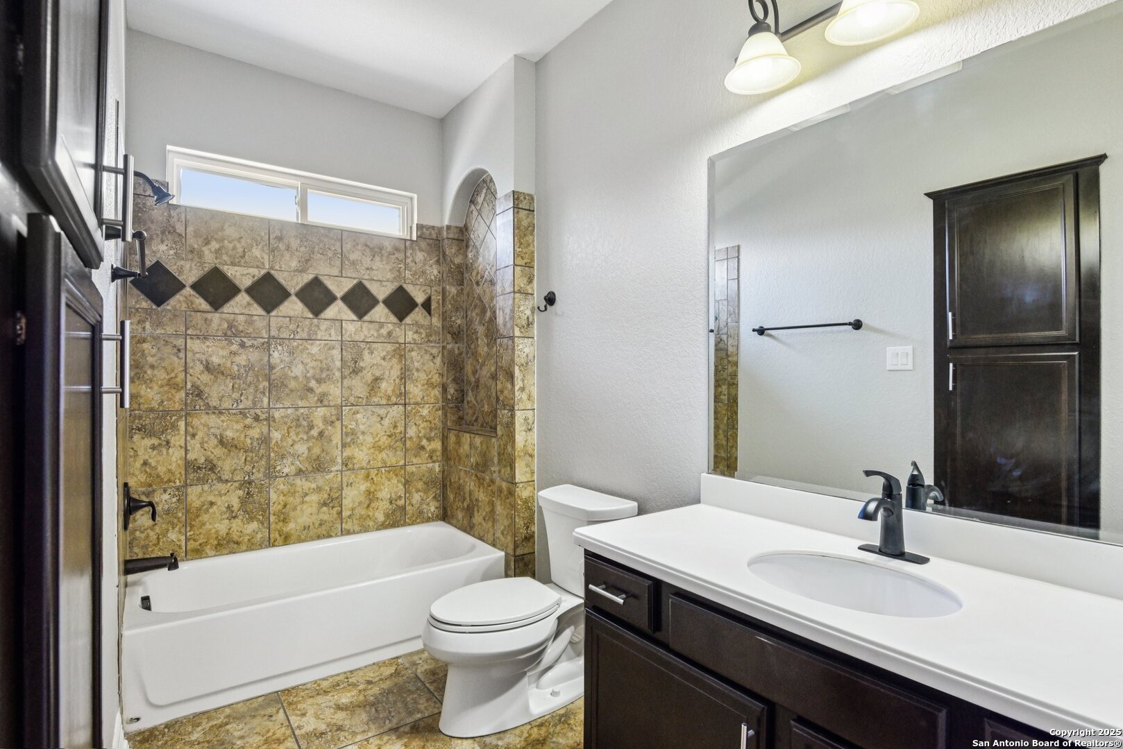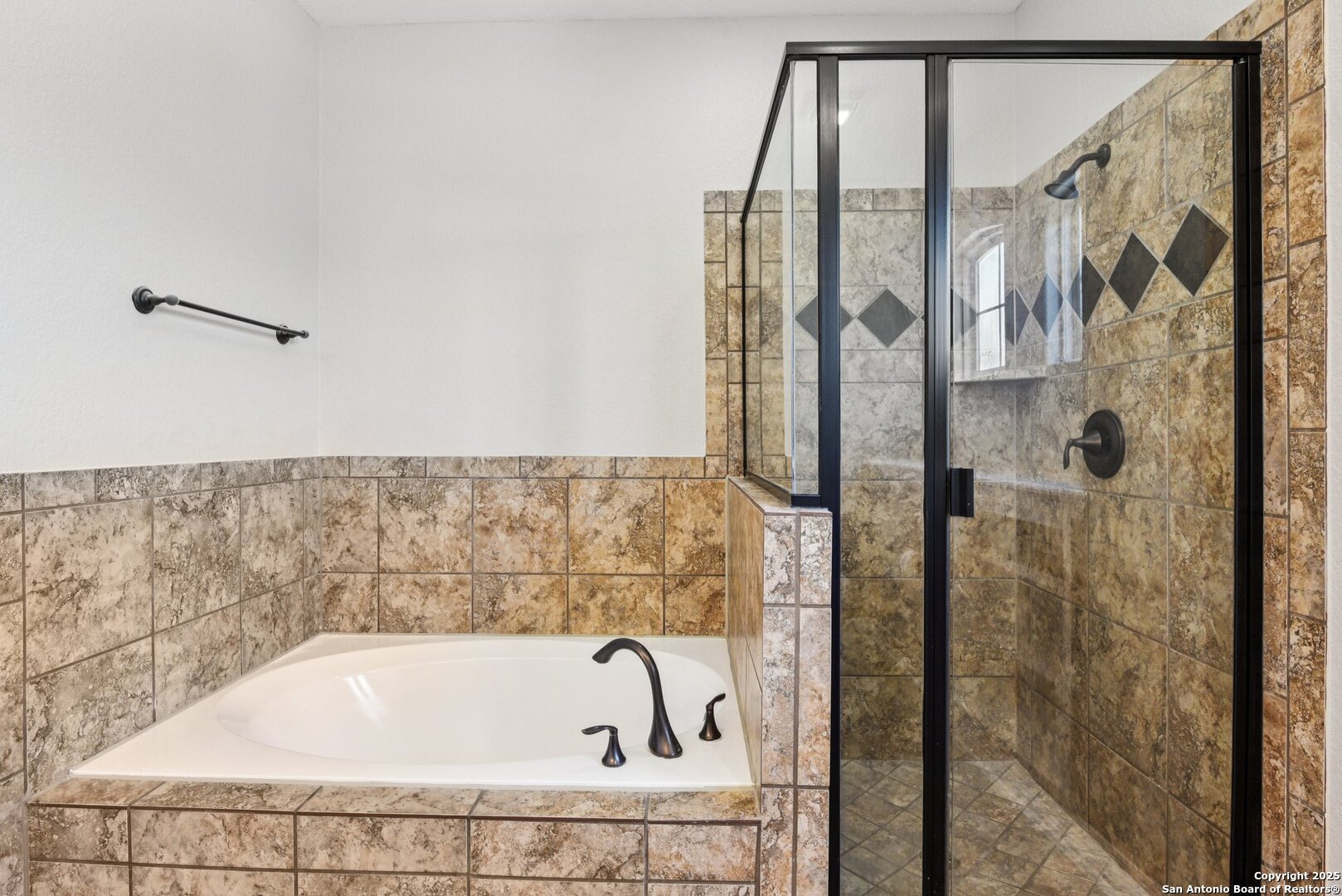Welcome to your beautifully remodeled dream home in the highly sought-after Stillwater Ranch community! This stunning 4-bedroom, 3.5-bathroom residence offers the perfect blend of modern elegance and comfortable living. Conveniently located just minutes from premier shopping, dining, and entertainment options, with quick and easy access to both Loop 1604 and Highway 151. Step inside and be captivated by the fresh and inviting interior, featuring fresh paint throughout and stylish new plumbing and electrical fixtures. Brand-new vinyl plank flooring graces the main living areas, creating a seamless and sophisticated flow. The heart of this home is the spacious island kitchen, a true chef's delight. It comes fully equipped with new stainless steel appliances, gleaming granite countertops, and an abundance of cabinet and counter space. A unique and highly desirable feature of this home is the dual primary bedrooms, one conveniently located downstairs and the other upstairs. The main-level primary suite is a private oasis, boasting a luxurious full bathroom with a double vanity, a relaxing separate tub and shower, and a generously sized walk-in closet. The second-floor primary suite offers its own private retreat with a full ensuite bathroom, also featuring a double vanity and a separate tub and shower. The upstairs living space continues to impress with two spacious secondary bedrooms that share a full bathroom, perfect for family or guests. A large game room provides a versatile space that can be tailored to your needs, whether it's a playroom, media room, or home office. Step outside to your private, privacy-fenced backyard, where an oversized covered patio awaits. This fantastic outdoor living space is perfect for entertaining guests, enjoying a quiet morning coffee, or simply relaxing in the shade on a sunny day. Enjoy the beautiful community center only blocks away.