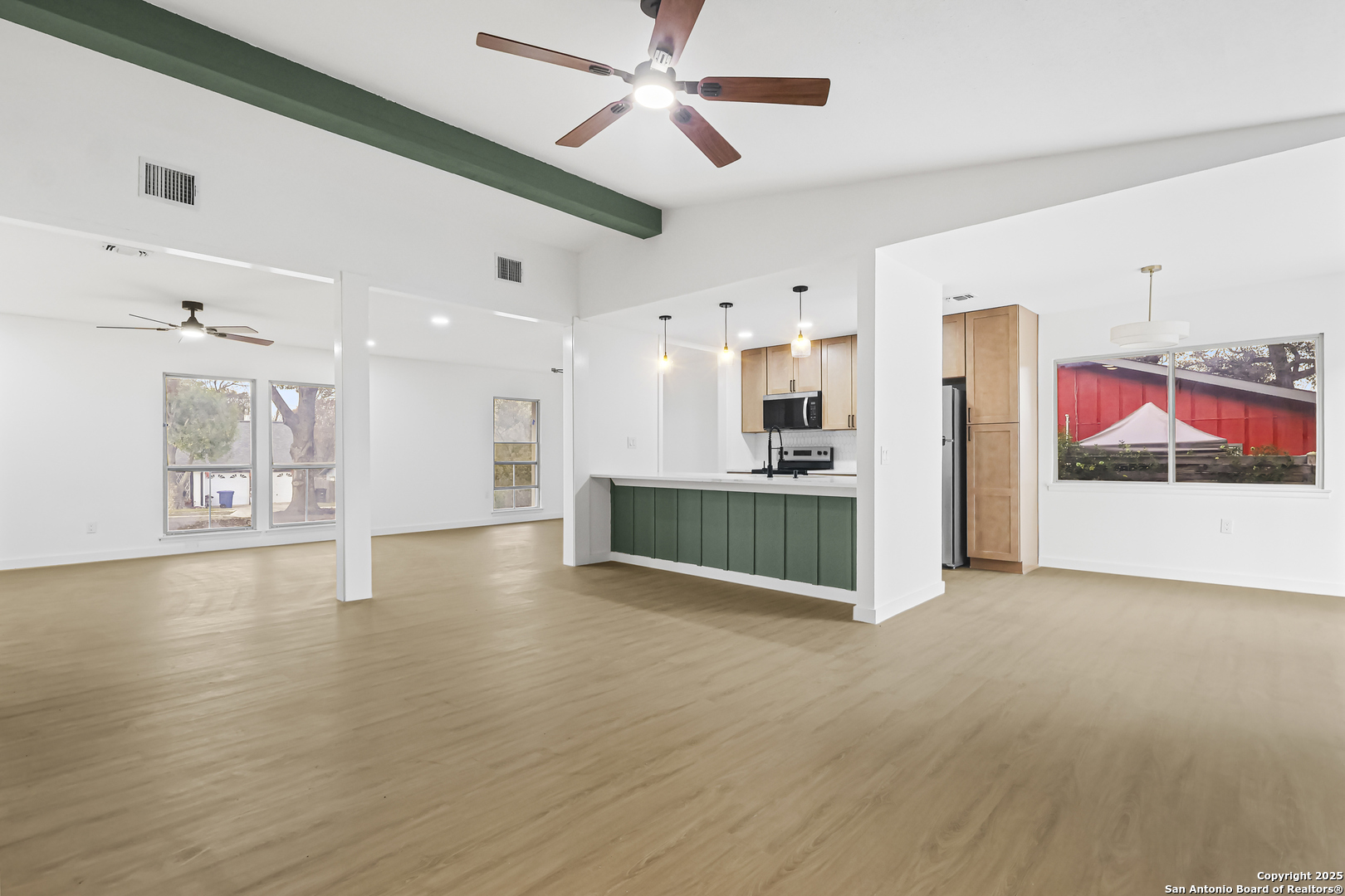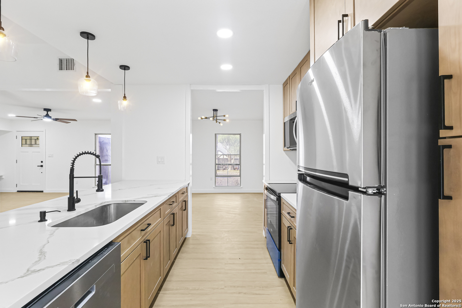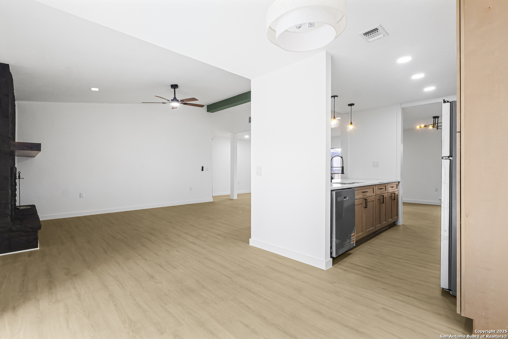 Welcome Home to 12411 Bret Springs St! This beautifully newly renovated 3-bedroom, 2-bath home offers modern comfort, clean lines, and a functional layout in an established Northeast San Antonio neighborhood. Step inside to a bright, open floor plan featuring durable luxury vinyl plank flooring throughout (no carpet), fresh neutral finishes, and a cozy fireplace that anchors the main living space. The updated kitchen opens seamlessly to the living and dining areas-perfect for entertaining or everyday living-and features ample cabinetry, modern fixtures, and a clean, contemporary design. All bedrooms are generously sized, with updated bathrooms showcasing stylish finishes and modern fixtures. Additional highlights include ceiling fans throughout, a spacious 2-car garage, and an inviting backyard with room to relax, garden, or host guests. Prime Location: Conveniently located near NEISD schools, this home offers easy access to Loop 1604, I-35, and major commuting routes. Enjoy close proximity to shopping, dining, parks, and everyday conveniences, all while being tucked into a quiet residential neighborhood. Move-in ready, thoughtfully updated, and well-located-this home is a must-see.