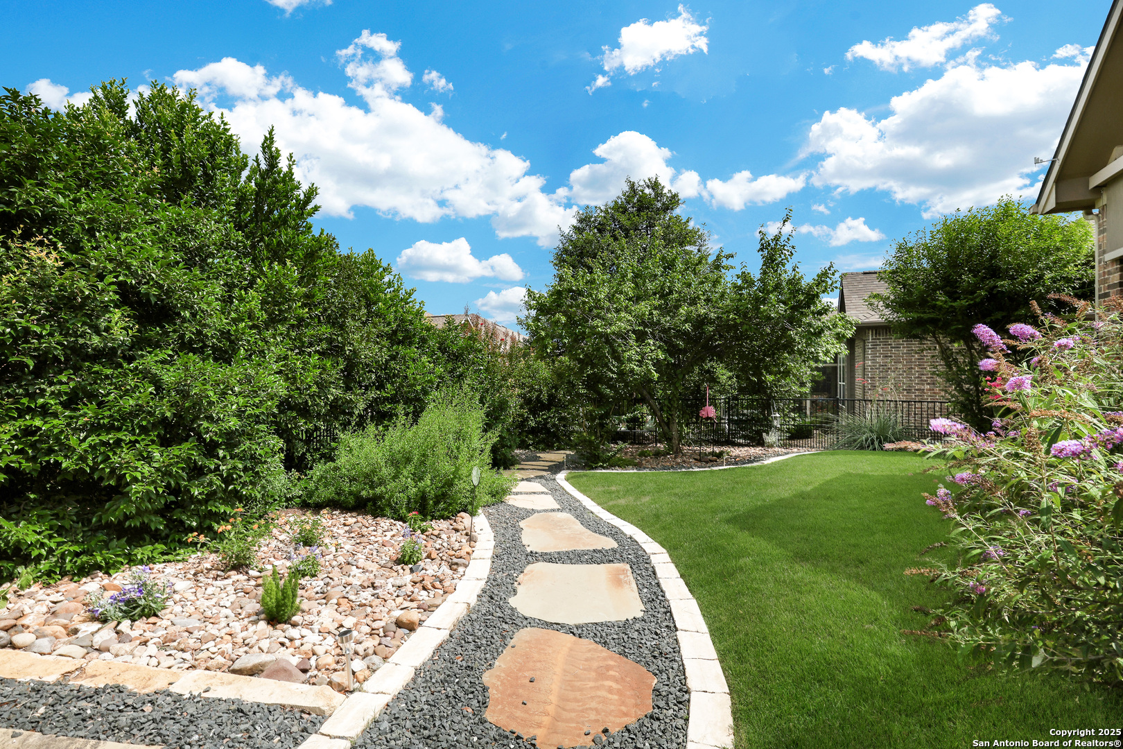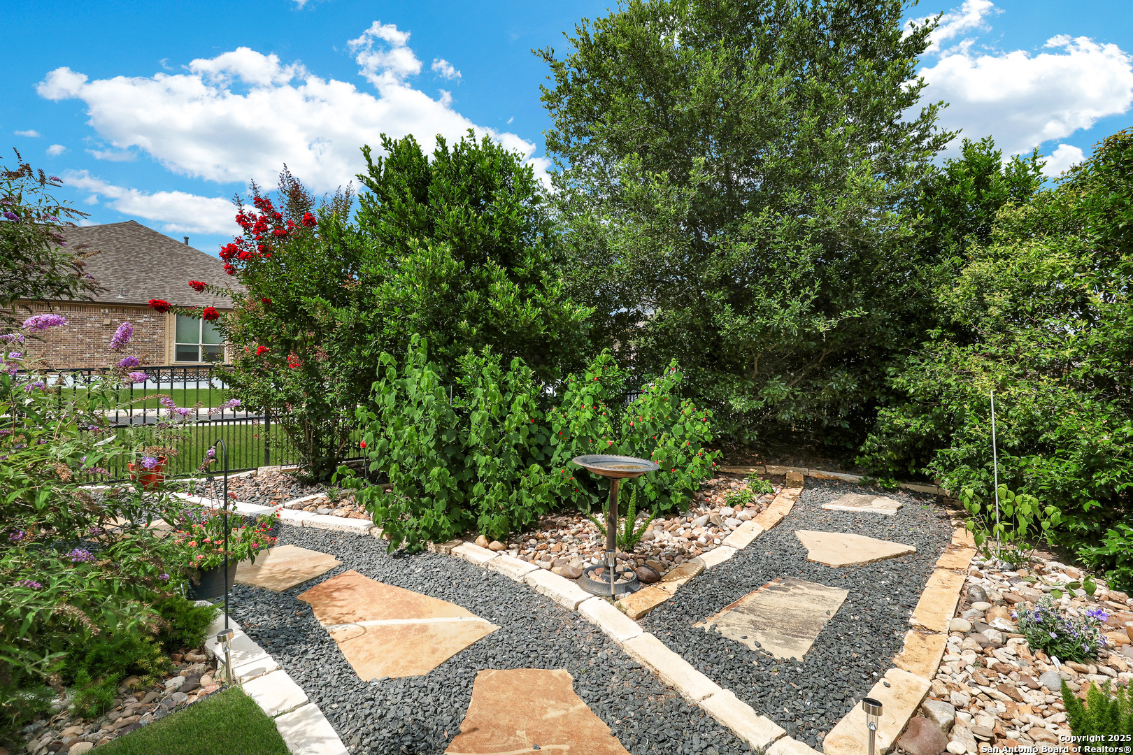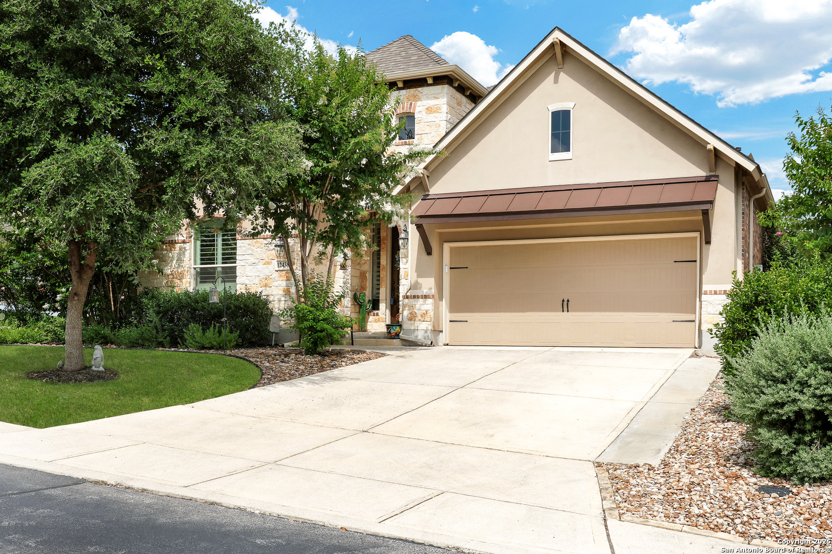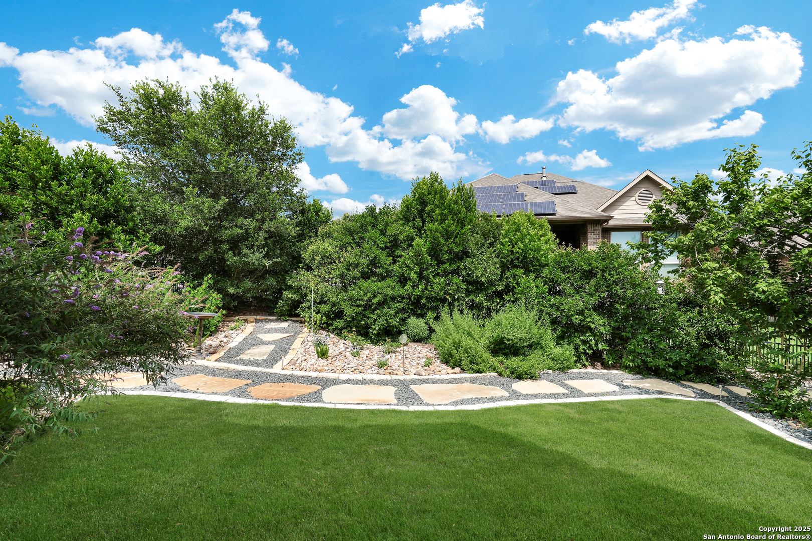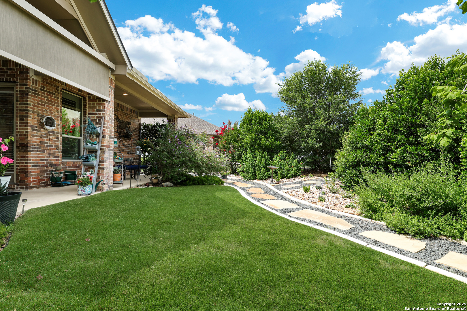 IMAGINE living at 12438 Suncatcher in Hill Country Retreat, a gated 55+ community! Just IMAGINE sipping your coffee while listening to the birds chirping and enjoying the serenity of the exceptionally private parklike backyard that has been professionally landscaped with lush Zoysia grass and quaint flagstone pathways! IMAGINE cooking a beautiful meal for guests in the epicurean kitchen featuring TONS of cabinet and counter space, a double door pantry and equipped with stainless steel appliances including a GAS cooktop, built-in oven & microwave (March 2024) and new dishwasher (as of June 2025)! The wide open floor plan has tile flooring in all the public areas, 4" plantation shutters and soaring ceilings! The spacious family room boasts a clean, efficient gas fireplace! IMAGINE relaxing in the spacious primary suite after a long day. The primary bath features a garden tub perfect for soaking away stress, an XL walk in shower with a bench, dual vanities and a HUGE walk-in closet! The secondary bedrooms each have a walk-in closet, and one features three walls of built-ins doubling as a study/office or craft room! The utility room is MASSIVE and features rich wood cabinets & a folding counter! The garage has built-in storage, new components (as of May 2025) and a water softener! IMAGINE not having to worry about maintenance! The roof was replaced in 2023! The HVAC system was replaced in 2024! The water heater was replaced in May 2025! Just IMAGINE living in Hill Country Retreat where you will find an active social community with something for everyone! There are swimming pools, tennis courts, pickle ball courts, a fitness center, a beautiful clubhouse with a library, billiards, a card room for Texas Hold 'Em, a craft room, meeting rooms, even ping pong! There is a garden club, monthly karaoke, a theater club, a travel club, a cruise club, a chess club, a golf cart club, a Footloose dance club, a line dancing club, a wine club, and a book club! Or you can play water volleyball, bocci ball, bunco, work on your yoga practice or get your fitness on at an aerobics class! AND if that isn't enough there are miles of walking/running trails and LOTS of other neighborhood activities! You don't have to IMAGINE it - you can EXPERIENCE it! Come and visit this MUST SEE property TODAY!