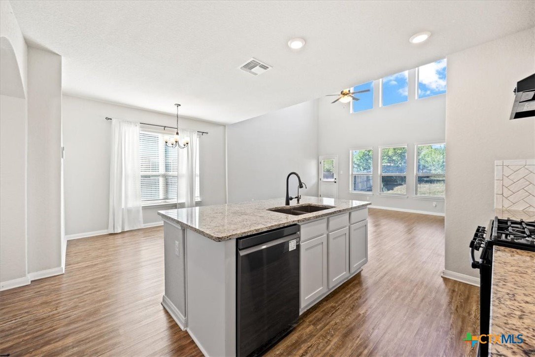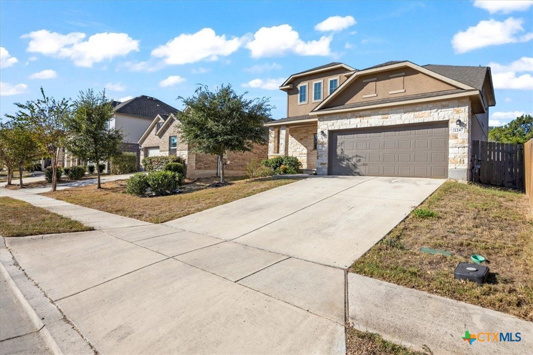Experience Hill Country living in the desirable Meyer Ranch community! This beautifully designed home offers an open-concept layout with high ceilings, abundant natural light, and thoughtful details throughout. The spacious kitchen features granite countertops, a large island, breakfast bar, and stainless-steel appliances, perfect for everyday meals or entertaining guests. The primary suite, conveniently located on the main level, includes a stylish walk-in shower, dual vanity, and generous walk-in closet. Designed for comfort and practicality, the home also features natural gas utilities and ample storage throughout. Enjoy resort-style community amenities such as a clubhouse, fitness center, dog park, playground, BBQ area, and scenic walking and biking trails, all just minutes from shopping, dining, and top-rated schools. Come see why Meyer Ranch is one of New Braunfels’ most sought-after neighborhoods!