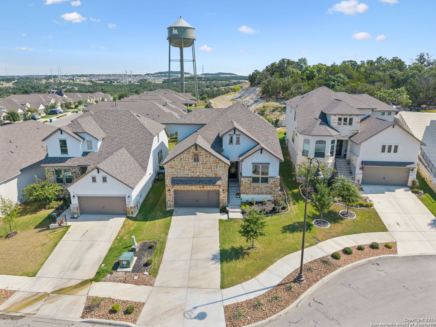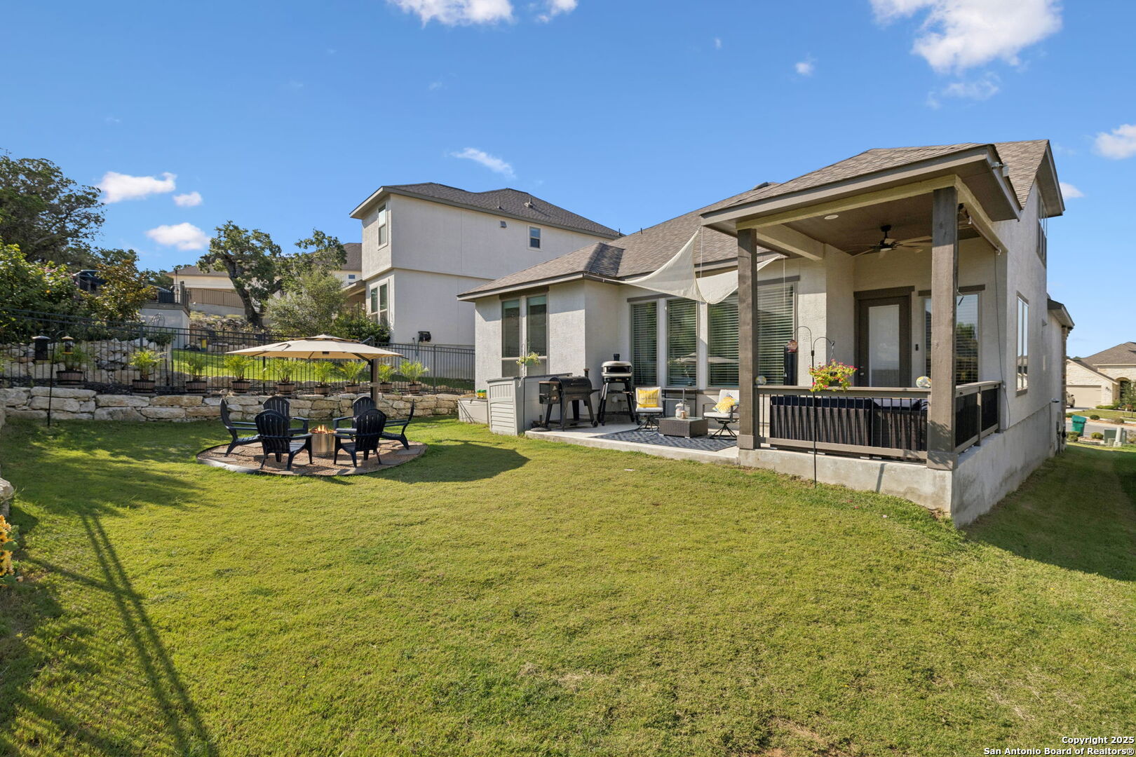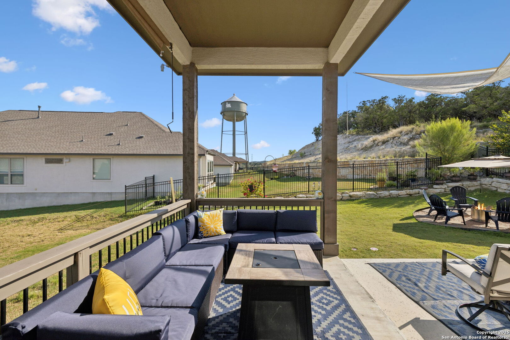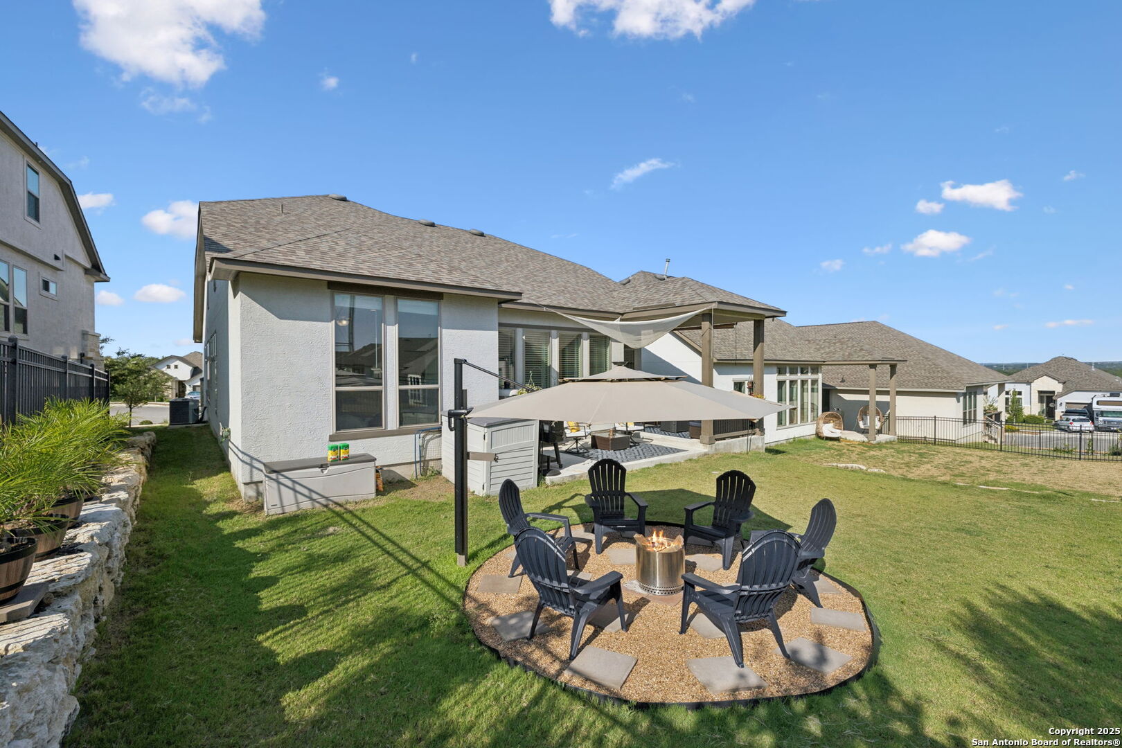 OPEN HOUSE: Saturday, November 15th 12p-3p. Exquisite Move-In Ready Home in the Prestigious Esperanza Community of Boerne. Step into elevated Hill Country living with this stunning 4-bedroom, 3-bathroom residence, perfectly crafted for those with discerning taste. Nestled within the award-winning, master-planned community of Esperanza, this meticulously maintained home exudes elegance and comfort, showcasing model home-quality finishes throughout. From the moment you enter, you're welcomed by an open-concept floorplan featuring wood-look tile flooring in the entry, formal dining, and expansive family room. Soaring ceilings enhance the sense of space and grandeur in the main living areas, primary suite, and covered back patio, while oversized windows flood the home with natural light, creating an airy and inviting ambiance. The gourmet kitchen is a chef's dream-equipped with a gas cooktop, stainless steel appliances, tall custom cabinetry, extended countertops, and a generous pantry-perfect for both everyday living and entertaining in style. Retreat to the luxurious primary suite, a private haven bathed in light, offering serene views and spa-inspired comfort. Additional premium features include a tankless water heater, water softener, extended covered patio with a built-in firepit, ideal for relaxing or hosting under the Texas sky. As a resident of Esperanza, you'll enjoy world-class amenities including a resort-style clubhouse, pool, lazy river, splash pad, state-of-the-art fitness center, miles of scenic trails, dog park, sand volleyball and pickleball courts, and a vibrant calendar of community events. Families will also appreciate the on-site elementary school, just a short walk away. This home is a rare opportunity to experience luxury, lifestyle, and location-a must-see masterpiece ready to welcome you home.