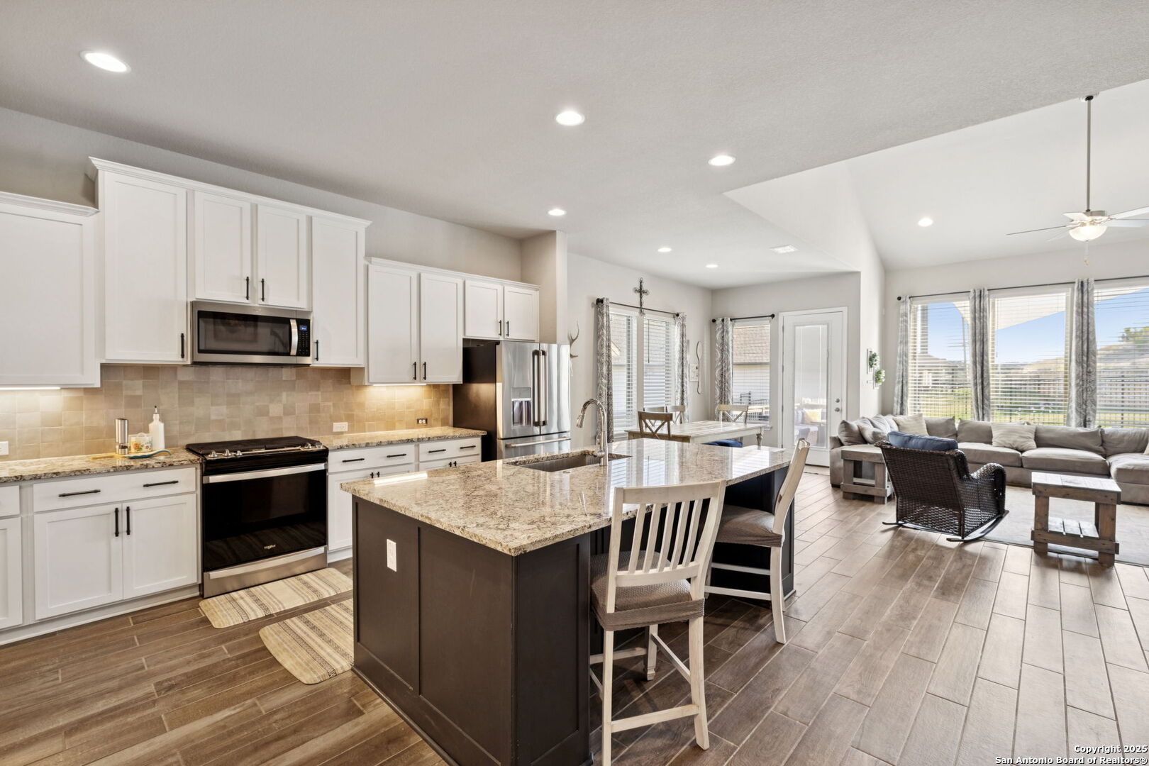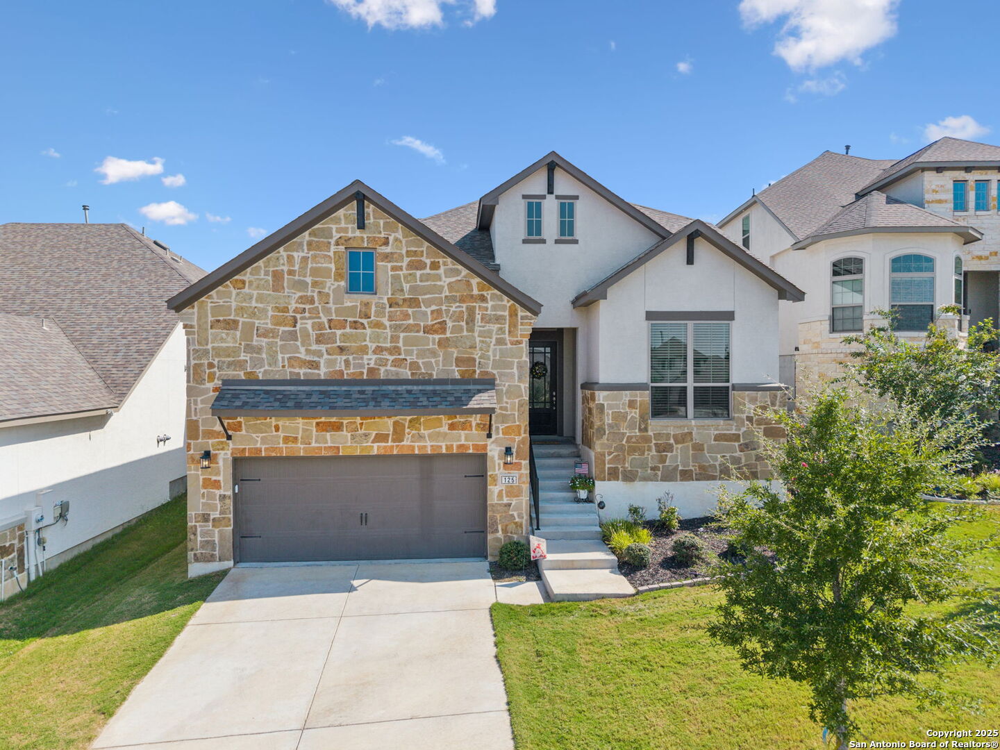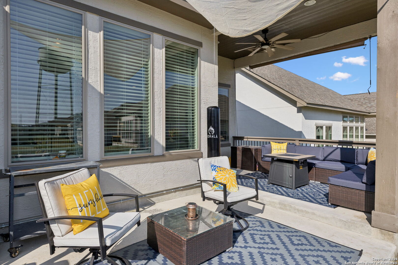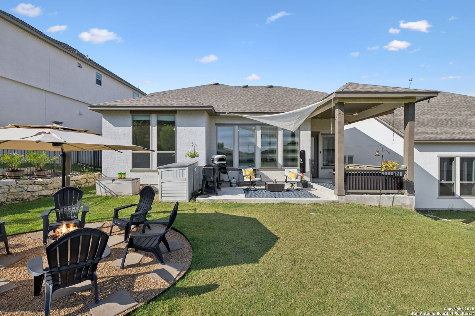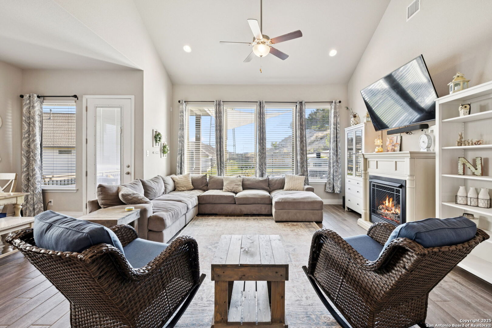 OPEN HOUSE: Saturday, November 15th 12p-3p. Exquisite Move-In Ready Home in the Prestigious Esperanza Community of Boerne. Step into elevated Hill Country living with this stunning 4-bedroom, 3-bathroom residence, perfectly crafted for those with discerning taste. Nestled within the award-winning, master-planned community of Esperanza, this meticulously maintained home exudes elegance and comfort, showcasing model home-quality finishes throughout. From the moment you enter, you're welcomed by an open-concept floorplan featuring wood-look tile flooring in the entry, formal dining, and expansive family room. Soaring ceilings enhance the sense of space and grandeur in the main living areas, primary suite, and covered back patio, while oversized windows flood the home with natural light, creating an airy and inviting ambiance. The gourmet kitchen is a chef's dream-equipped with a gas cooktop, stainless steel appliances, tall custom cabinetry, extended countertops, and a generous pantry-perfect for both everyday living and entertaining in style. Retreat to the luxurious primary suite, a private haven bathed in light, offering serene views and spa-inspired comfort. Additional premium features include a tankless water heater, water softener, extended covered patio with a built-in firepit, ideal for relaxing or hosting under the Texas sky. As a resident of Esperanza, you'll enjoy world-class amenities including a resort-style clubhouse, pool, lazy river, splash pad, state-of-the-art fitness center, miles of scenic trails, dog park, sand volleyball and pickleball courts, and a vibrant calendar of community events. Families will also appreciate the on-site elementary school, just a short walk away. This home is a rare opportunity to experience luxury, lifestyle, and location-a must-see masterpiece ready to welcome you home.