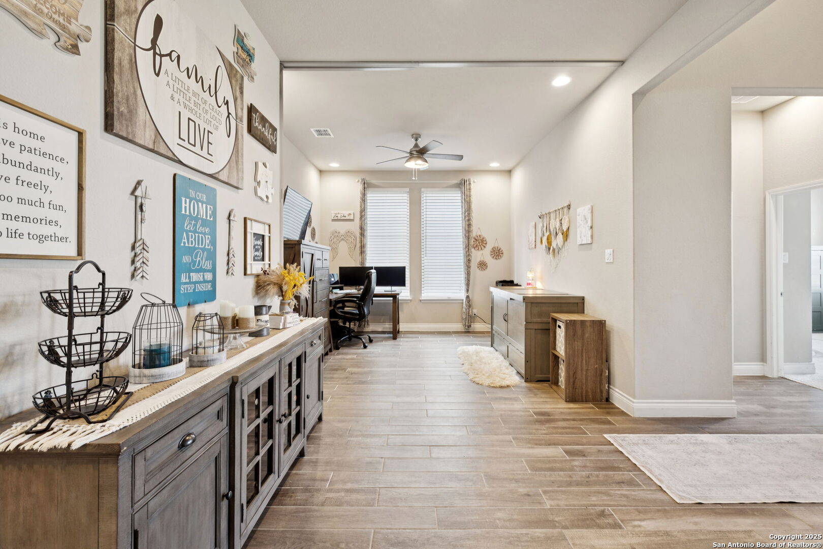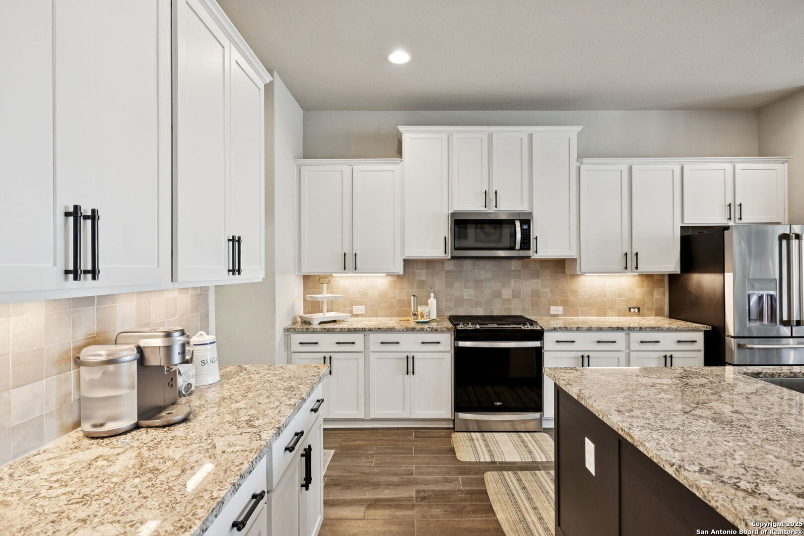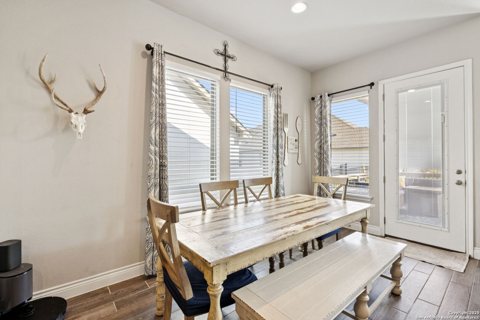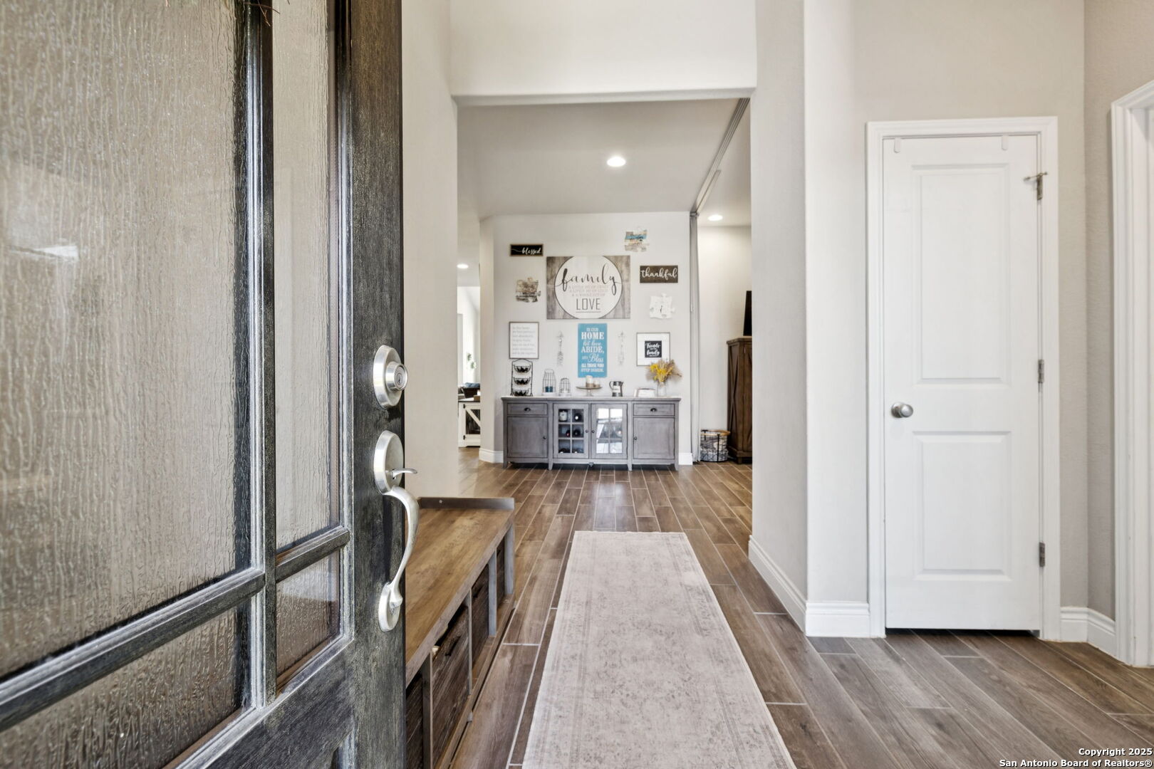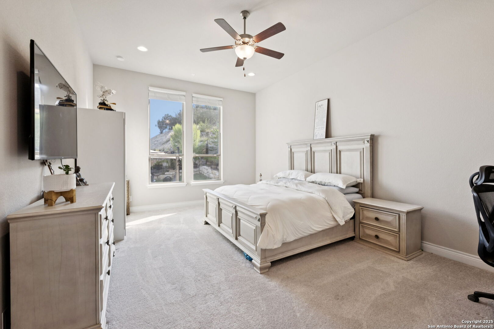 OPEN HOUSE: Saturday, November 15th 12p-3p. Exquisite Move-In Ready Home in the Prestigious Esperanza Community of Boerne. Step into elevated Hill Country living with this stunning 4-bedroom, 3-bathroom residence, perfectly crafted for those with discerning taste. Nestled within the award-winning, master-planned community of Esperanza, this meticulously maintained home exudes elegance and comfort, showcasing model home-quality finishes throughout. From the moment you enter, you're welcomed by an open-concept floorplan featuring wood-look tile flooring in the entry, formal dining, and expansive family room. Soaring ceilings enhance the sense of space and grandeur in the main living areas, primary suite, and covered back patio, while oversized windows flood the home with natural light, creating an airy and inviting ambiance. The gourmet kitchen is a chef's dream-equipped with a gas cooktop, stainless steel appliances, tall custom cabinetry, extended countertops, and a generous pantry-perfect for both everyday living and entertaining in style. Retreat to the luxurious primary suite, a private haven bathed in light, offering serene views and spa-inspired comfort. Additional premium features include a tankless water heater, water softener, extended covered patio with a built-in firepit, ideal for relaxing or hosting under the Texas sky. As a resident of Esperanza, you'll enjoy world-class amenities including a resort-style clubhouse, pool, lazy river, splash pad, state-of-the-art fitness center, miles of scenic trails, dog park, sand volleyball and pickleball courts, and a vibrant calendar of community events. Families will also appreciate the on-site elementary school, just a short walk away. This home is a rare opportunity to experience luxury, lifestyle, and location-a must-see masterpiece ready to welcome you home.