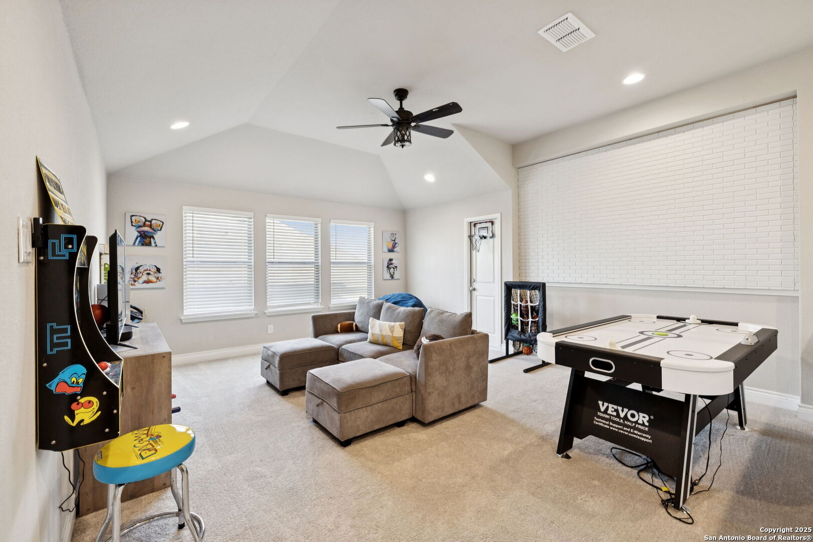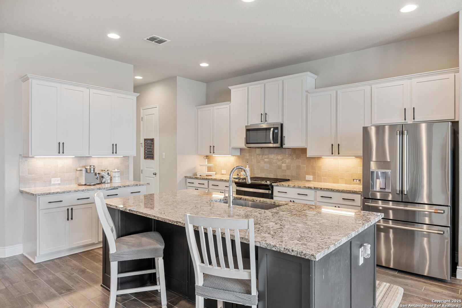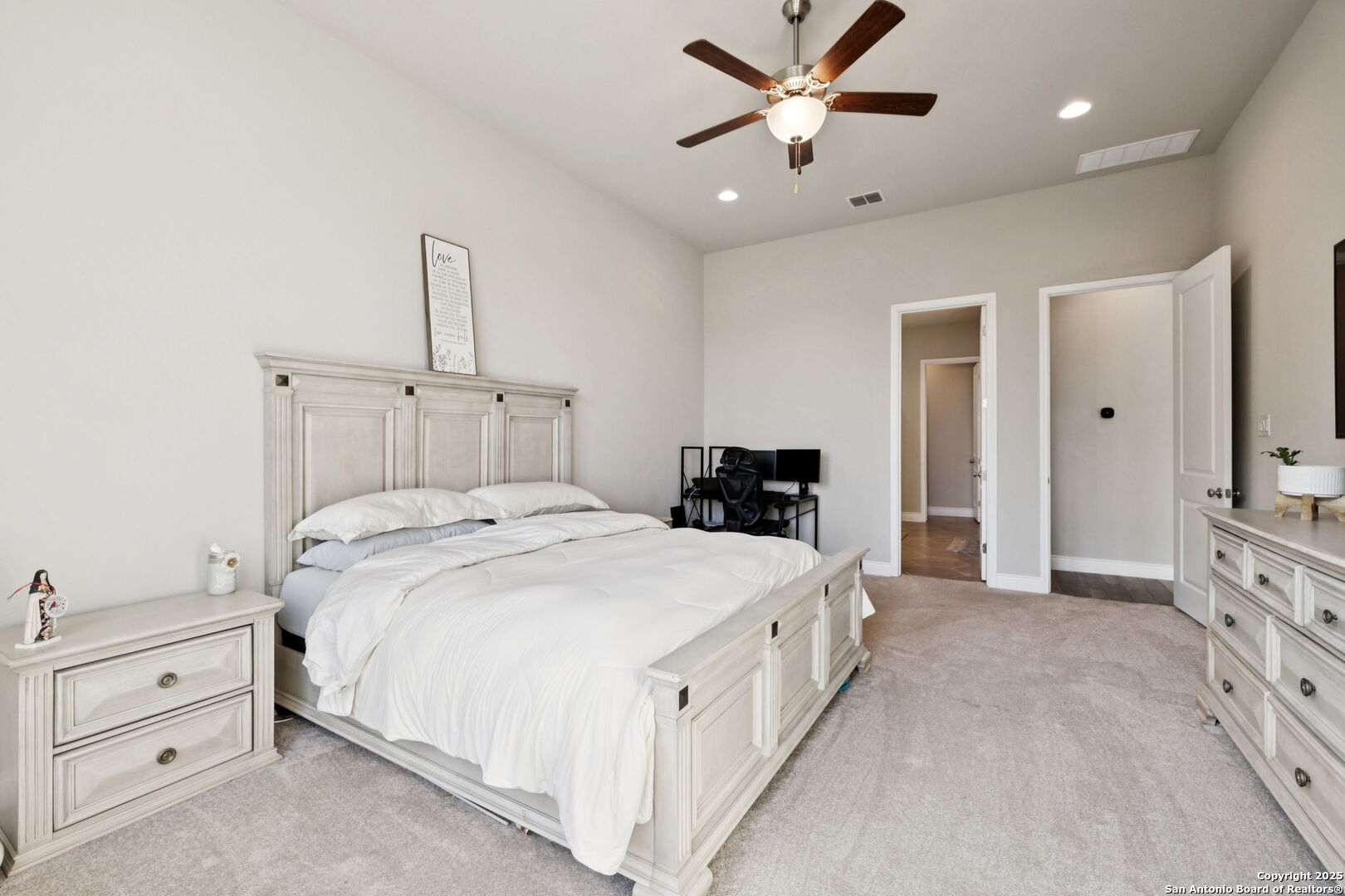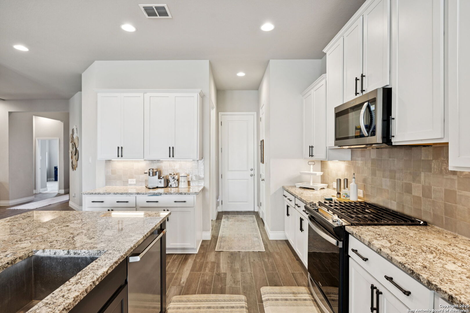 OPEN HOUSE: Saturday, November 15th 12p-3p. Exquisite Move-In Ready Home in the Prestigious Esperanza Community of Boerne. Step into elevated Hill Country living with this stunning 4-bedroom, 3-bathroom residence, perfectly crafted for those with discerning taste. Nestled within the award-winning, master-planned community of Esperanza, this meticulously maintained home exudes elegance and comfort, showcasing model home-quality finishes throughout. From the moment you enter, you're welcomed by an open-concept floorplan featuring wood-look tile flooring in the entry, formal dining, and expansive family room. Soaring ceilings enhance the sense of space and grandeur in the main living areas, primary suite, and covered back patio, while oversized windows flood the home with natural light, creating an airy and inviting ambiance. The gourmet kitchen is a chef's dream-equipped with a gas cooktop, stainless steel appliances, tall custom cabinetry, extended countertops, and a generous pantry-perfect for both everyday living and entertaining in style. Retreat to the luxurious primary suite, a private haven bathed in light, offering serene views and spa-inspired comfort. Additional premium features include a tankless water heater, water softener, extended covered patio with a built-in firepit, ideal for relaxing or hosting under the Texas sky. As a resident of Esperanza, you'll enjoy world-class amenities including a resort-style clubhouse, pool, lazy river, splash pad, state-of-the-art fitness center, miles of scenic trails, dog park, sand volleyball and pickleball courts, and a vibrant calendar of community events. Families will also appreciate the on-site elementary school, just a short walk away. This home is a rare opportunity to experience luxury, lifestyle, and location-a must-see masterpiece ready to welcome you home.