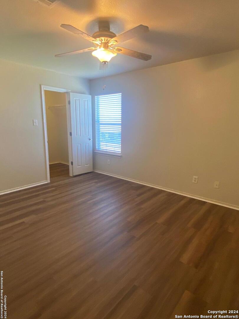 Spacious 4 bed 2.5 bath home in Cibolo Valley Ranch. Freshly painted with new flooring throughout. Tile in wet areas, vinyl plank flooring in all living areas and bedrooms, and carpet on the stairs for safety and noise-dampening. Open floor plan with a separate dining area and generous size kitchen designed for cooking and entertaining. This property features ceiling fans in every room, built-in microwave, dishwasher, and a garage door opener. Outside enjoy the large backyard with covered patio.