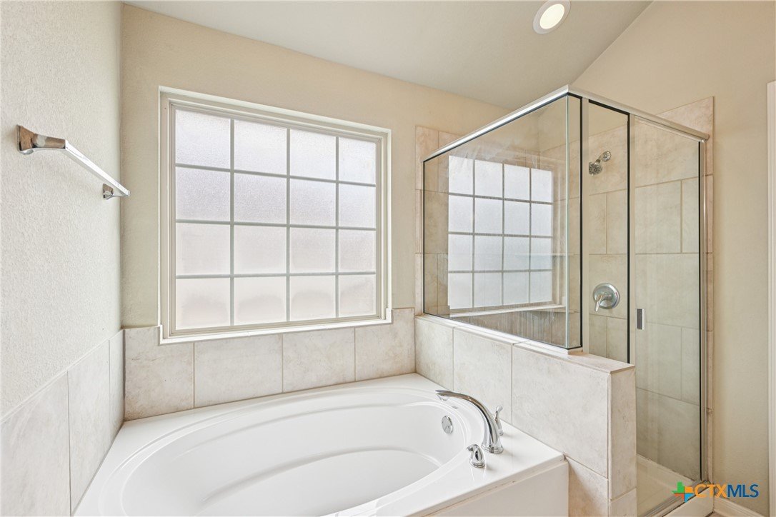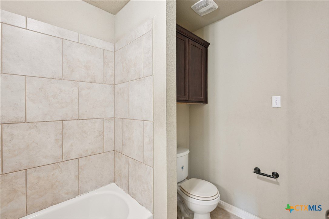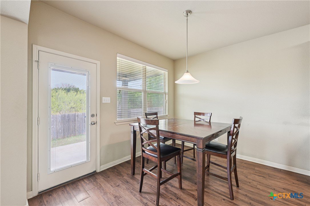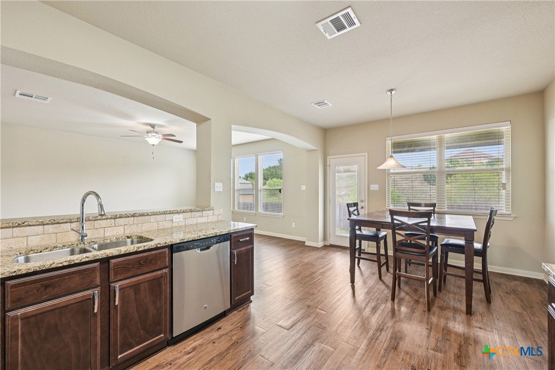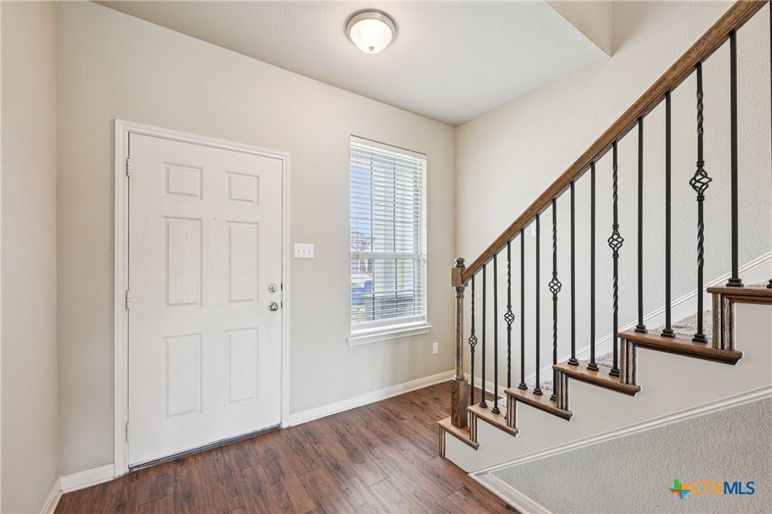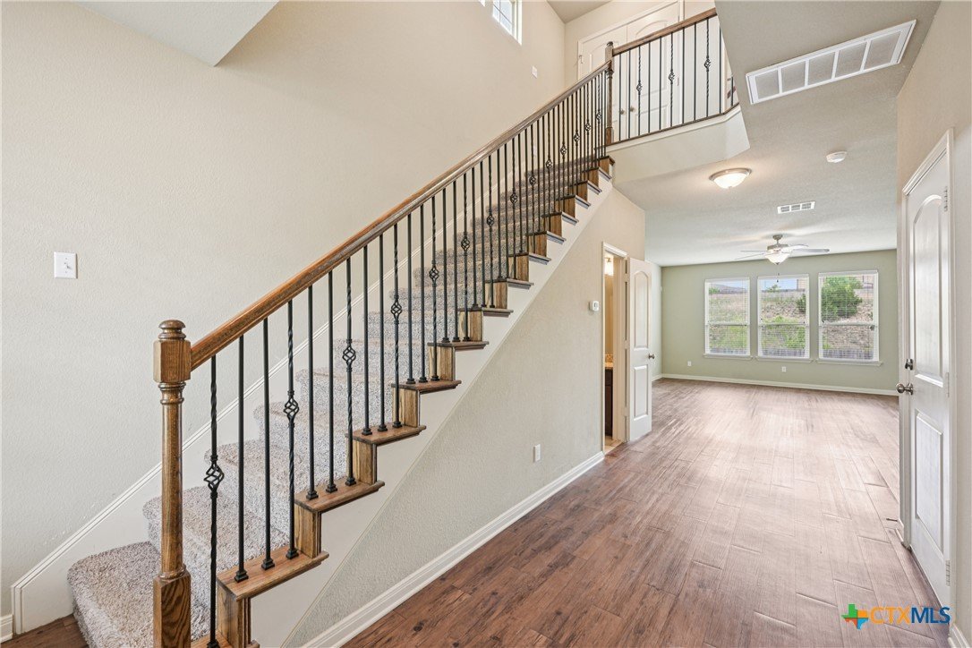 Located in the desirable Heartwood Park subdivision, this well-maintained 3-bedroom, 2.5-bath home offers a functional layout and stylish upgrades throughout. Enjoy matching flooring in the main living areas, with cozy carpet upstairs in all bedrooms. The upgraded staircase features elegant wrought-iron spindles, adding a touch of character as you enter. All bedrooms are conveniently located upstairs, along with the laundry room for added ease. The spacious primary suite boasts high ceilings, walk-in closets, a dual vanity, a soaking tub, and a separate shower. The kitchen is equipped with stainless steel appliances, granite countertops, and a refrigerator that conveys, all opening seamlessly to the dining area and living room, perfect for entertaining. Ideally situated near schools, restaurants, and just minutes from Fort Hood, this home combines comfort and convenience. Schedule your showing today!