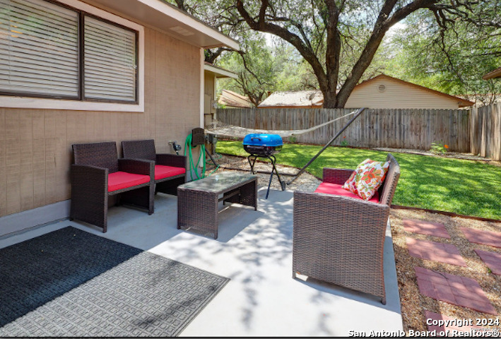 This is a fully furnished rental that can be rented for a minimum of 30 days or up to 6 months. This is a great way to transition into buying a home or if you are a traveling executive, or perhaps you are waiting for a home to be built and just sold your home and need a place to stay for a short time. All utilities are paid, just bring your suitcase and your pet if you have one, they will love the large backyard and you will love the privacy. This is a quiet street with no thru traffic and conveniently located near IH-10 and Loop 1604. Also close to USAA and UTSA, close to shopping and restaurants. This location can't be beat.