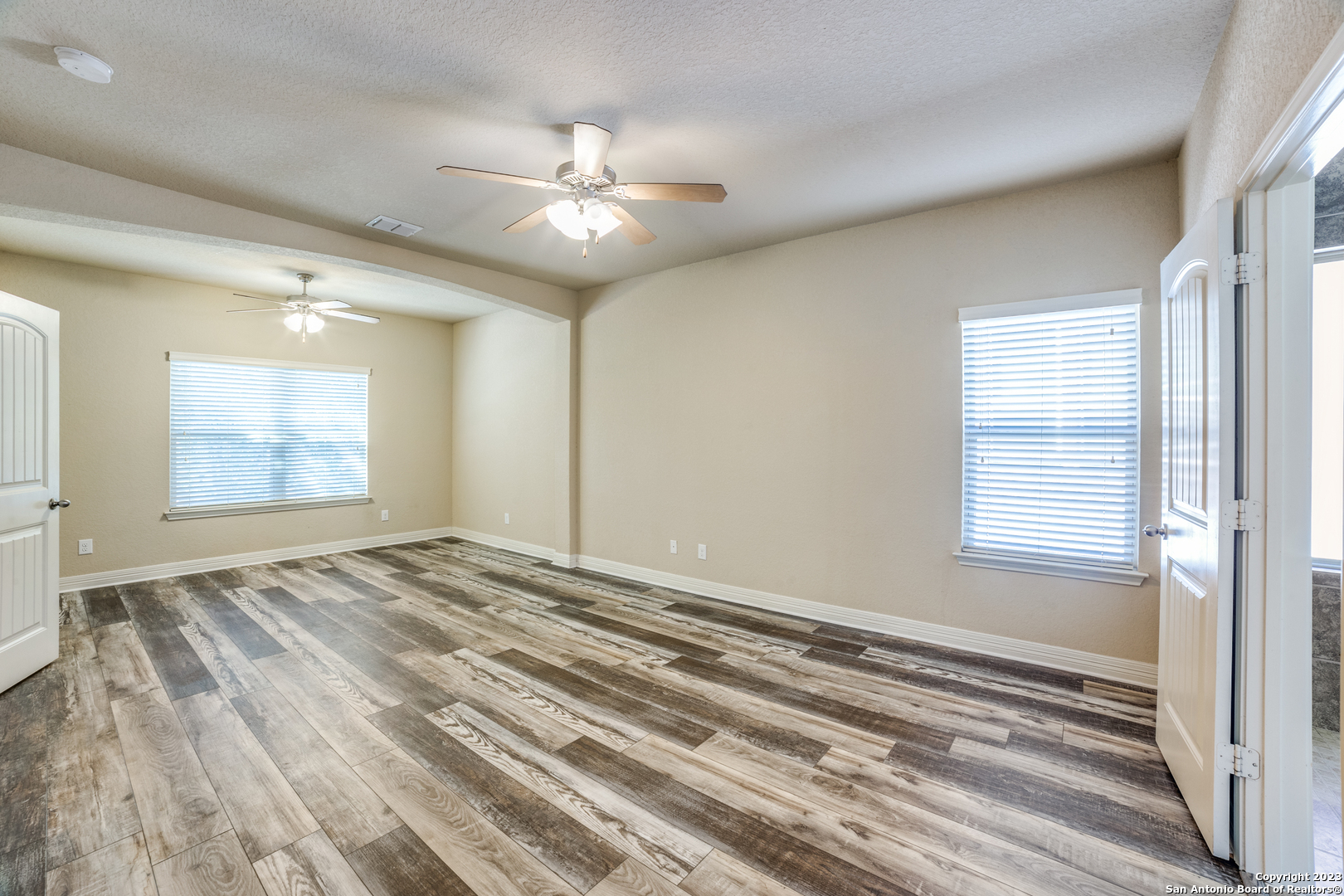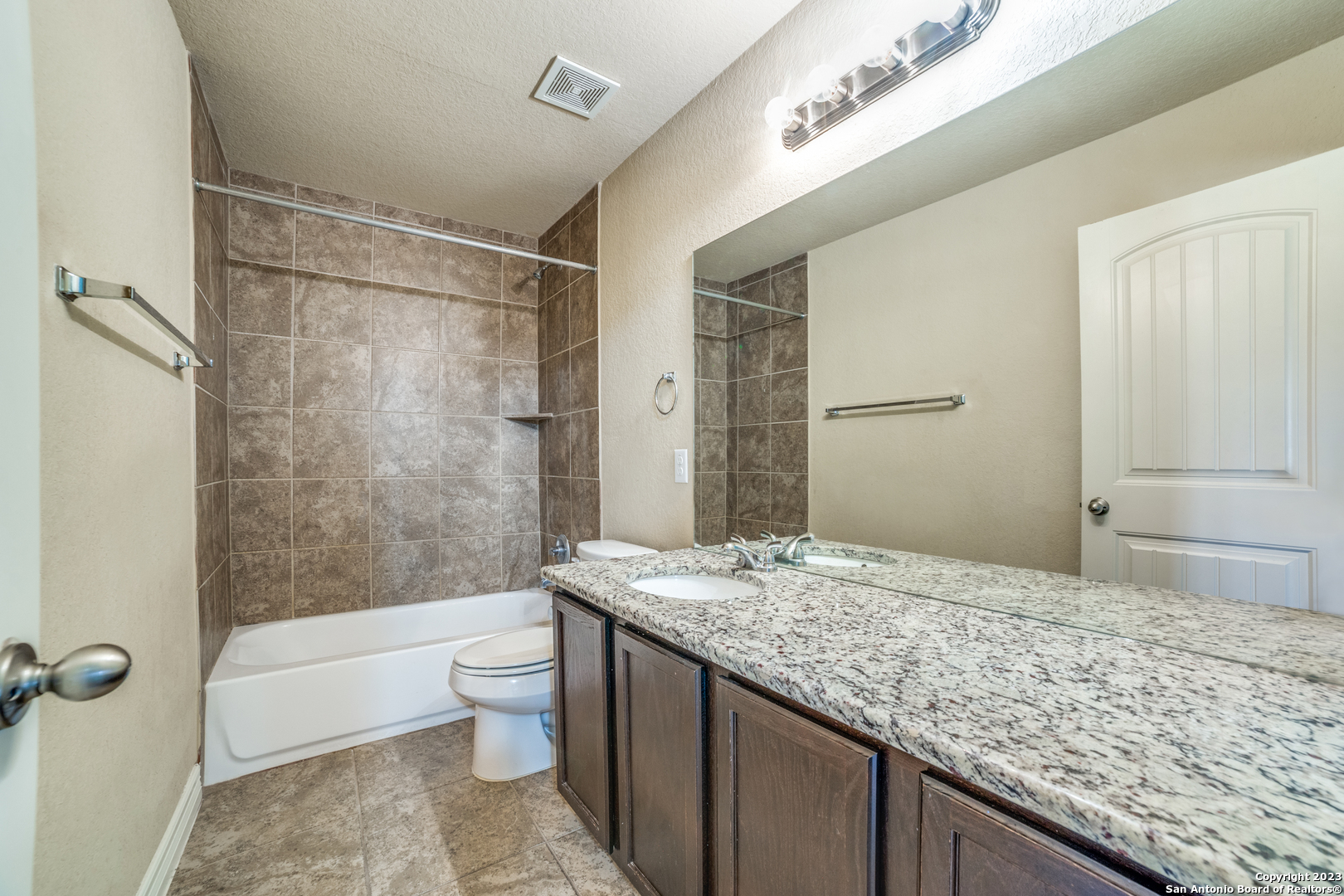 ****1000 off rent concession offer by owner for 1 month on 12 months lease contract must move in by or before 11/1/2025 *****This stunning two-story home combines modern design with everyday comfort, featuring an open floor plan, soaring ceilings, and windows that flood the space with natural light. The well-equipped kitchen offers both a full-size refrigerator and a mini fridge, perfect for family living or entertaining guests. The downstairs primary suite is a private retreat with a spa-style bath that includes a double vanity, tiled shower, and large walk-in closet. Upstairs, three generously sized bedrooms each feature their own walk-in closets and share access to a versatile game room. A first-floor laundry with washer and dryer included makes daily routines effortless, while the oversized two-car garage provides ample storage. Step outside to a spacious backyard designed for gatherings, complete with a built-in grill and plenty of room for play or relaxation. Ideally located with quick access to Lackland AFB, Loop 1604, Hwy 90, and Hwy 151, this home is ready to welcome its next owners with both style and convenience.