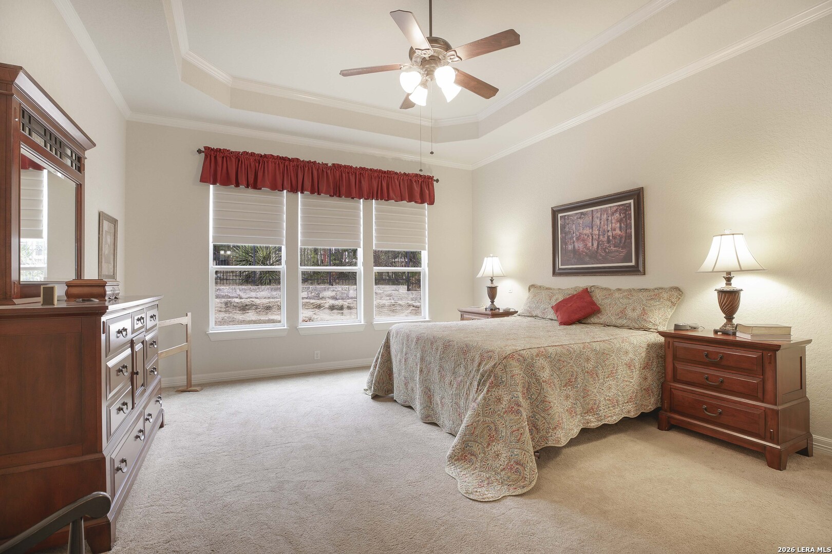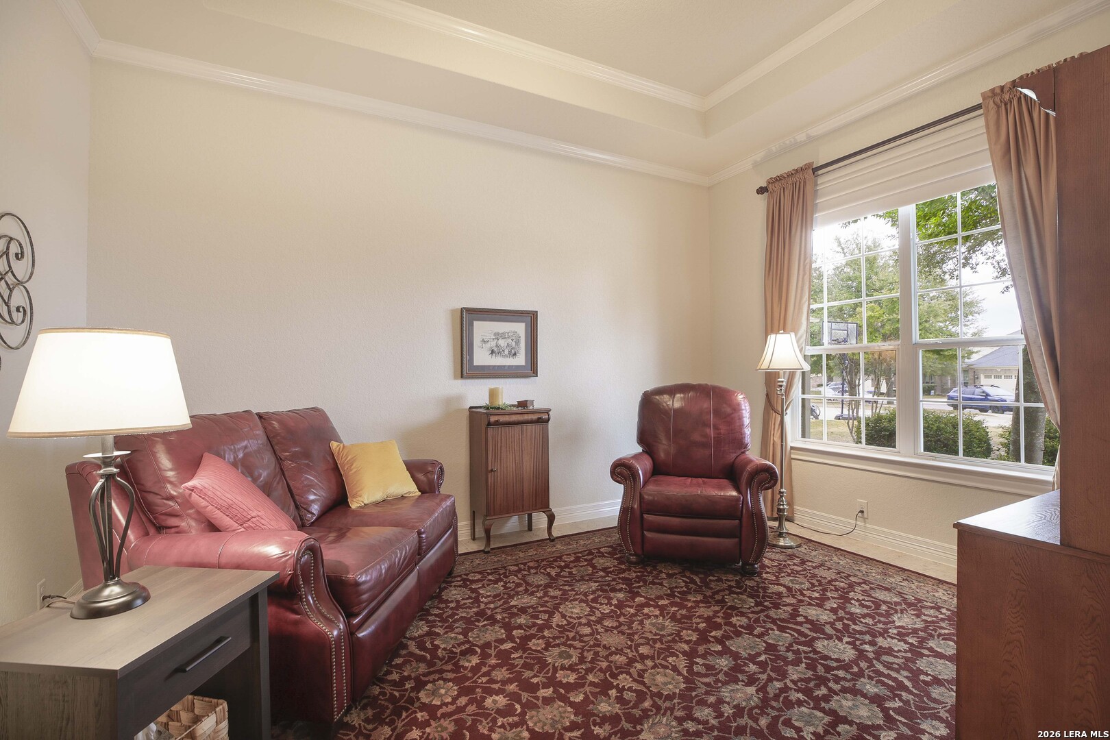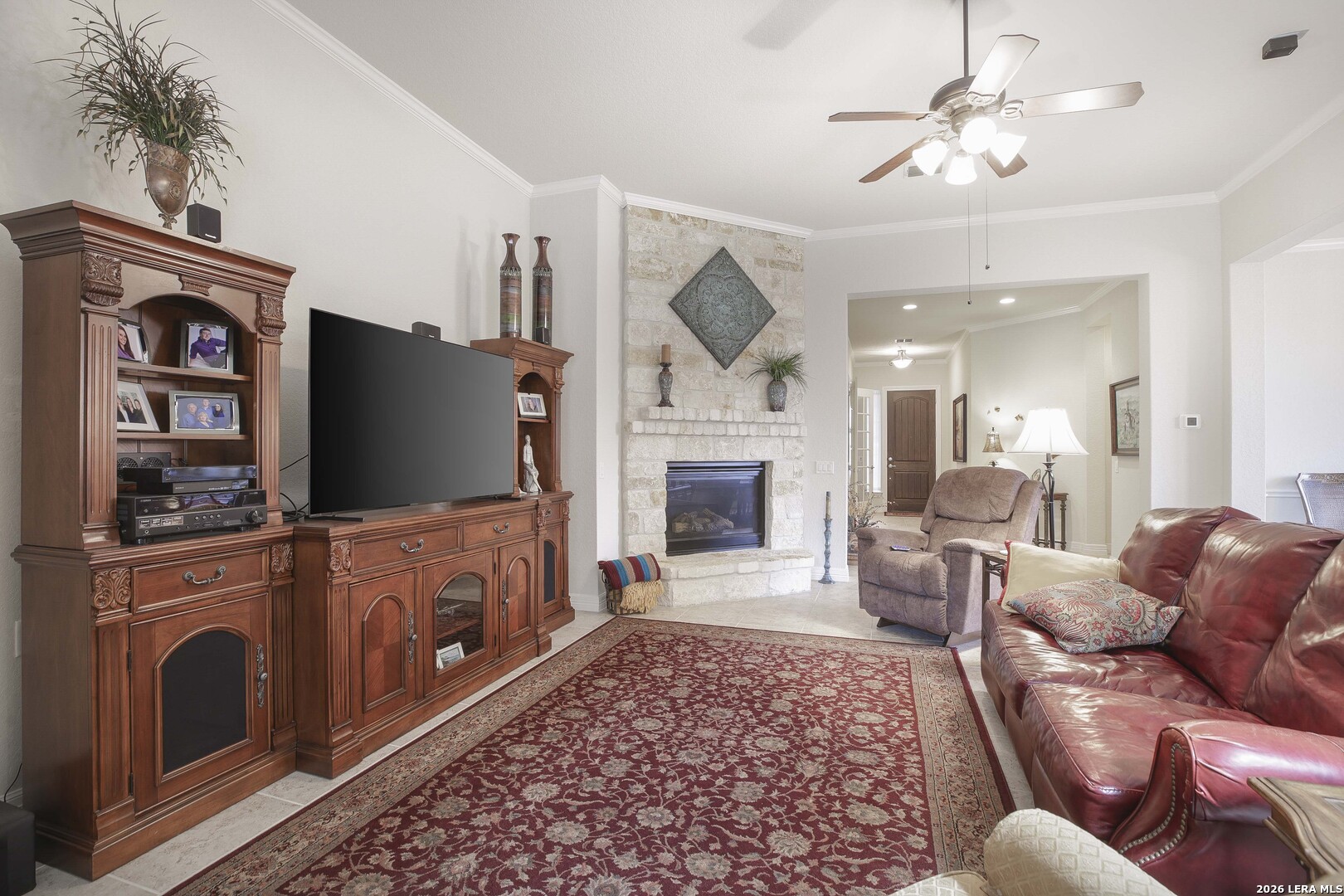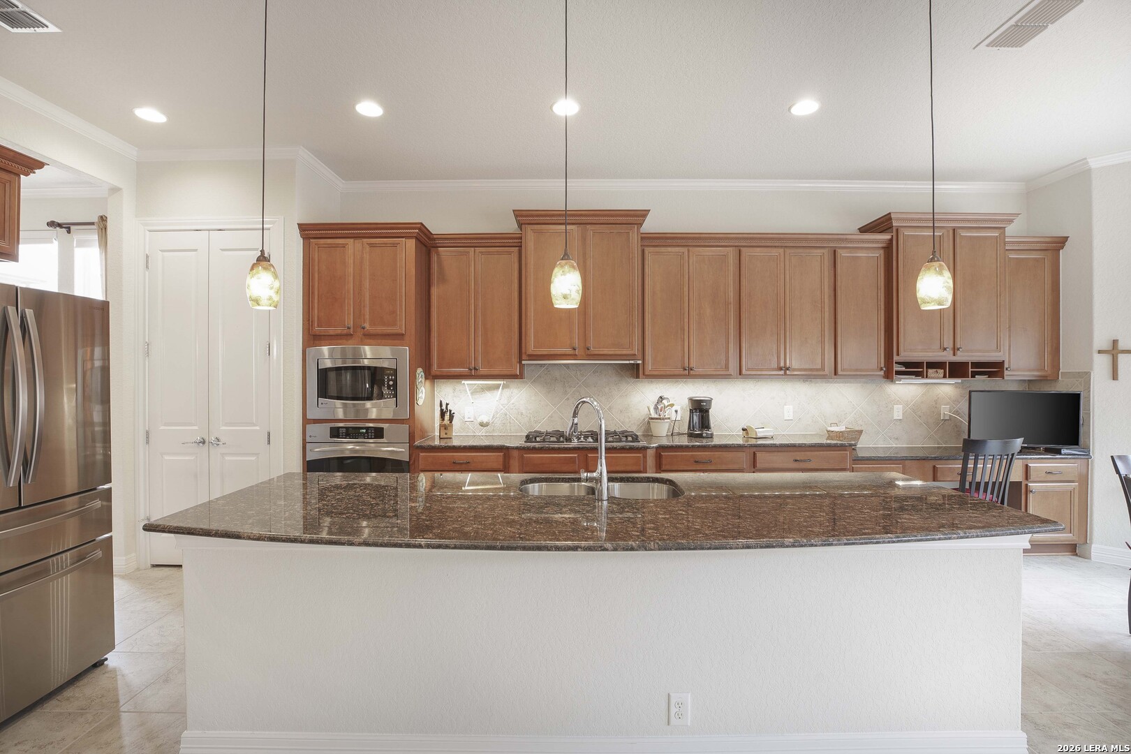 Step through the front door and immediately sense the thoughtful design and pride of ownership throughout this impeccably maintained one-owner home in the gated Enclave at Alamo Ranch. From the moment you enter, refined details elevate the living spaces, creating a warm yet polished atmosphere that feels both welcoming and intentional. The spacious living room is wired for surround sound, making it the perfect setting for movie nights, game days, or simply relaxing at home. At the heart of the home, the eat-in kitchen impresses with extensive cabinetry and drawers, offering exceptional storage as well as under cabinet lighting, while seamlessly connecting to two dining areas-ideal for hosting holidays, celebrations, or casual gatherings alike. Every space flows with ease, designed to be both beautiful and functional. Inside, oversized bedrooms provide comfortable, private retreats, while a dedicated office adds flexibility for work or study. The three-car garage offers incredible versatility-perfect for extra storage, hobbies, or workshop space in addition to parking. Step outside and discover a backyard retreat that truly sets this home apart. The generous covered patio with extended outdoor living space invites you to entertain, unwind, or enjoy morning coffee while overlooking a lush, beautifully maintained yard complete with a fig tree and storage shed. Both the front and backyard are thoughtfully landscaped and equipped with sprinkler systems, ensuring year-round curb appeal with ease. Located near parks, greenbelts, and everyday conveniences including H-E-B, Target, and Home Depot, this home delivers style, space, and lifestyle in one exceptional package.