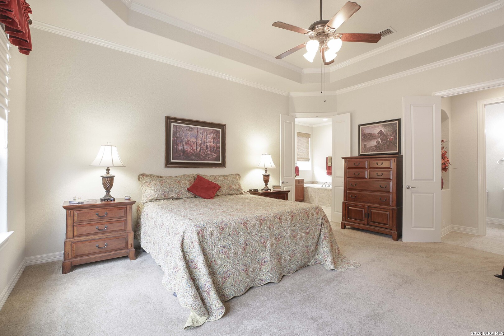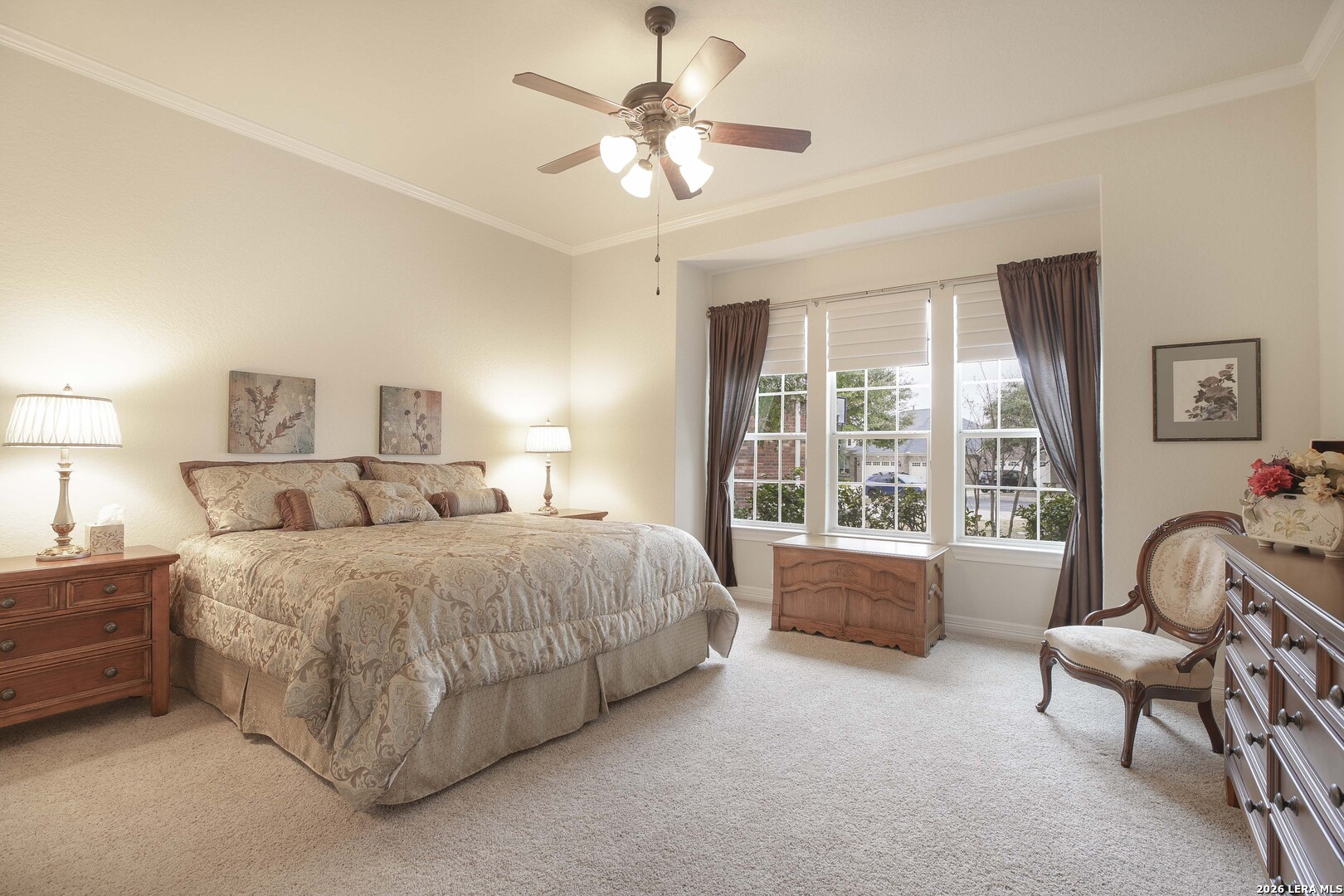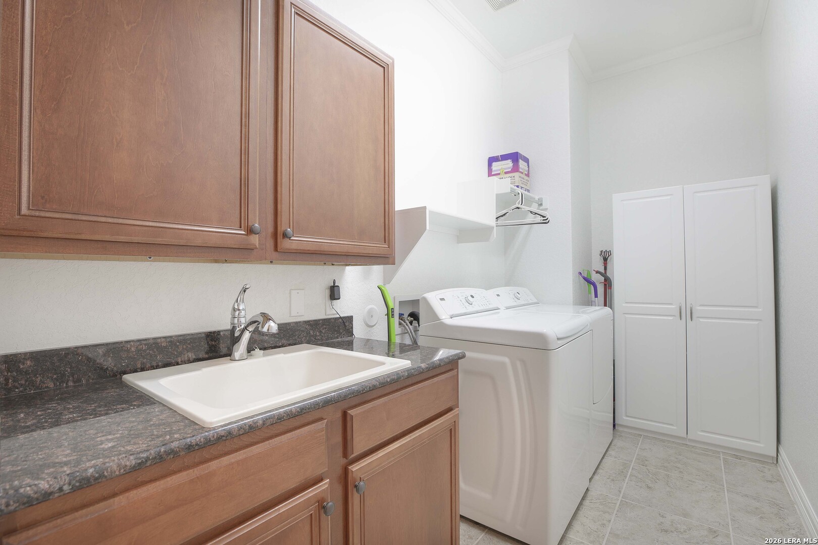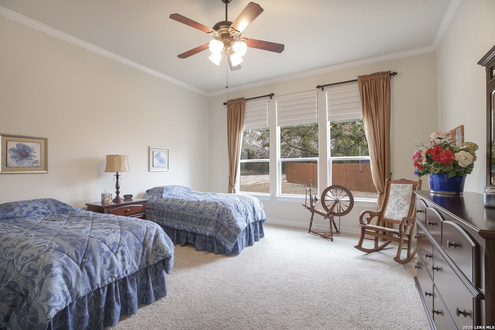 Step through the front door and immediately sense the thoughtful design and pride of ownership throughout this impeccably maintained one-owner home in the gated Enclave at Alamo Ranch. From the moment you enter, refined details elevate the living spaces, creating a warm yet polished atmosphere that feels both welcoming and intentional. The spacious living room is wired for surround sound, making it the perfect setting for movie nights, game days, or simply relaxing at home. At the heart of the home, the eat-in kitchen impresses with extensive cabinetry and drawers, offering exceptional storage as well as under cabinet lighting, while seamlessly connecting to two dining areas-ideal for hosting holidays, celebrations, or casual gatherings alike. Every space flows with ease, designed to be both beautiful and functional. Inside, oversized bedrooms provide comfortable, private retreats, while a dedicated office adds flexibility for work or study. The three-car garage offers incredible versatility-perfect for extra storage, hobbies, or workshop space in addition to parking. Step outside and discover a backyard retreat that truly sets this home apart. The generous covered patio with extended outdoor living space invites you to entertain, unwind, or enjoy morning coffee while overlooking a lush, beautifully maintained yard complete with a fig tree and storage shed. Both the front and backyard are thoughtfully landscaped and equipped with sprinkler systems, ensuring year-round curb appeal with ease. Located near parks, greenbelts, and everyday conveniences including H-E-B, Target, and Home Depot, this home delivers style, space, and lifestyle in one exceptional package.