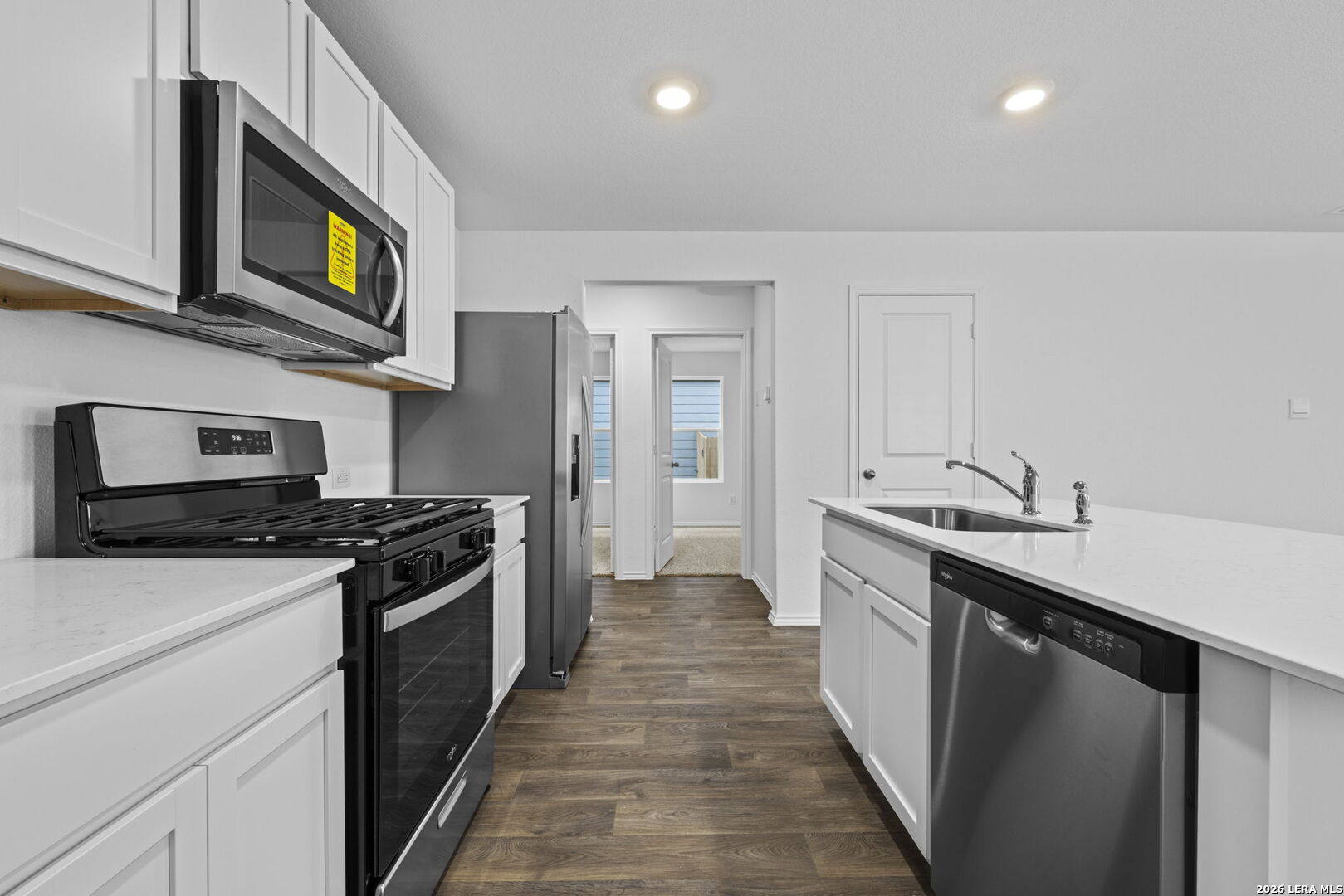 Discover easy, single-story living with The Barton floorplan at Avenida. This thoughtfully designed home features 3 bedrooms, 2 bathrooms, 1,281 square feet of well-utilized space, and a 2-car garage. Step inside from the inviting front porch into an airy open layout designed for both comfort and connection. The kitchen serves as the heart of the home, showcasing quartz countertops, stylish cabinetry, stainless steel appliances, and generous counter space - all opening to the dining and living areas for effortless entertaining. The primary suite offers a peaceful retreat with a private bath featuring quartz countertops, quality cabinetry, and a large walk-in closet. Secondary bedrooms include soft carpet flooring, ample closet space, and the versatility to function as guest rooms, an office, or a fitness space. Durable sheet vinyl flooring runs through the entry, living room, and wet areas, while quartz countertops in all bathrooms create a polished, cohesive look throughout. The Barton blends modern finishes, smart design, and everyday functionality in one inviting home. *Seller is willing to assist with closing costs or a rate buy-down through preferred lender with an acceptable offer. *
