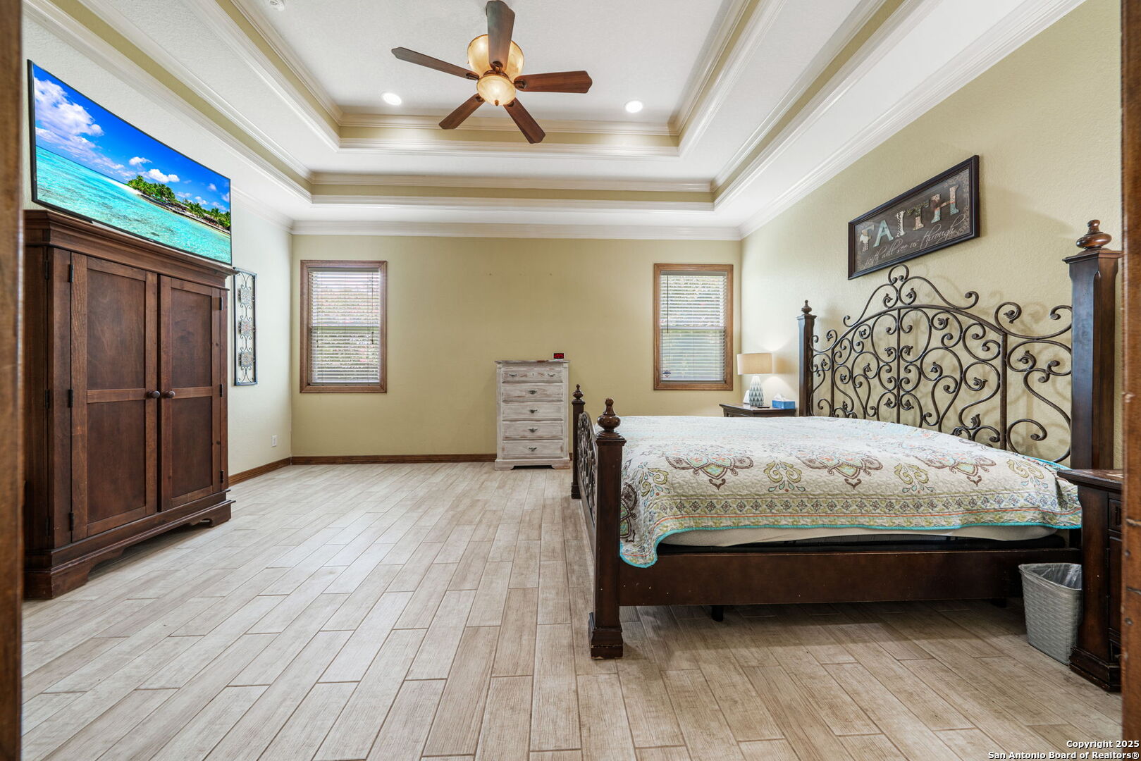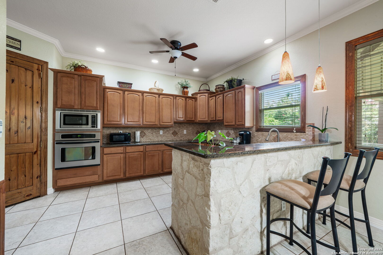 Nestled in the charming, family-oriented English Oaks community just minutes from historic Downtown Boerne, this stunning two-story custom home offers over 3,500 sf of thoughtfully designed living space, featuring 4 bedrooms, 4 baths, and a spacious upstairs game room. Showcasing striking stone and wood-accented architecture, the home exudes the upscale elegance of the Hill Country. Inside, the chef's kitchen is appointed with gleaming granite countertops, built-in stainless steel appliances, abundant cabinetry, and a spacious pantry-perfect for entertaining and family gatherings. The open layout flows seamlessly from the formal dining and open living areas to the covered patio, ideal for Texas barbecues and indoor-outdoor living. The private main-level master retreat features an oversized closet and a spa-like bath, while the executive study provides a quiet workspace or can serve as a fourth bedroom. Upstairs, secondary bedrooms are generously sized and accompanied by a game room-ideal for media, play, or additional work-from-home space. Located in the highly rated Boerne Independent School District and nestled within a walkable, friendly neighborhood known for its mature oak-lined streets and community spirit, this home combines luxury finishes, functional design, and an unbeatable central Hill Country location.