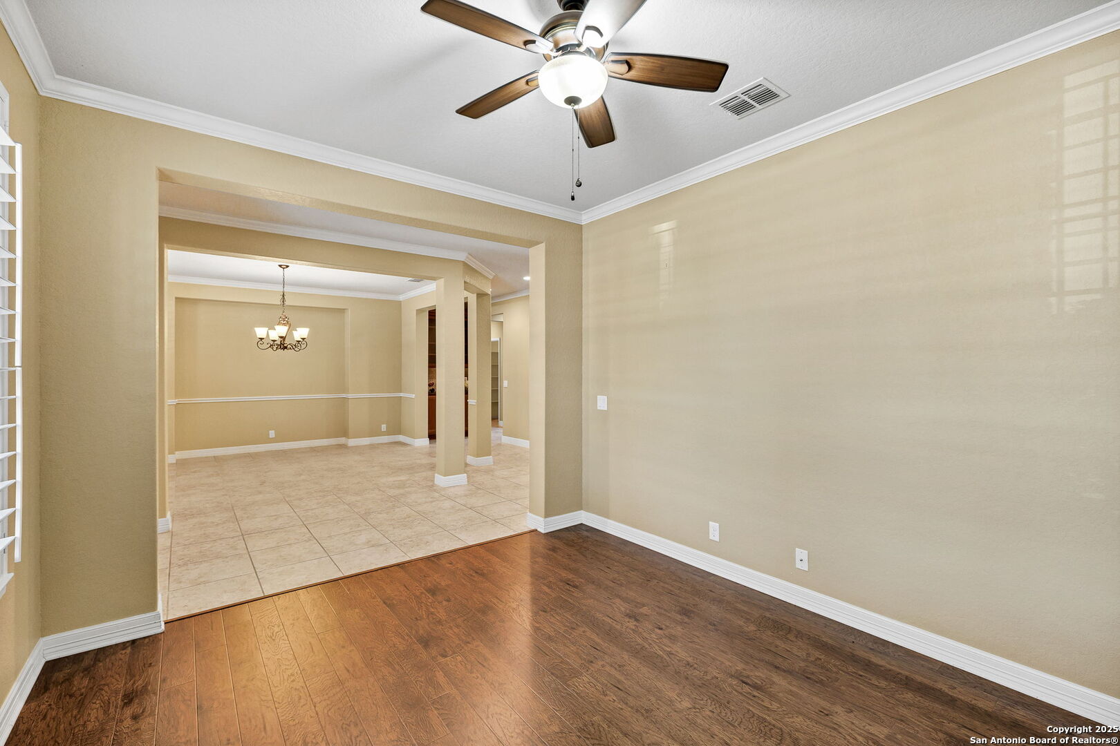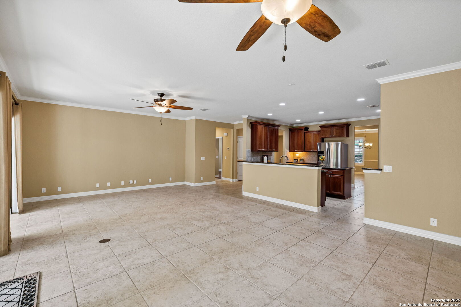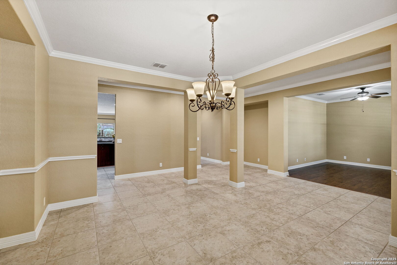 OPEN HOUSE SUNDAY NOVEMBER 9, 1-3 PM. IMPECCABLY MAINTAINED HOME IN PRESTIGIOUS DEL WEBB 55+ PREMIER ADULT COMMUNITY. THIS 2678 SQ/FT HOME BOASTS 3 BEDROOMS EACH WITH ITS OWN ON-SUITE BATH; AND ADDITIONAL 1/2 BATH. ELEGANT LARGE TILE FLOORS IN LIVING AREAS, LAMINATE IN BEDROOMS AND DEN, NO CARPET HERE! ELEGANT PLANTATION SHUTTERS THROUGHOUT. SPACIOUS CHEF'S DELIGHT KITCHEN WITH CENTER ISLAND, GRANITE COUNTERS AND AN AMAZING WALK IN PANTRY. NESTLED ON SPRAWLING PRIVATE LOT ON PEACEFUL STREET. OVERSIZED GARAGE, MOVE-IN READY! ROOF AND HVAC REPLACED IN 2021. THE COMMUNITY RESORT CENTER FEATURES BALLROOM, MEETING ROOMS, LIBRARY, STATE OF THE ART GYM, INDOOR POOL AND SPA, 2 OUTDOOR POOLS, PICKLE BALL AND MUCH MORE! IT'S TIME TO PACK YOUR BAGS AND GET READY TO ENJOY THE GOOD LIFE AT DEL WEBB SAN ANTONIO HILL COUNTRY RETREAT!