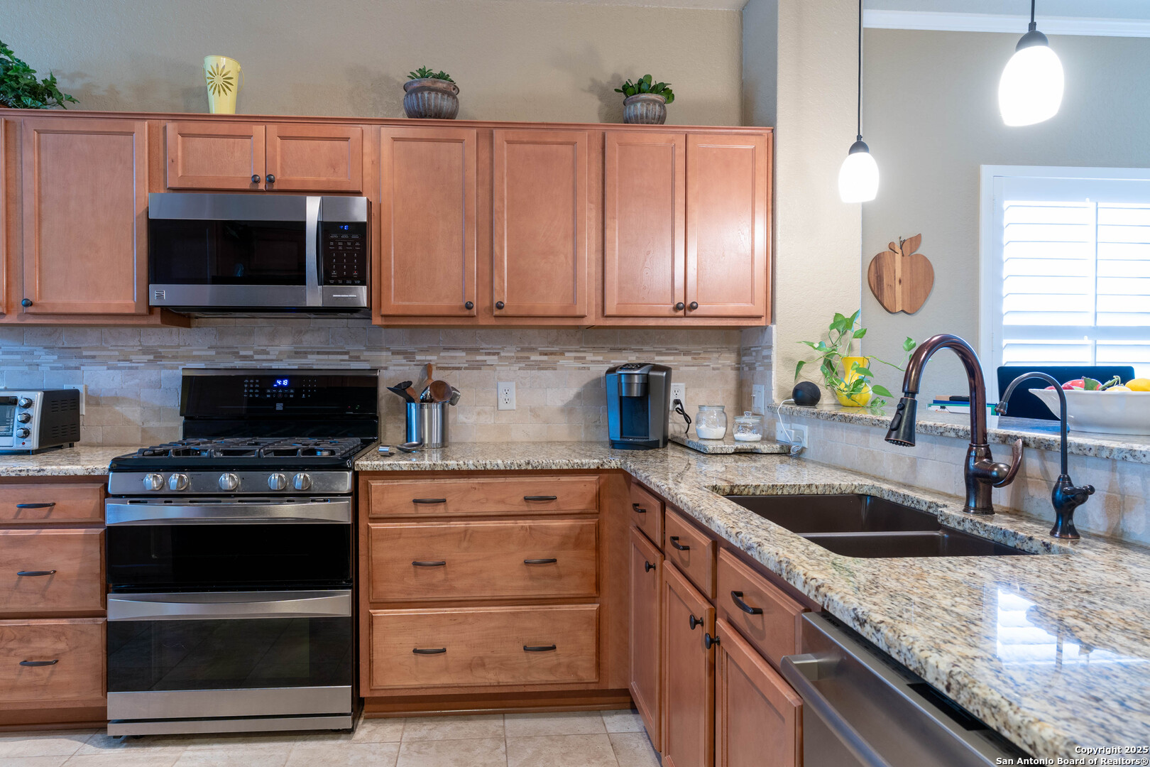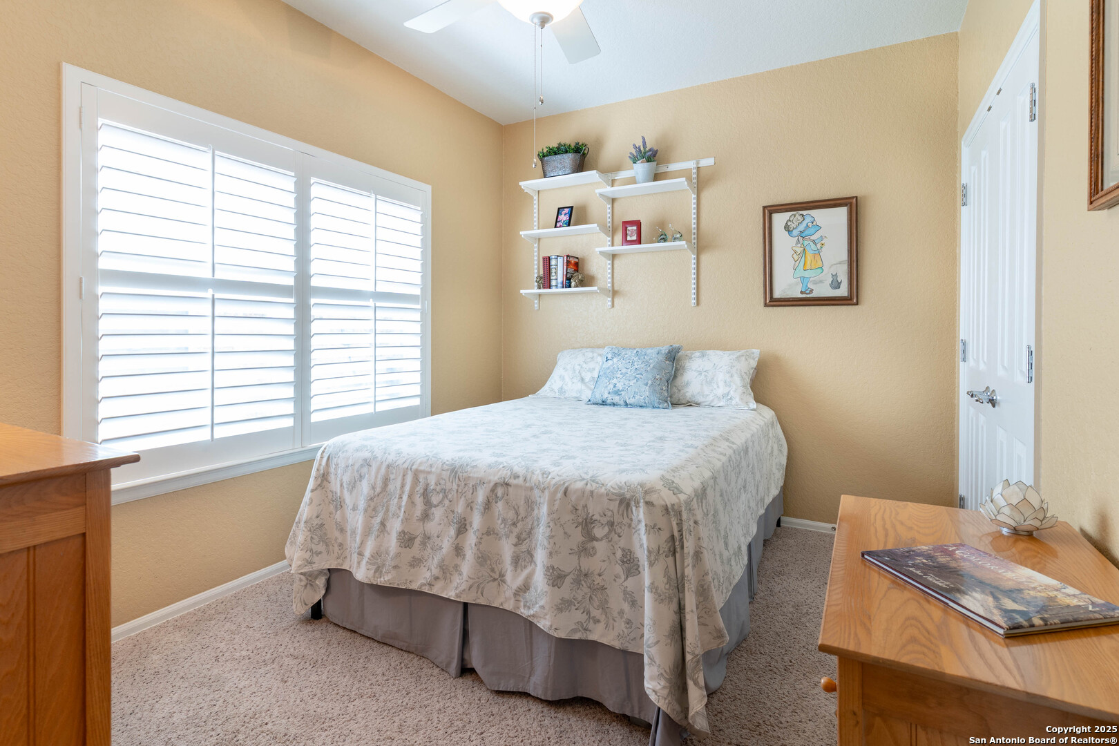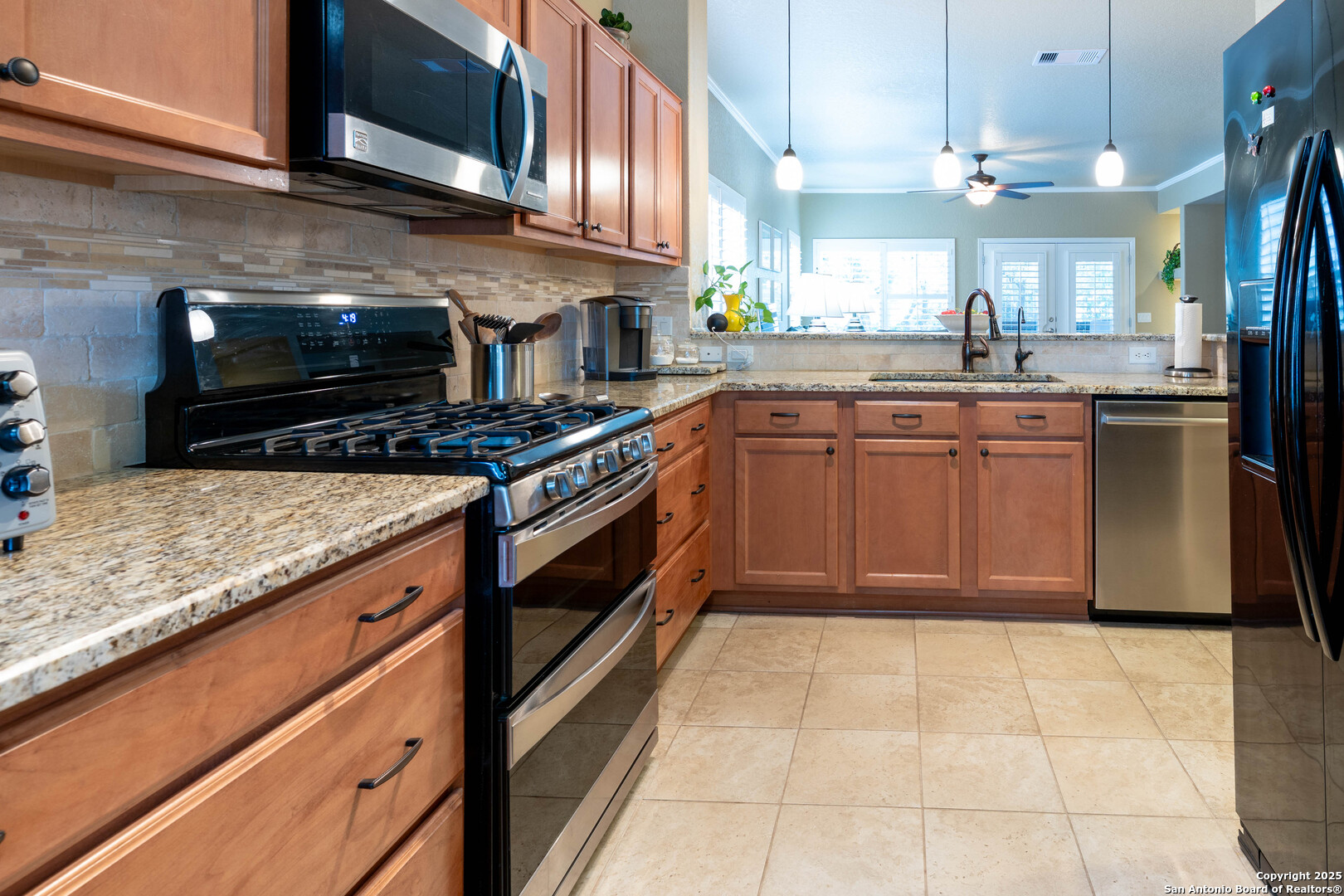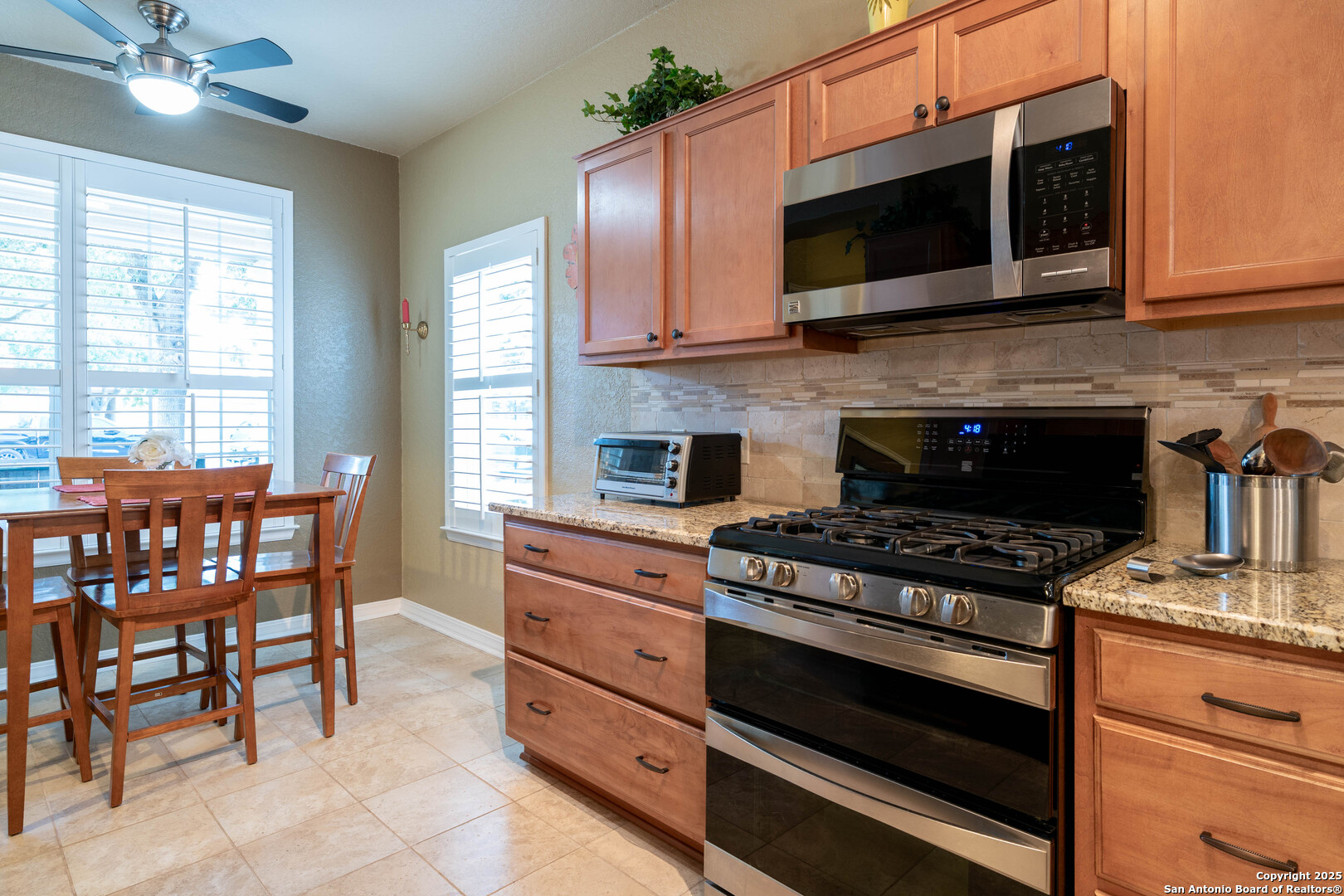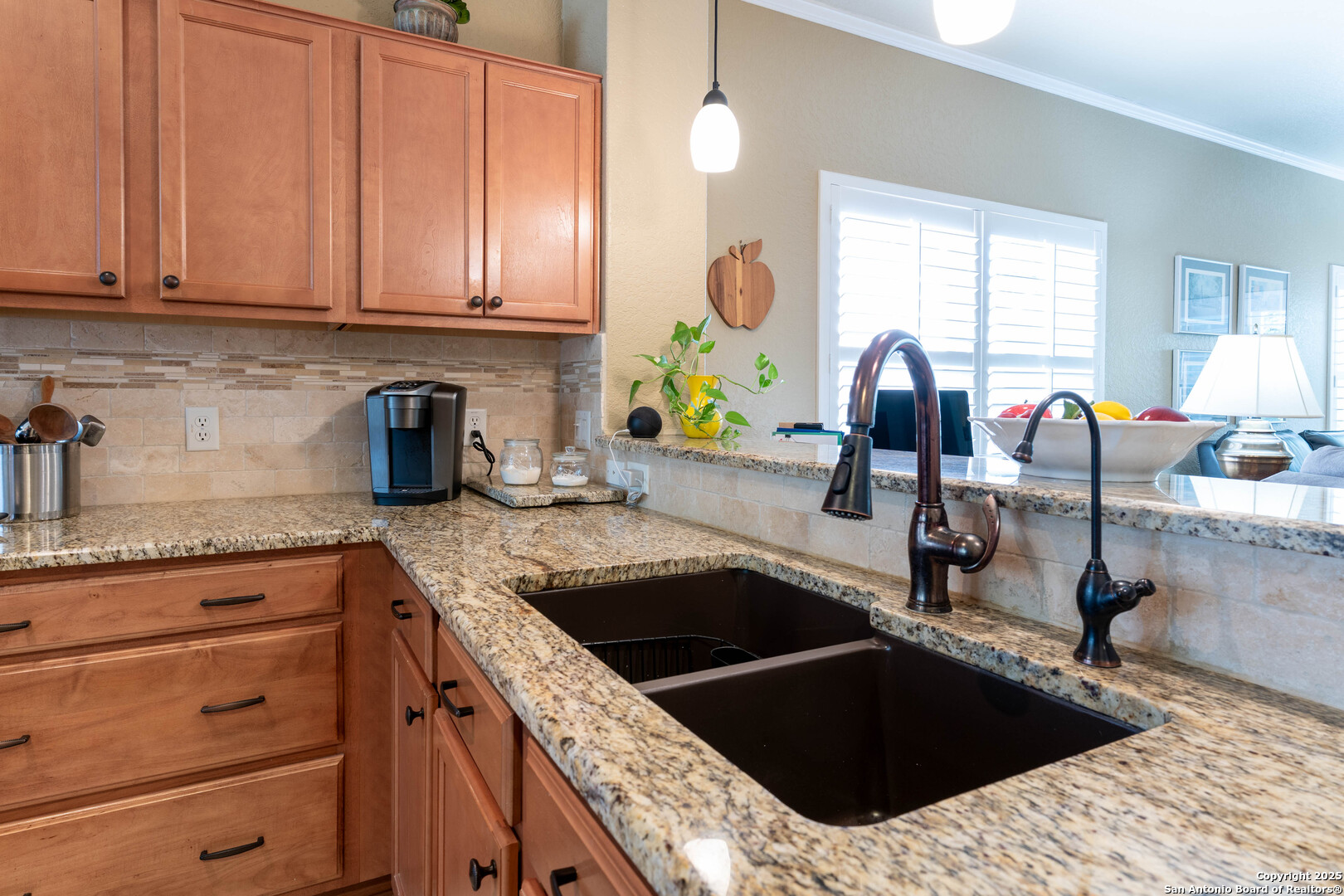 STUNNING SINGLE STORY ON CUL-DE-SAC!! Welcome to easy living in this beautifully maintained, move-in ready home located in the desirable Del Webb 55+ Hill Country Retreat community. Designed for comfort and style, this home features high ceilings, stunning wood floors, plantation shutters, and a neutral color palette throughout. The open floor plan is filled with natural light and includes a sun-kissed breakfast nook and a granite island kitchen with gas cooking and refrigerator included. The spacious living area showcases elegant built-in lighted display niches, adding warmth and character to the space. The well-sized primary enjoys numerous windows and elegant wood flooring while the ensuite offers an upgraded vanity and mirrors, a beautifully tiled walk-in shower with ramp access and custom closet updates. A secondary bedroom and second full bath provide added flexibility. Enjoy quiet afternoons on the screened-in porch surrounded by mature oak trees. Recent updates include a new water heater (2025), HVAC (2023), roof (2021) with transferrable warranty, and fresh exterior paint (2024). Additional highlights include upgraded ceiling fans and lighting, gutters, and an oversized garage with storage. Community amenities include indoor and two outdoor pools, a state-of-the-art gym, and vibrant social activities.