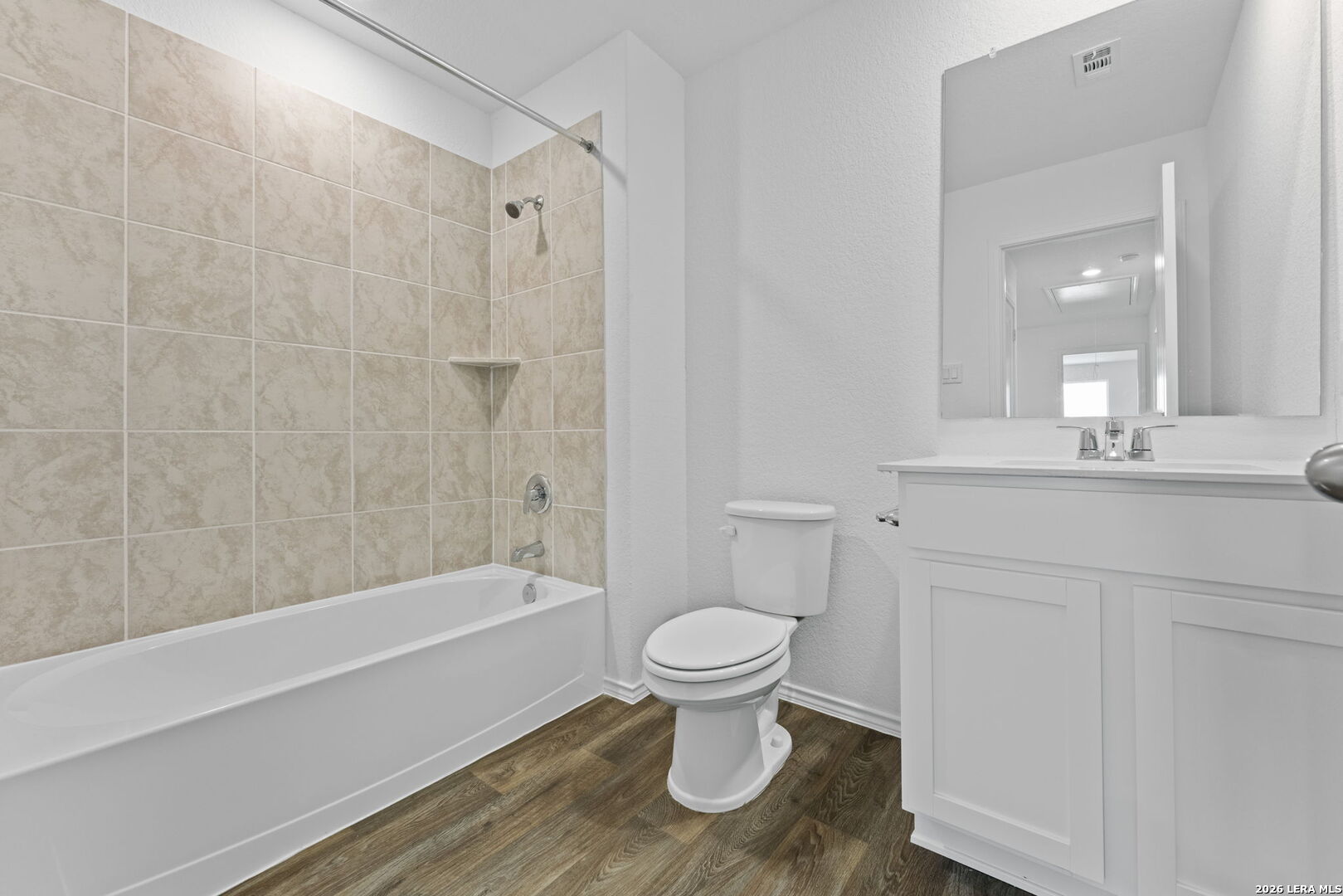 Welcome to The Knight... Featuring 4 bedrooms, 2 bathrooms, 2-car garage and 1901 square feet of living space, this floor plan is sure to turn heads. Spacious, comfortable living greets you at the door with a long foyer leading to a decorative wall nook and a grand, open concept living room, kitchen and dining area. The kitchen is complete with beautiful quartz countertops, stainless steel appliances, classic white subway tile backsplash, and an oversized kitchen island with a deep single basin sink. Your blended living room and dining area feature luxury hard surface flooring and plenty of windows, creating a light and bright space for living and entertaining. The private main bedroom is located at the back of the home and features a large, relaxing ensuite bathroom complete with a separate tub and walk-in shower, dual vanities, a water closet, and spacious walk-in closet. All secondary bedrooms offer quality carpeted floors and a closet. These rooms are versatile! Use them as bedrooms, offices, work out rooms or other bonus spaces. Additional features include tall 9-foot ceilings, 2-inch faux wood blinds throughout the home, ceramic tile in the bathrooms and utility room, pre-plumb for water softener loop, and full yard landscaping and irrigation. *Seller is willing to assist with closing costs or a rate buy-down through preferred lender with an acceptable offer. *