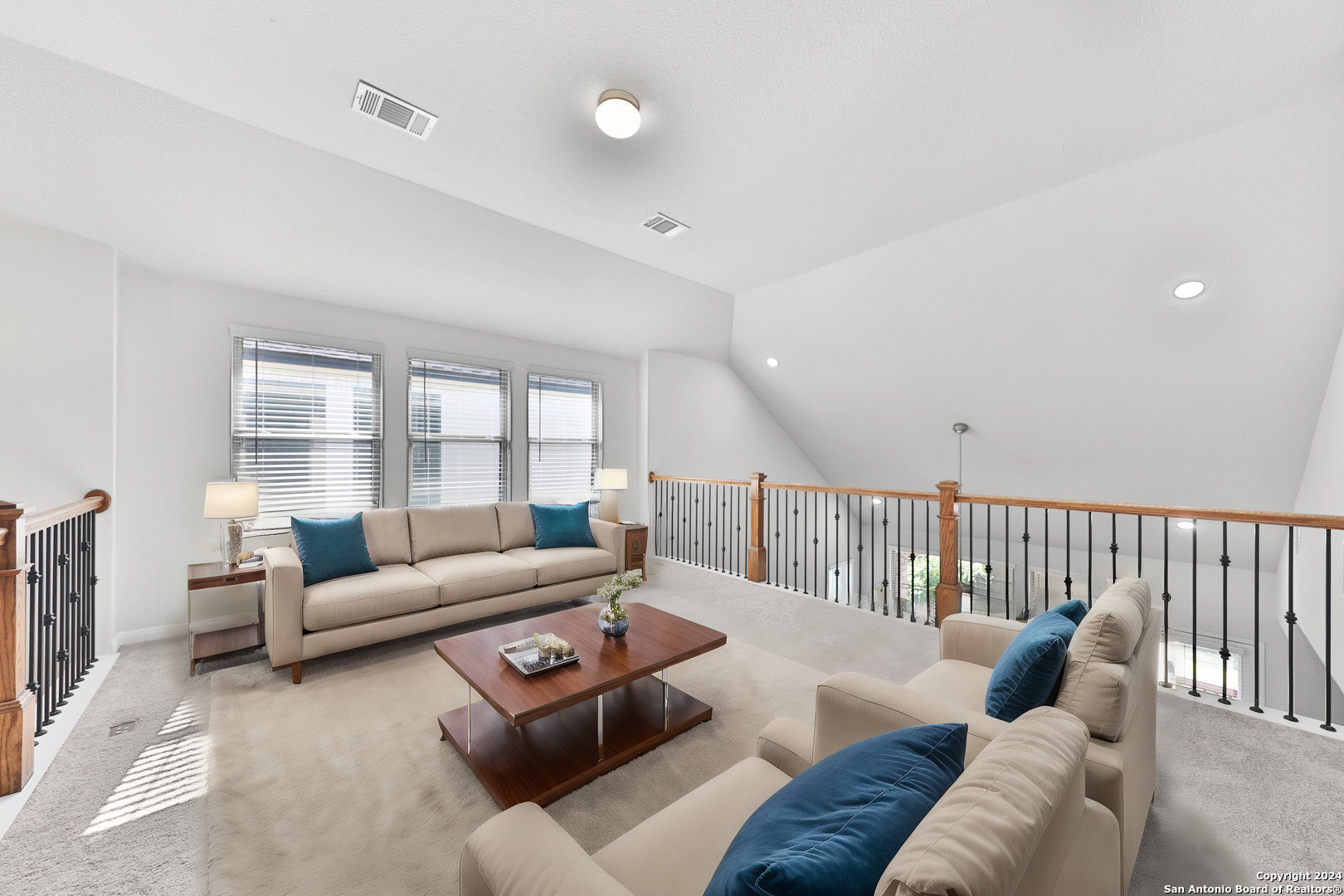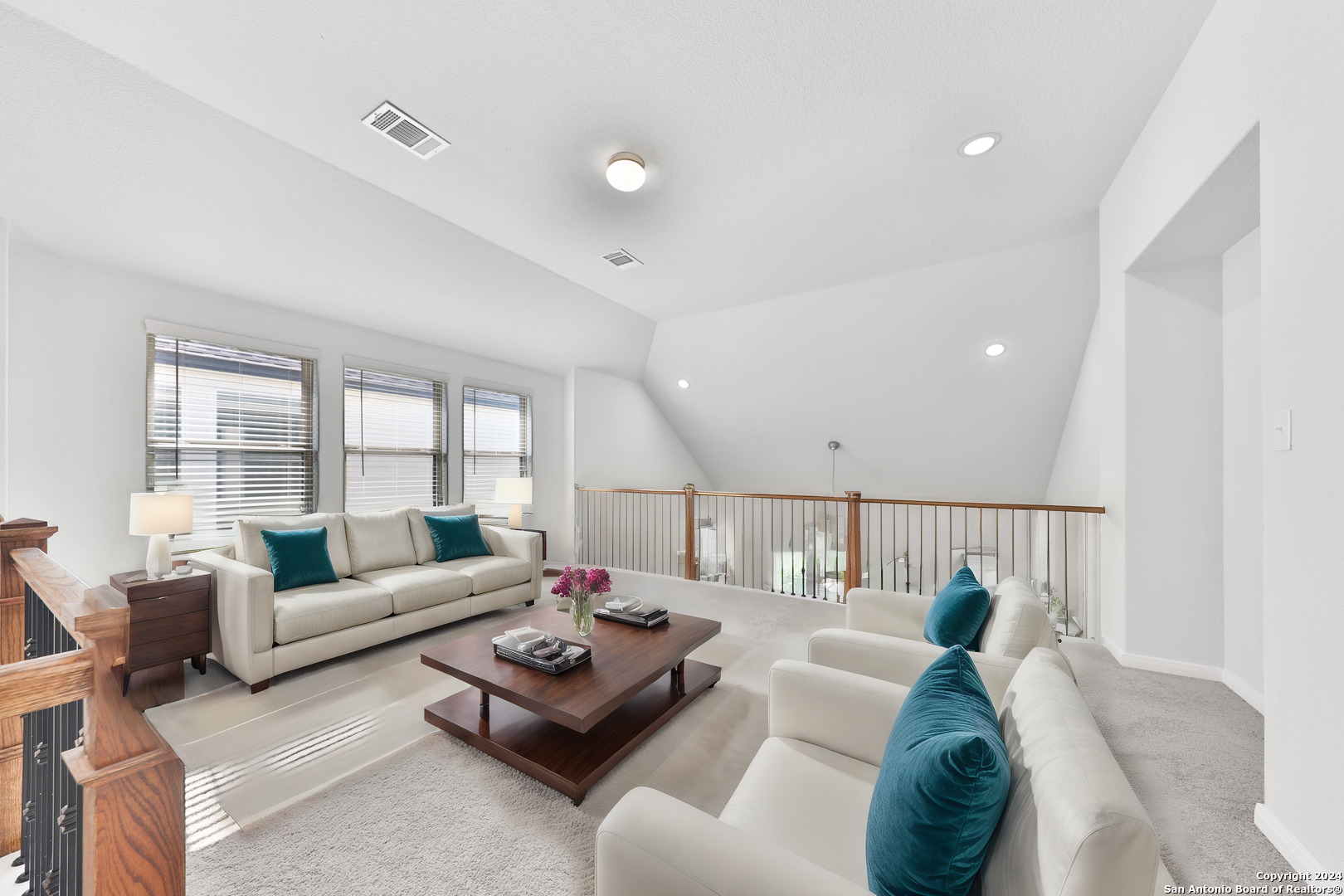 Discover this modern two-story gem, perfectly nestled on a highly sought-after greenbelt lot in Stillwater Ranch! This home blends contemporary luxury with everyday comfort, offering 4 bedrooms and 2.5 baths. Step inside to find a bright, versatile study-ideal for a home office or creative space. The heart of the home is an open-concept living area, where a gourmet kitchen awaits. It features 42-inch cabinetry, stainless steel appliances, a 36" gas cooktop and hood, quartz countertops, an apron-front sink, under-cabinet lighting, and a Samsung Bespoke 4-Door Smart French Door Refrigerator. The kitchen flows effortlessly into the dining and family rooms, accentuated by vaulted ceilings and surround sound-perfect for entertaining or relaxing. The first-floor primary suite is a serene retreat, offering 11-foot ceilings, a bay window with greenbelt views, and a spa-like en-suite with an XL walk-in shower, soaking tub, dual vanities, and a spacious walk-in closet. A fresh powder bath and a laundry room equipped with a Samsung Smart Flex dual washer/dryer, along with extra space for your deep freezer. Upstairs, a large game room overlooks the family room below, giving the space a grand feel with its open iron railing. Three additional bedrooms, each with walk-in closets, and a shared bathroom provide ample space and privacy. Outside, enjoy ultimate privacy with no rear neighbors and a fully equipped sprinkler system. The epoxy-finished garage includes a 220-volt outlet, perfect for EV charging. This move-in-ready home also offers a level driveway, generous parking, and access to top-tier neighborhood amenities-including two pools, a gym, tennis and basketball courts, pickleball, covered playgrounds, a 3-mile walking trail, and a scenic pond. The seller will offer assistance with closing costs with an acceptable offer. Schedule your tour now!