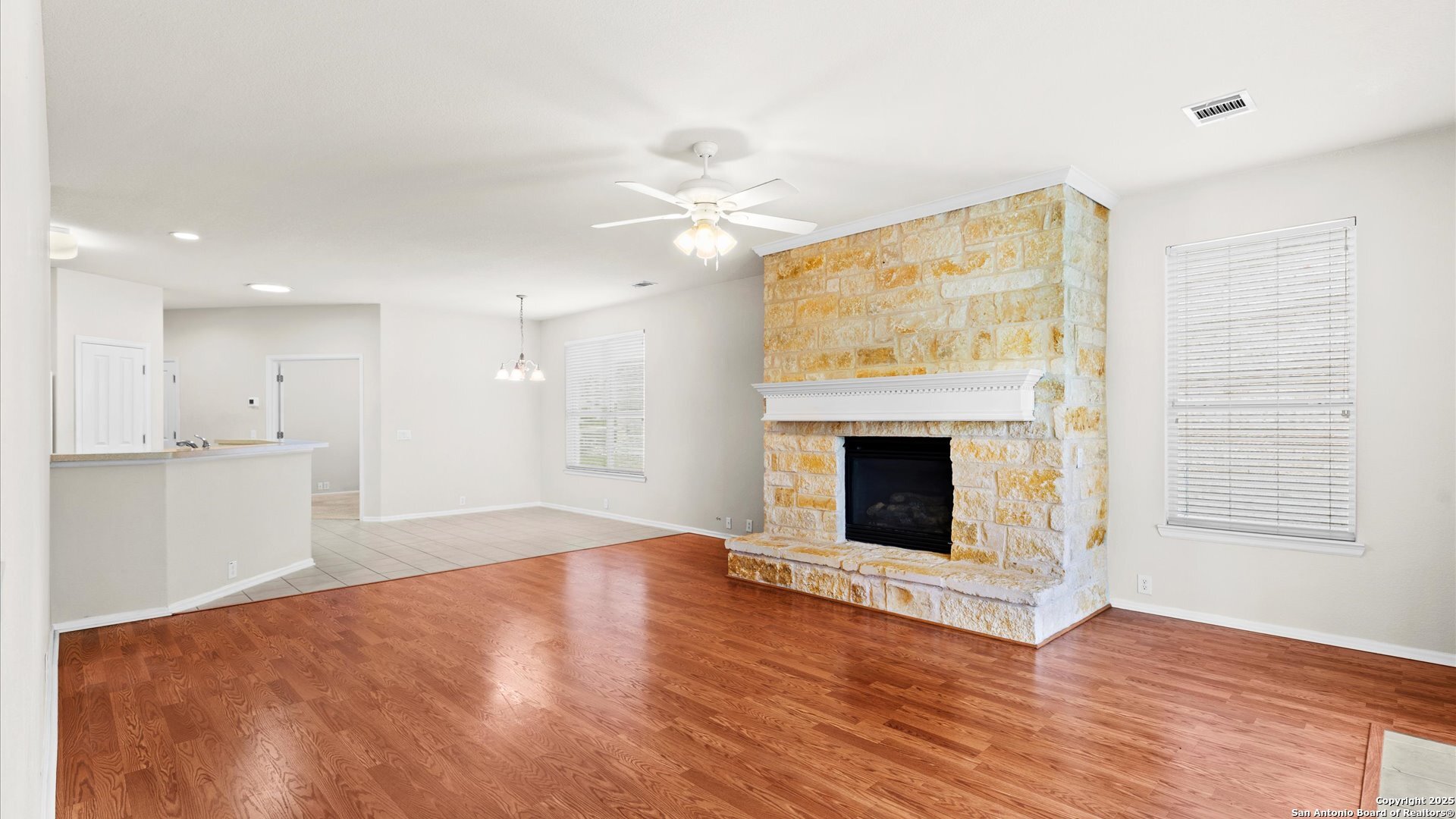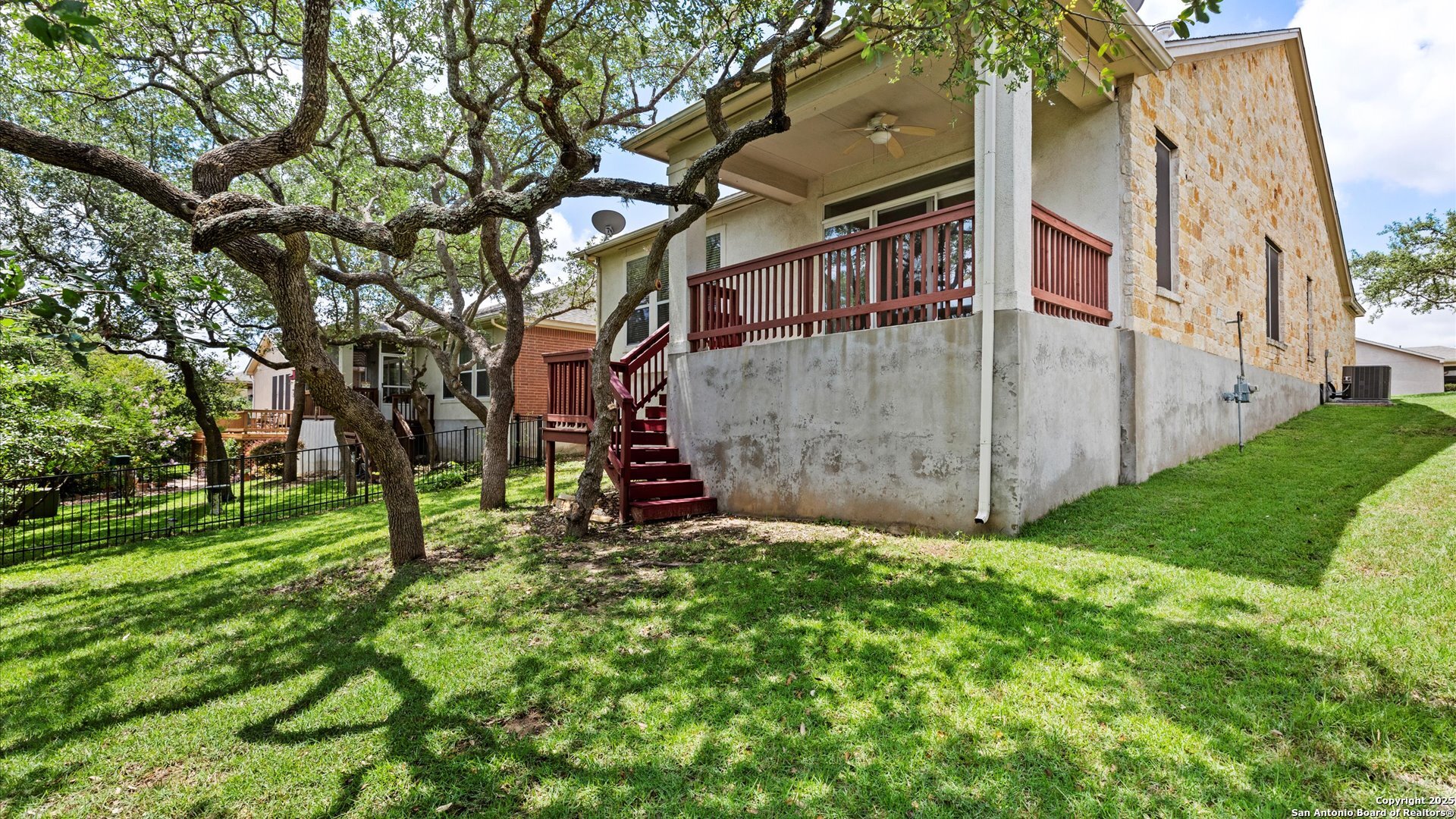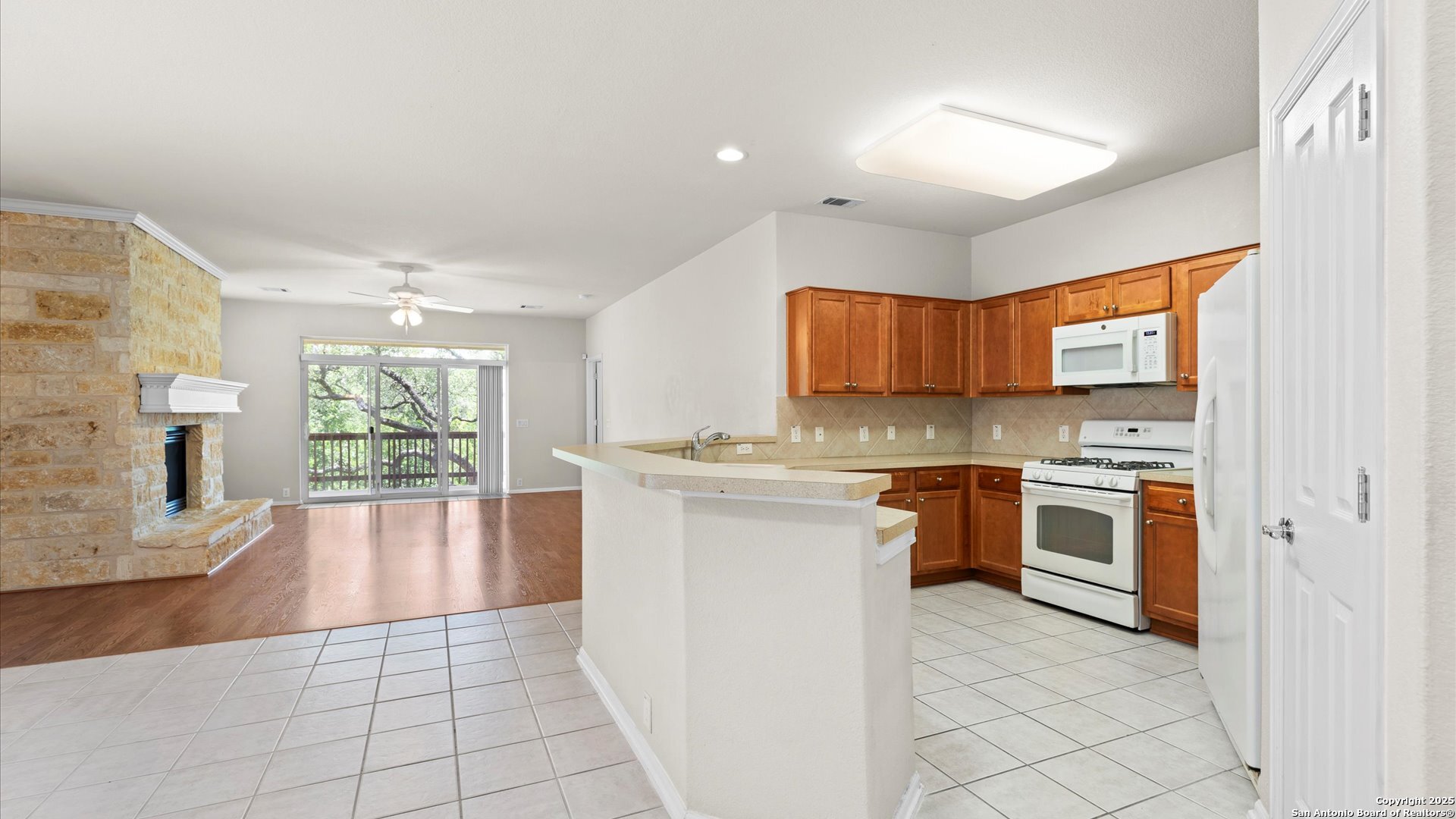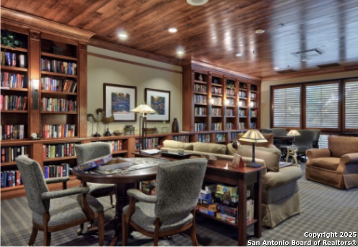 Welcome to this beautifully maintained home in a vibrant Active Adult Community for residents 55 and over. This spacious home features a well-appointed kitchen with a gas stove, walk-in pantry, and breakfast bar, plus a cozy living area with a stunning stone fireplace. The primary suite offers dual walk-in closets and rich wood flooring, while a private study and separate hobby room provide flexible space for work or leisure. Enjoy 9-foot ceilings, recessed lighting, upgraded fixtures, and a peaceful covered porch overlooking mature trees and nearby walking trails-all within a secure, gated community. As a resident, you'll also have access to the Hill Country Retreat resort, featuring over 28,000 square feet of amenities, including indoor and outdoor pools, a fitness center, tennis and pickleball courts, a library, and more...bringing resort-style living right to your doorstep!