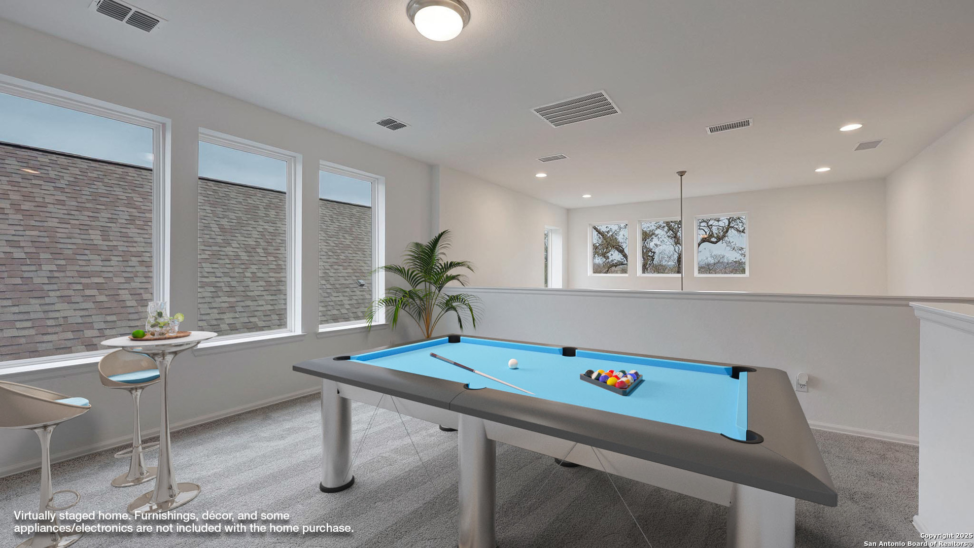 MOVE IN READY! Entry leads to open kitchen, dining area and two-story family room. Kitchen features walk-in pantry, generous counter space and inviting island with built-in seating space. Home office with French doors just across from kitchen. First-floor primary suite includes 10-foot ceiling. Double doors lead to primary bath with dual vanities, separate glass-enclosed-shower and two walk-in closets. A game room and two secondary bedrooms are upstairs. Covered backyard patio. Mud room off two-car garage.