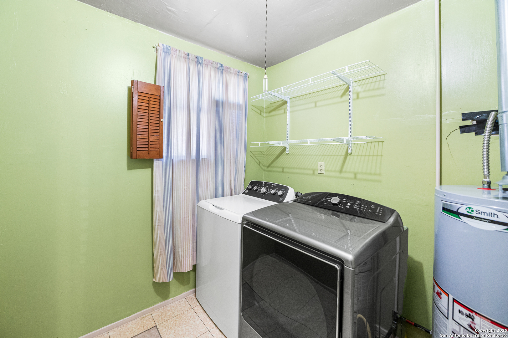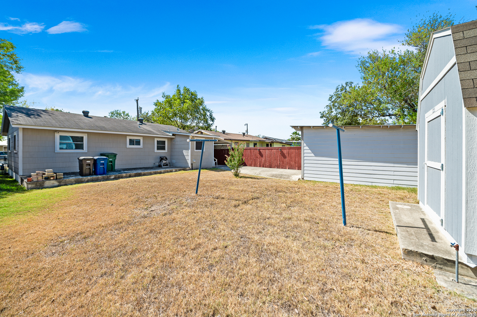 Welcome to this charming Single-Story 3-bedroom, 1-bath home. Features over 1,000 sq ft, open living area and a bright gas eat-in kitchen with all appliances included. Enjoy energy-efficient double-pane windows with wood blinds throughout, the laundry room comes equipped with a washer and dryer for your convenience. Step outside to a generous backyard that includes a functional workshop shed plus an additional Tuff Shed for extra storage. A perfect blend of comfort, practicality, and pride of ownership! Come see it today, and make it your future home!