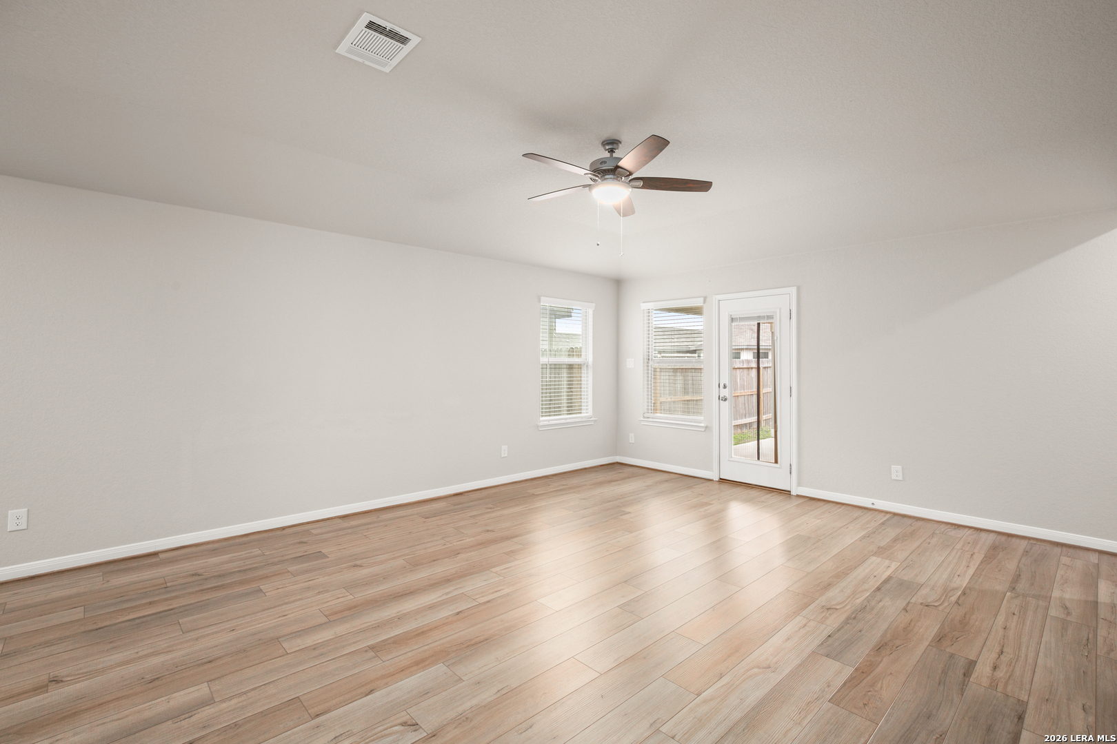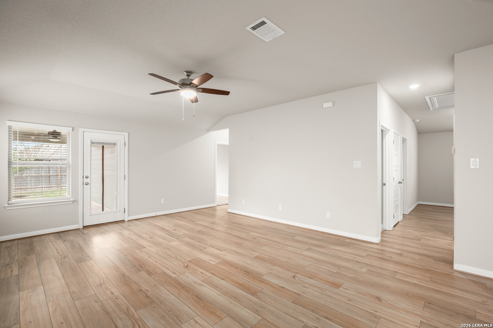 Experience the best of the Texas Hill Country in this like-new, energy-efficient home located in the highly desirable Meyers Landing community. Recently built and meticulously maintained, the residence offers a pristine, never-lived-in feel with modern finishes and a bright, sun-drenched interior designed for today's lifestyle. The flexible floor plan lives like a four-bedroom home - or three bedrooms plus a dedicated private office - making it ideal for working from home, guests, or growing households. Inside, you'll find two spacious living areas, including an open-concept main living space and an additional flex room perfect for a playroom, media lounge, or hobby retreat. Functional everyday features like a dedicated mudroom, full walk-in laundry room, ceiling fans, and window coverings add comfort and organization. At the heart of the home, the chef-inspired kitchen showcases crisp white cabinetry, elegant quartz countertops, and a large center island with breakfast bar seating - perfect for casual dining or entertaining. High ceilings and stylish wood-look flooring flow seamlessly through the main living areas, enhancing the home's airy, modern feel. Energy-efficient upgrades such as spray-foam insulation and smart home automation support effortless, low-maintenance living. Located in the 78130 zip code of New Braunfels, this home offers walkable access to Creekside Crossing shopping and dining, including Starbucks, TJ Maxx, Hobby Lobby, Target, H-E-B Plus!, BJ's Restaurant & Brewhouse, and the EVO Entertainment complex. Outdoor enthusiasts will also appreciate the neighborhood park, scenic walking trails, and close proximity to the iconic Comal and Guadalupe Rivers.