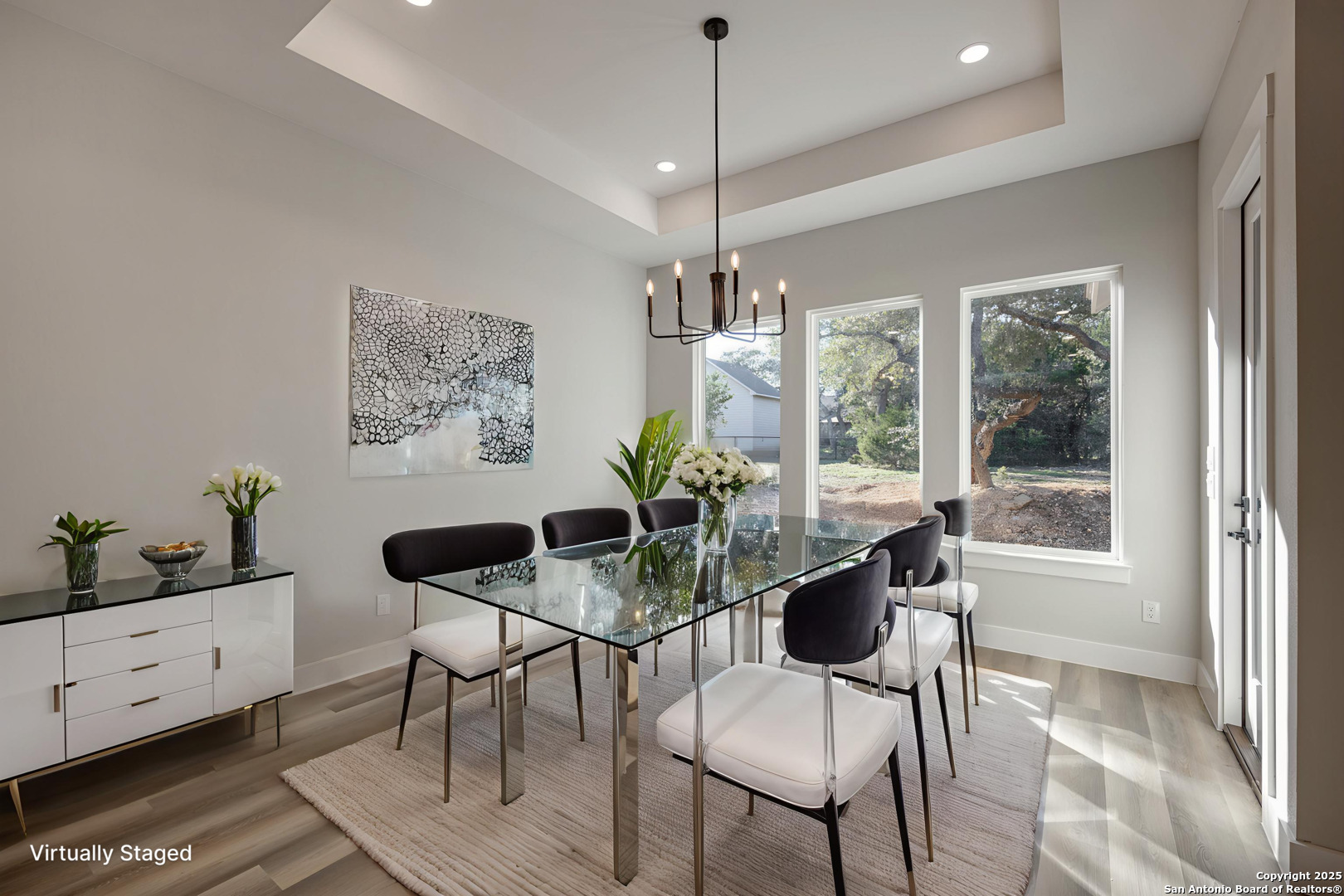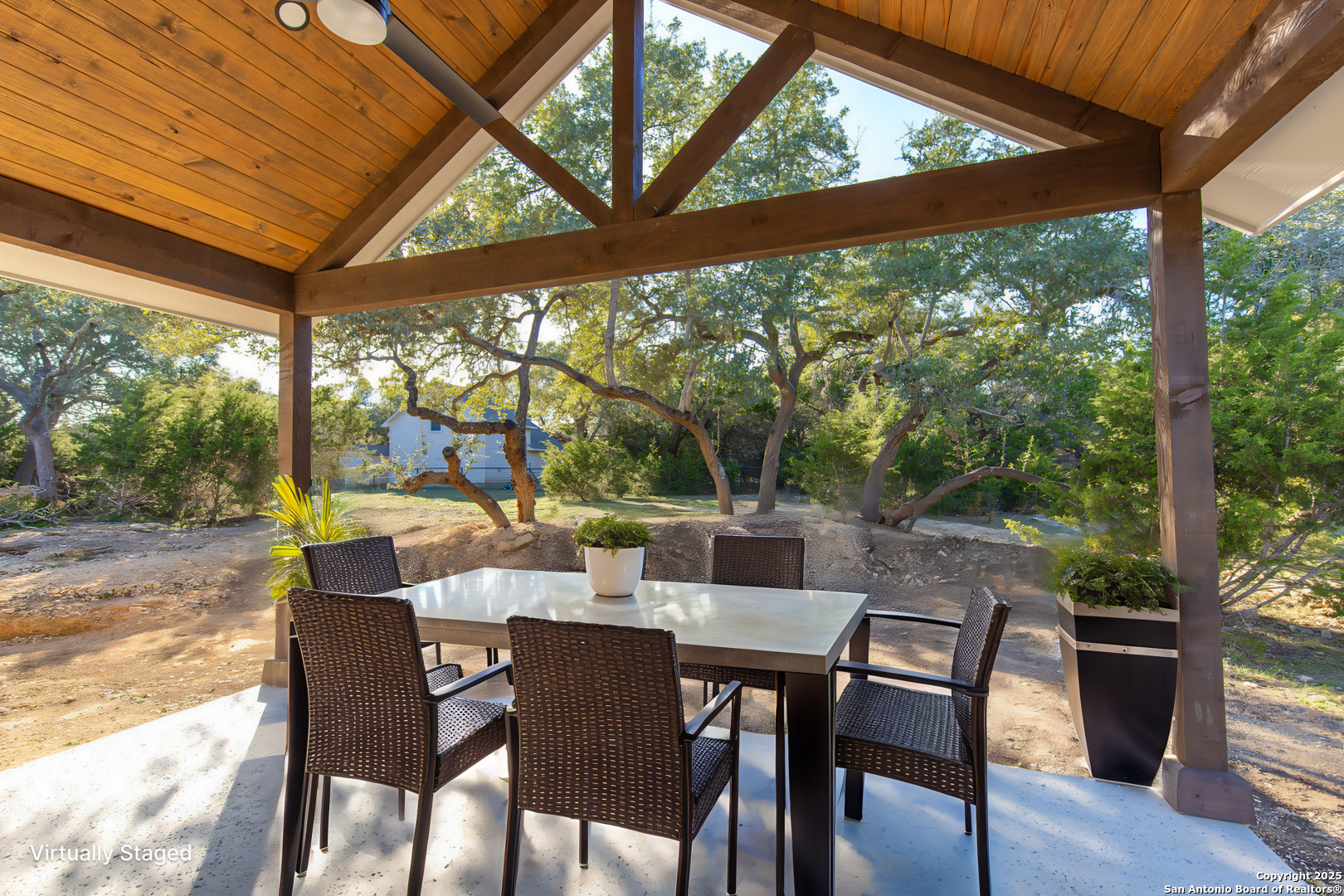 Welcome to this stunning NEW CONSTRUCTION, 1 story luxury home! Nestled on 1/2 an acre in the heart of Hill Country, this elegant, 4 bedroom, 3 bathroom residence spans 2,638 square feet of thoughtfully designed living space, perfectly combining modern sophistication with Hill Country charm. As you step into the beautiful elongated hallway, you'll be greeted by soaring ceilings and custom design elements. To the right, you'll find two spacious bedrooms sharing a Jack and Jill bathroom, each offering ample storage and privacy. At the front of the home, a 4th bedroom with its own full bathroom provides flexibility-ideal as a guest suite or home office. Continuing down the hall, you'll enter the gorgeous living room and kitchen area, where natural light pours in through large oversized windows. The open-concept floor plan is perfect for entertaining or just relaxing. At the heart of the home is the chef's dream kitchen. Boasting granite countertops, metal hood vent, built-in microwave, custom soft-close cabinetry, and an enormous walk-in pantry. The expansive kitchen counter doubles as a gathering spot, offering plenty of seating for guests to enjoy casual conversations while meals are prepared. Adjacent to the kitchen is a dining area that exudes elegance, plenty of natural light with large windows, and keeps you connected with the rest of the open floor plan. The living area, highlighted by an electric fireplace and soaring ceilings is an amazing space to relax. Retreat to the luxurious owner's suite, a private oasis featuring a generously sized walk-in closet and a spa-like bathroom. Relax in the freestanding soaking tub, with a sophisticated backsplash and elegant/modern lighting fixture. The walk-in shower, accessible from either side of the free standing tub, offers dual shower-heads, a built-in bench, and convenient storage niches-all surrounded by beautiful tile and natural light, including a double vanity and oversized mirror. Additional highlights include: A mudroom conveniently located off the two-car garage for seamless organization, A well-appointed laundry room with abundant custom cabinets for storage and ample countertop space. Step outside to your covered back porch, adorned with beautiful beams and high ceiling with a fan for comfortable outdoor living. Enjoy peaceful Hill Country vibes where deer and natural wildlife roam freely. Rivermont offers incredible amenities including a 6-acre river park with access to the Guadalupe River, picnic tables, barbecue grills, bathrooms, a pool, pavilion, playground, tennis/basketball courts, and a soccer field.Don't miss the opportunity to embrace Hill Country living while enjoying proximity to the city! This home seamlessly blends modern luxury with timeless beauty. Don't miss out and schedule your showing today!!