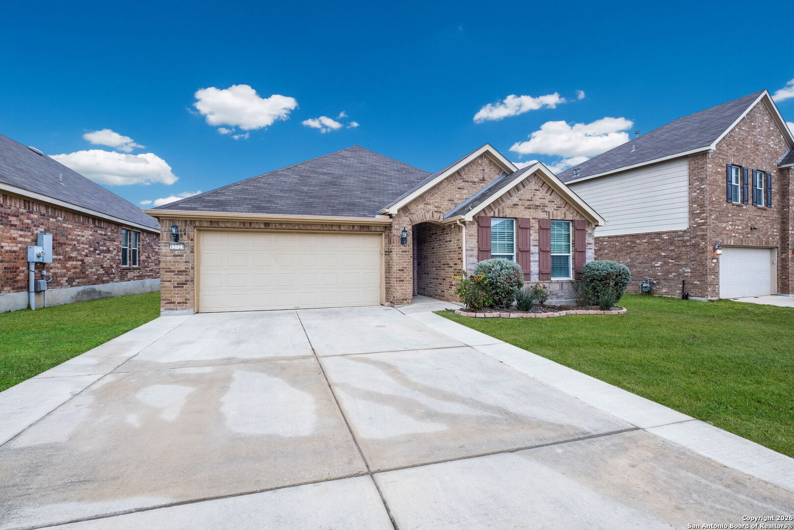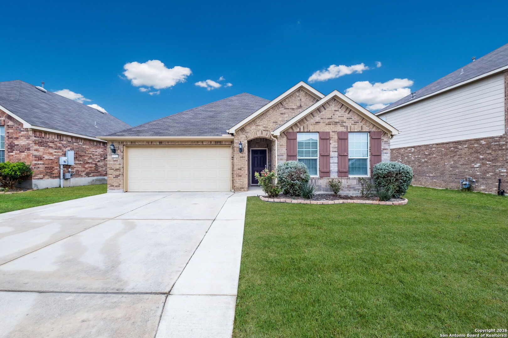 Welcome to a well-cared-for single-story home located in the desirable Alamo Ranch community. Offering 4 bedrooms, 2 full baths, and 1,816 square feet of thoughtfully designed living space, this home delivers comfort, functionality, and everyday ease. The open-concept layout features high ceilings and abundant natural light, along with a dedicated study or library and an island kitchen with a breakfast bar that flows into the main living area. The primary suite offers a relaxing retreat with a garden tub, separate shower, dual vanities, and a walk-in closet, while secondary bedrooms provide flexible use for guests or workspace. Tile and carpet flooring, central air, gas heating, an attached two-car garage, a plumbed water softener, and a durable brick and cement fiber exterior add to the home's appeal. Community amenities include a pool, clubhouse, playground, and sports courts, all within Northside ISD. The home has been recently inspected by the seller, with the inspection report available for review, select repairs completed, and a comprehensive one-year HOME WARRANTY included for added confidence and peace of mind. Ask for more information or schedule your private showing today.