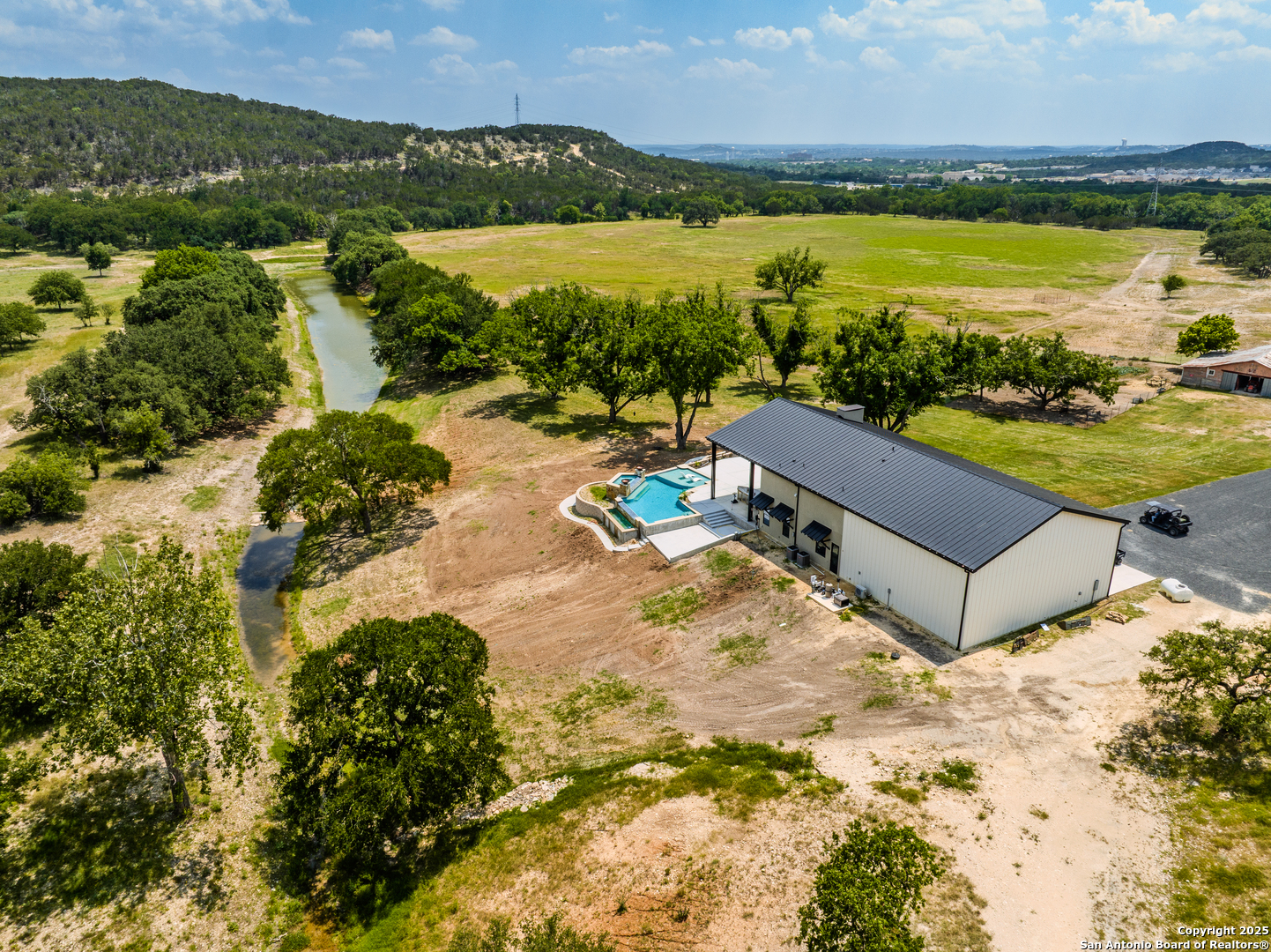 Nestled just beyond the city limits of Kerrville, this sprawling 138-acre ranch is a unique blend of historic charm and modern luxury. The property boasts a newly constructed, state-of-the-art luxury steel-frame home that exudes contemporary elegance and functionality. There is a large outdoor entertainment area, with a double negative edge pool, overlooking a lake. Perfectly complementing this modern residence are two additional homes steeped in history. One is a large, character-filled home expanded from an original historic rock cabin, brimming with potential for a remarkable restoration. The second is an older home with endless opportunities to be transformed back to its former glory. A truly captivating feature of this ranch is the spring-fed Third Creek, which winds gracefully through the property. This year-round water source not only adds to the serene beauty of the land but also serves as a natural division, creating two expansive grass pastures ideal for grazing livestock and horses. With its fertile soil and abundant water supply, the ranch is well-suited for agricultural pursuits, equestrian enthusiasts, or would make a great residential development or an outstanding winery due to its close proximity to the Fredericksburg wine trail! Whether youre seeking a luxurious retreat, a working ranch, or a project to restore historic homes, this property offers the perfect canvas. Its location just minutes from Kerrville ensures easy access to modern conveniences, while the vast open spaces provide a peaceful escape into Hill Country living.