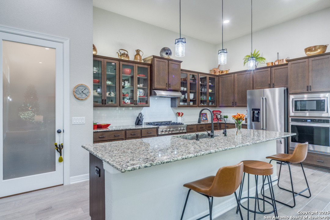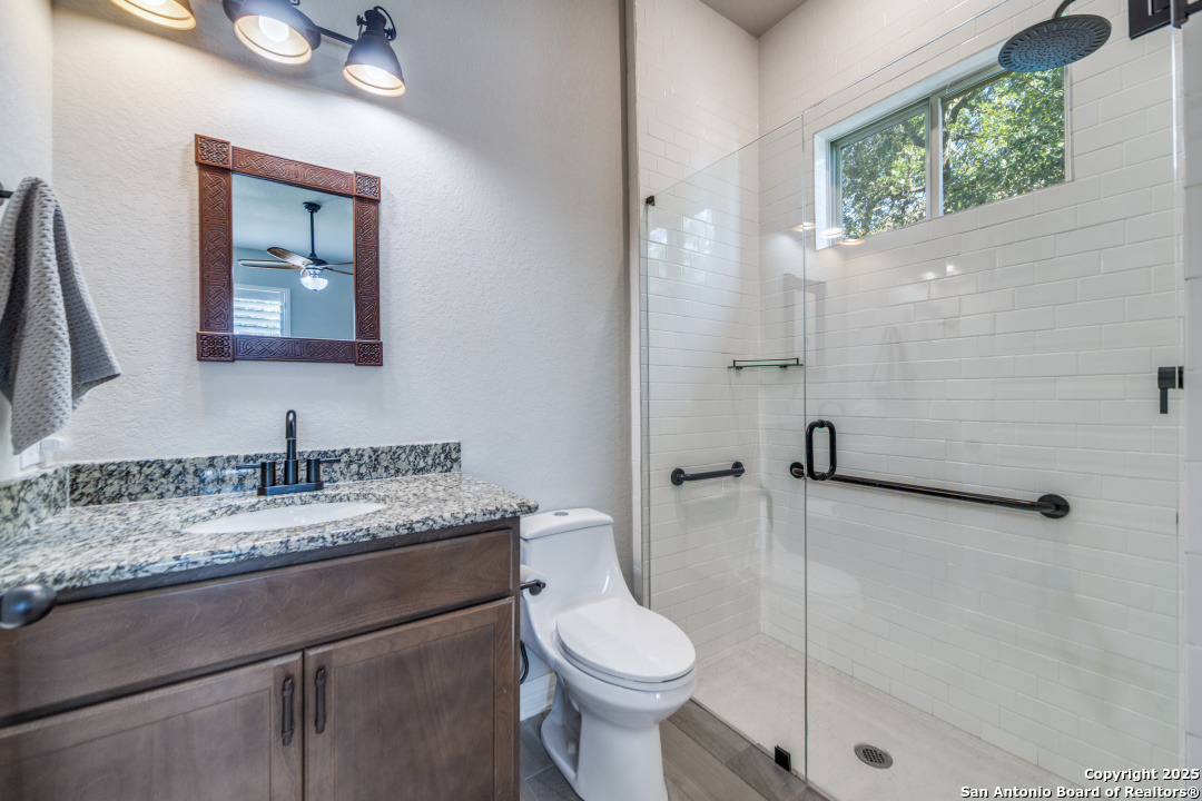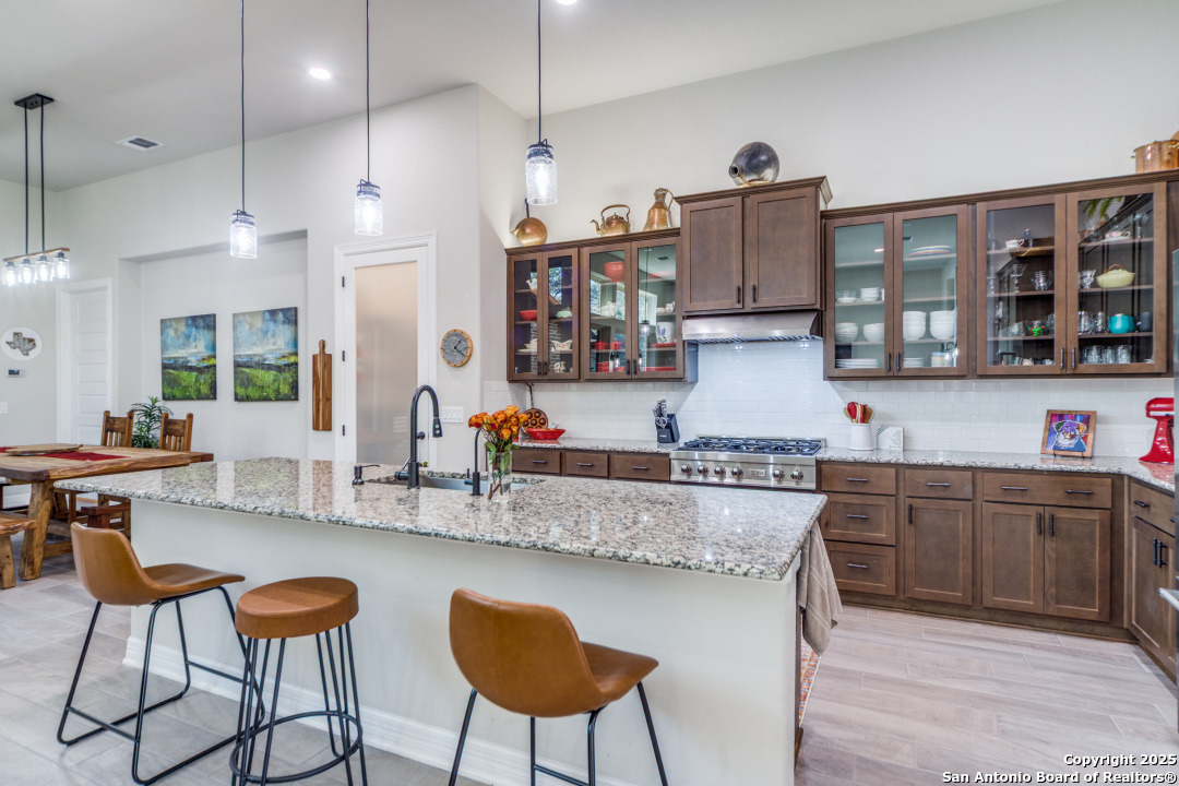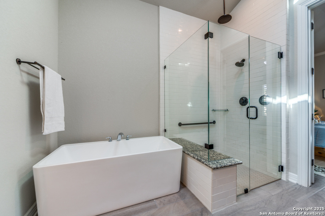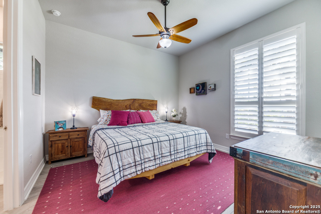 Step into a world of refined living in this exceptional garden home, nestled within a sought-after gated community The Ranches at Creekside in Boerne, Texas. This isn't just a house; it's a meticulously upgraded retreat designed for those who appreciate distinctive style. As you enter, notice the inviting entry with wood/tile throughout and upgraded lighting. setting a tone of quality and coziness. The living room, bathed in natural light streaming through with tranquil views of the courtyard and shaded backyard. This seamlessly connects to your private outdoor living. Entertain with ease on the covered patio with your outdoor gas connection for your grill. Relaxed back patio creating the perfect ambiance for any gathering. Thoughtful details abound, including, plantation shutters, tinted windows, magnetic door stops, cabinets with pull out drawers, and master bedroom closet adjoins to the laundry room for ultimate convenience. Beyond the home, the gated community offers an array of amenities, including jogging and walking trails, playground and a neighborhood pool. Hard to believe but a MUST SEE, indoor workshop and an abundance of storage space too! Enjoy the peace of mind that comes with no MUD tax. It's a place where luxury meets lifestyle, offering an unparalleled living experience in Boerne, Texas.