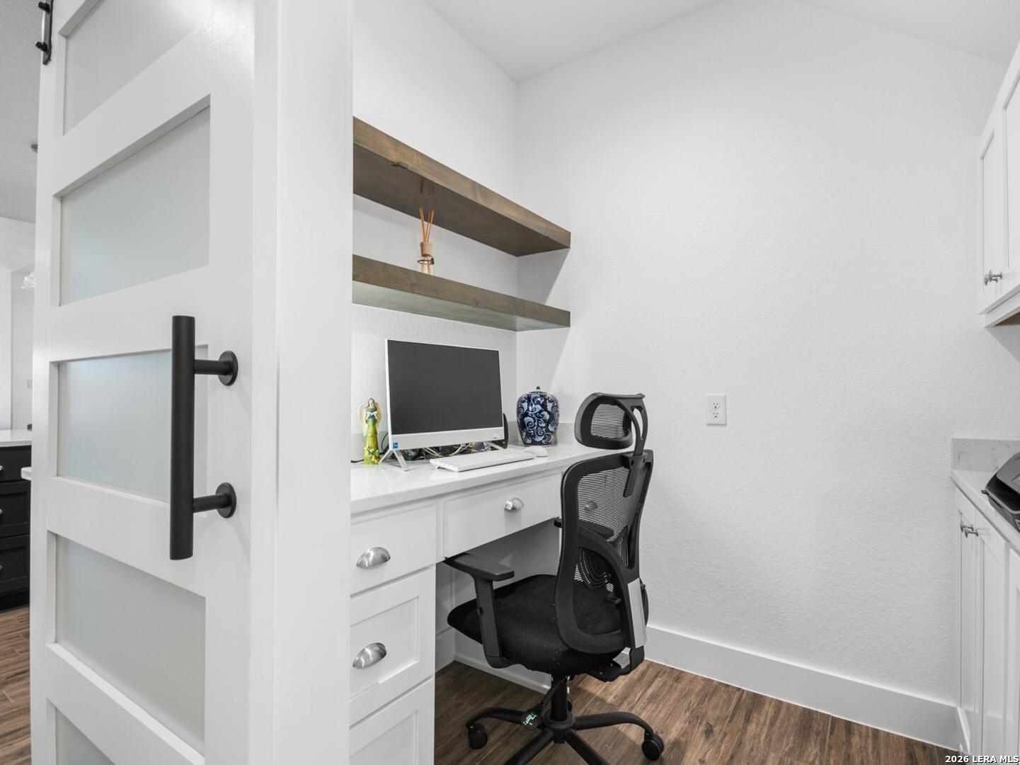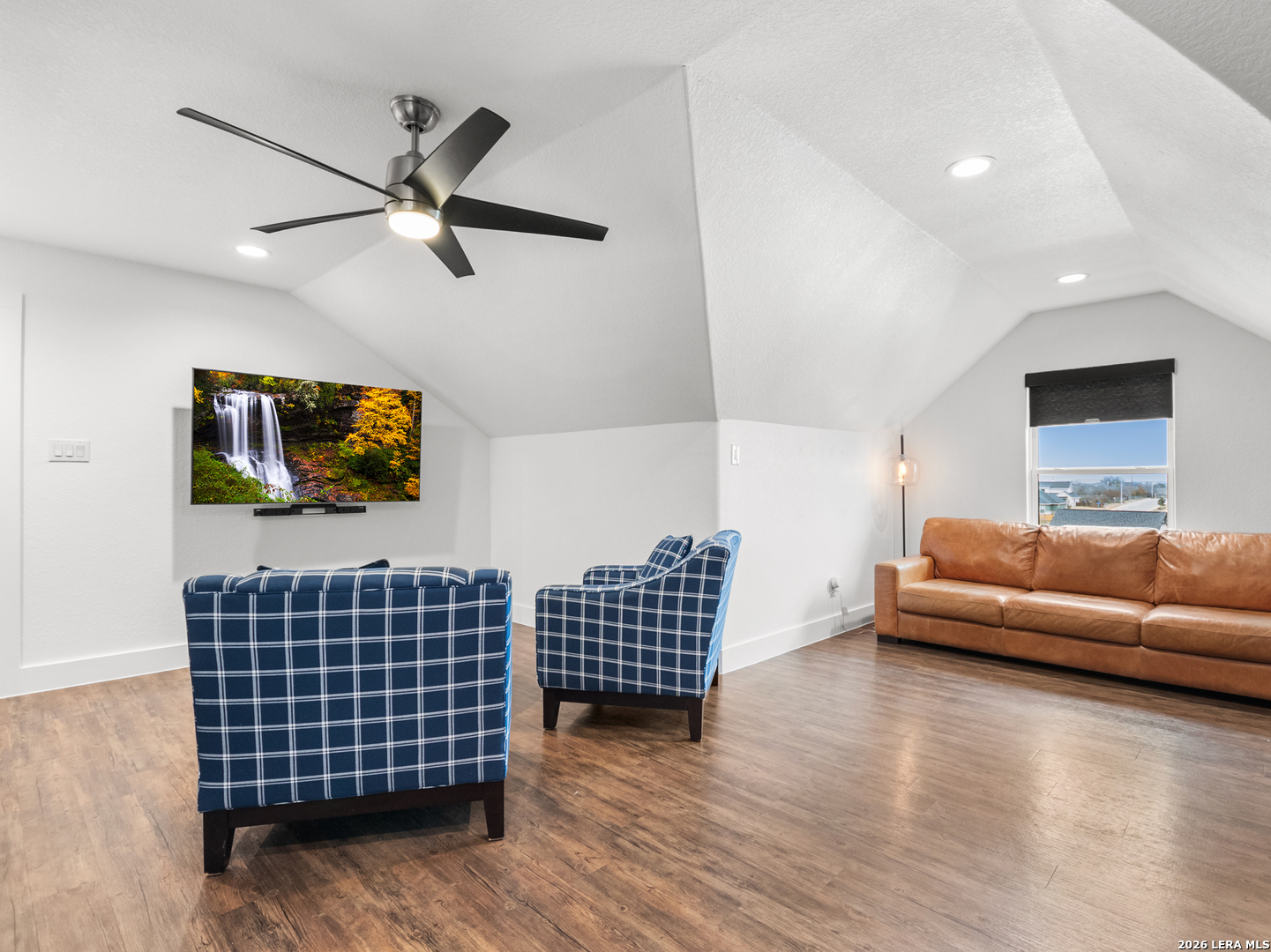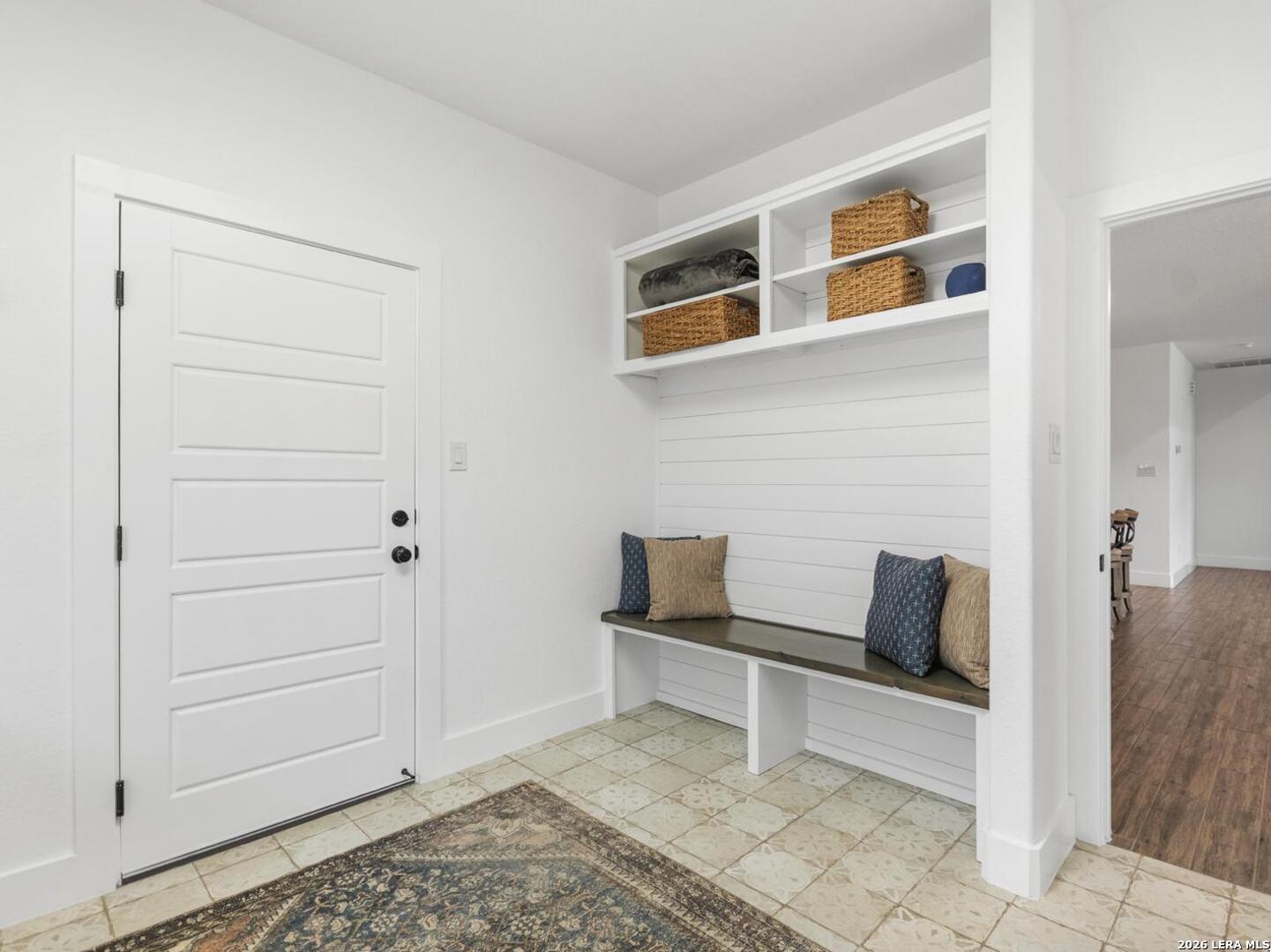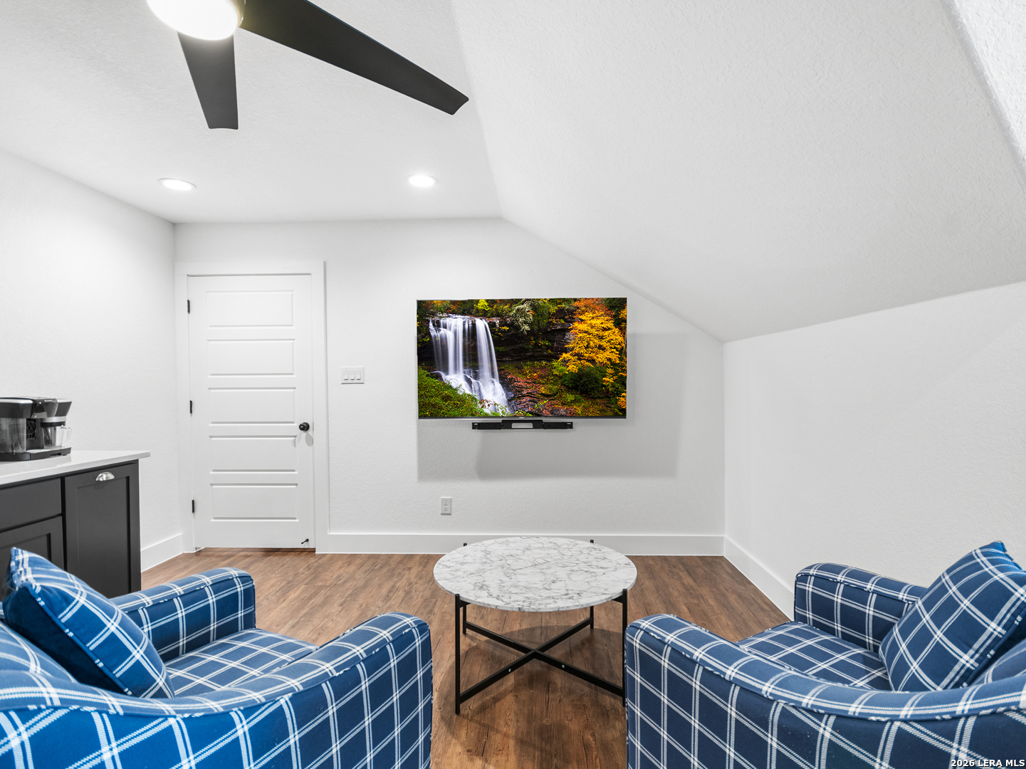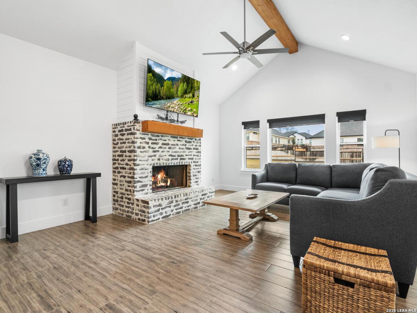 Located in the desirable Woodbridge Farms community of La Vernia, this custom residence by D&D Custom Homes offers a thoughtful blend of quality construction, functional design, and modern finishes. The heart of the home features an exquisite custom kitchen open to the living and dining areas, highlighted by soaring ceilings, a wood-burning fireplace with German-smeared brick hearth, custom-milled cabinetry that extends to the ceiling for added storage and visual impact, quartz countertops, and sleek, low-maintenance tile flooring throughout the main living spaces. A dedicated main-level study provides an ideal home office or quiet workspace. Designed for effortless everyday living, all secondary bedrooms and the primary suite are located on the main level. Above the kitchen, a spacious flex room offers exceptional versatility and comfort, complete with a wet bar and its own mini-split air conditioning system, which is perfect for a game room, media room, or additional living area. The home is CAT-6 wired throughout and includes a Reolink camera system for enhanced connectivity and security, along with a whole-house water filtration system and lawn sprinkler system for added convenience and efficiency. Outdoor living is equally inviting with a covered back patio already equipped with a propane gas line for a future custom outdoor kitchen. Additional highlights include an oversized two-car garage and a partially finished walk-in attic providing valuable storage or future expansion potential. Enjoy the balance of country surroundings and a well-appointed interior in a residence that pairs thoughtful upgrades with enduring design in one of La Vernia's most desirable settings.